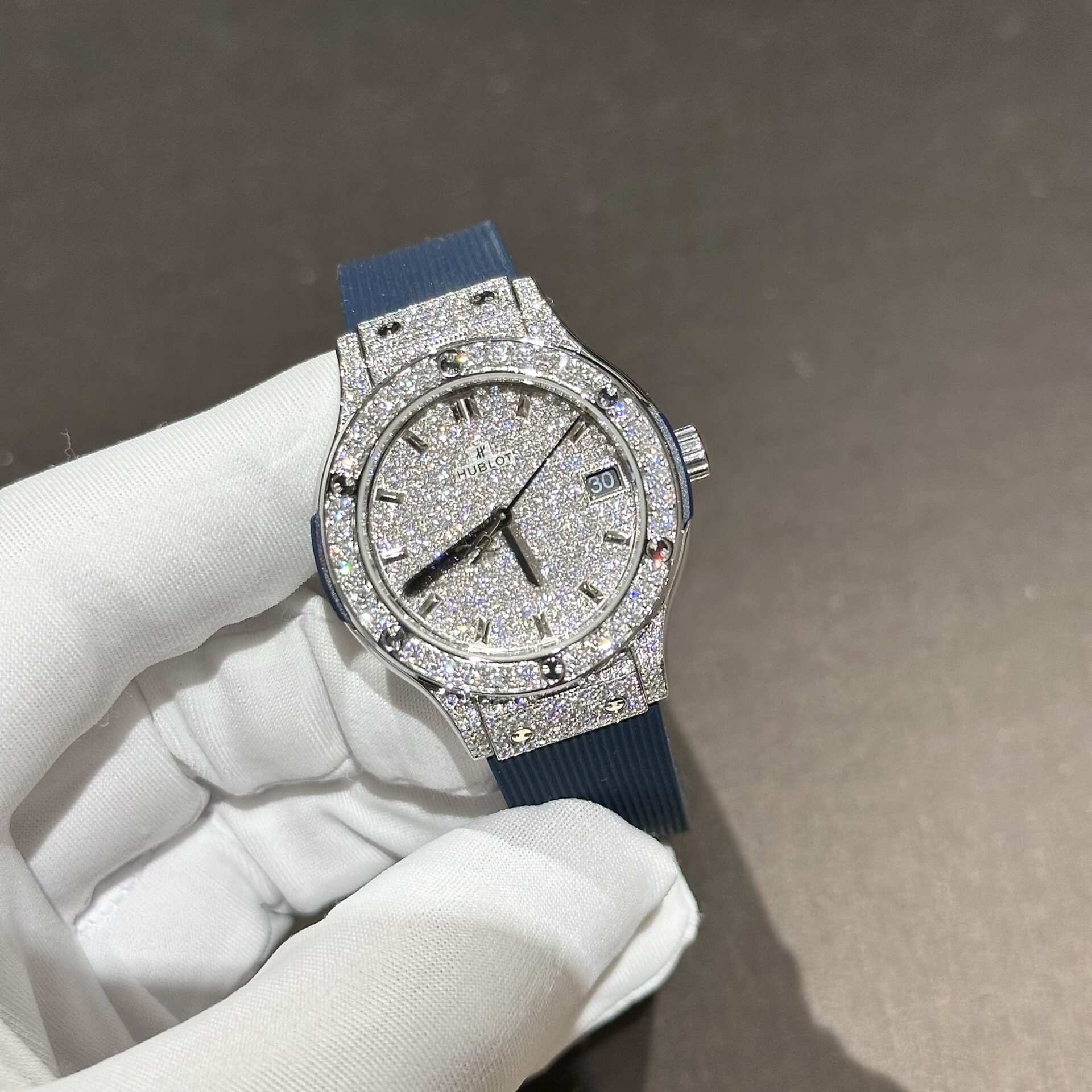Đồng Hồ Hublot Nữ Màu Xanh Dương Độ Kim Cương Moissanite 33mm