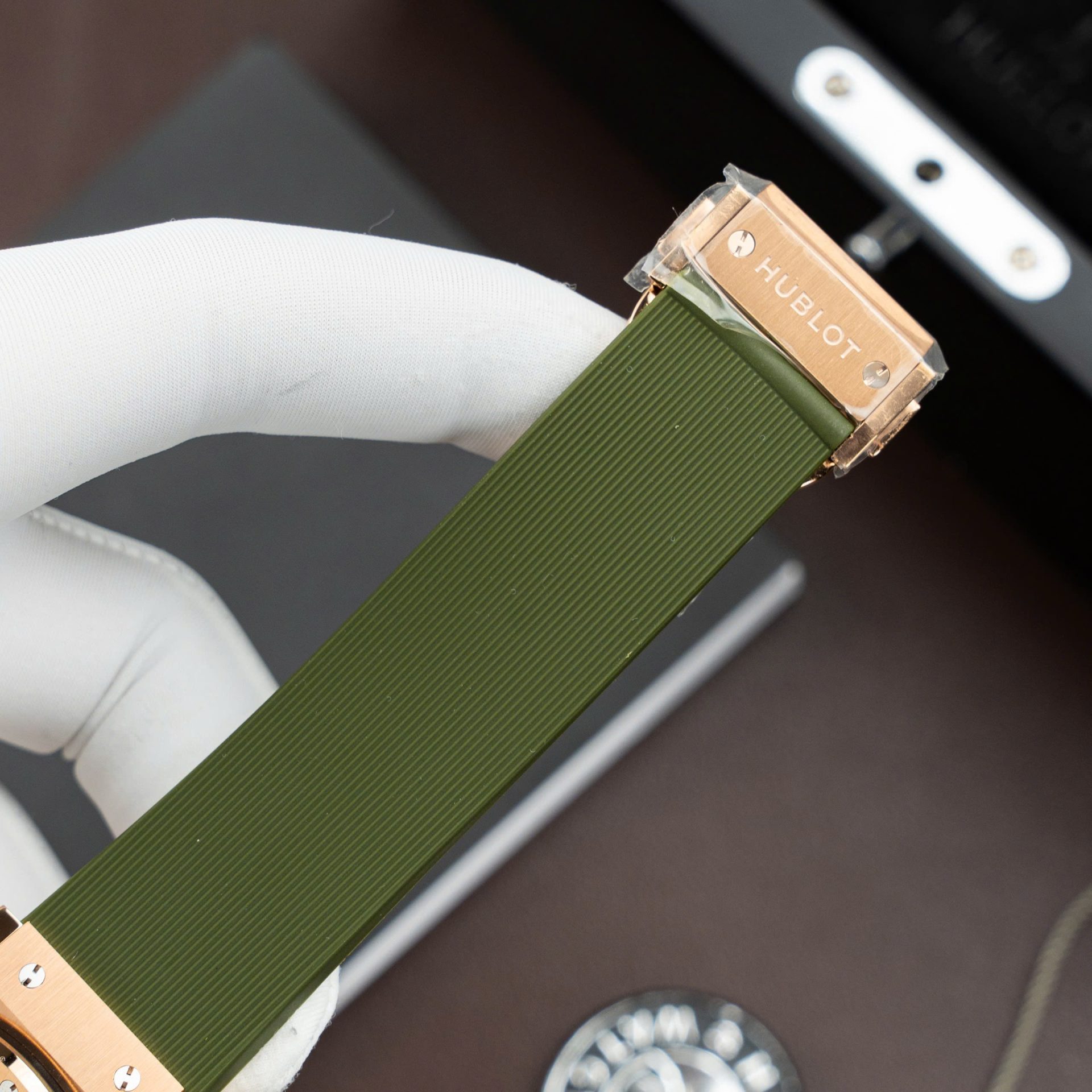 Đồng Hồ Hublot Rep 11 Classic Fusion King Gold Màu Xanh Lá Cây Máy SW300 Thuỵ Sỹ Dây Cao Su 42mm