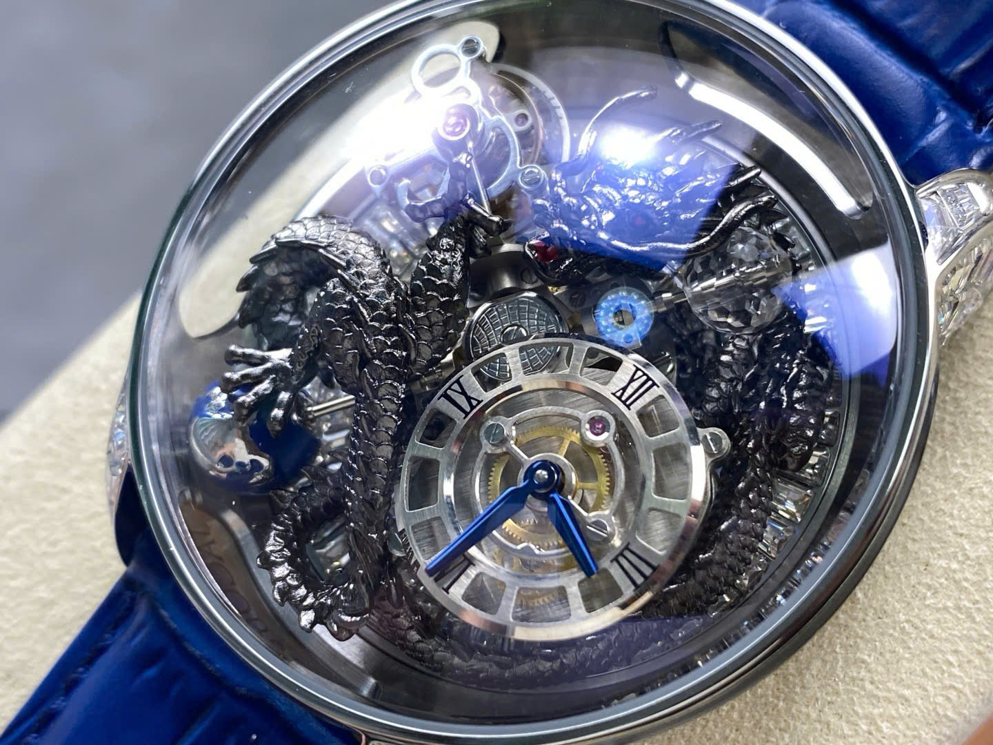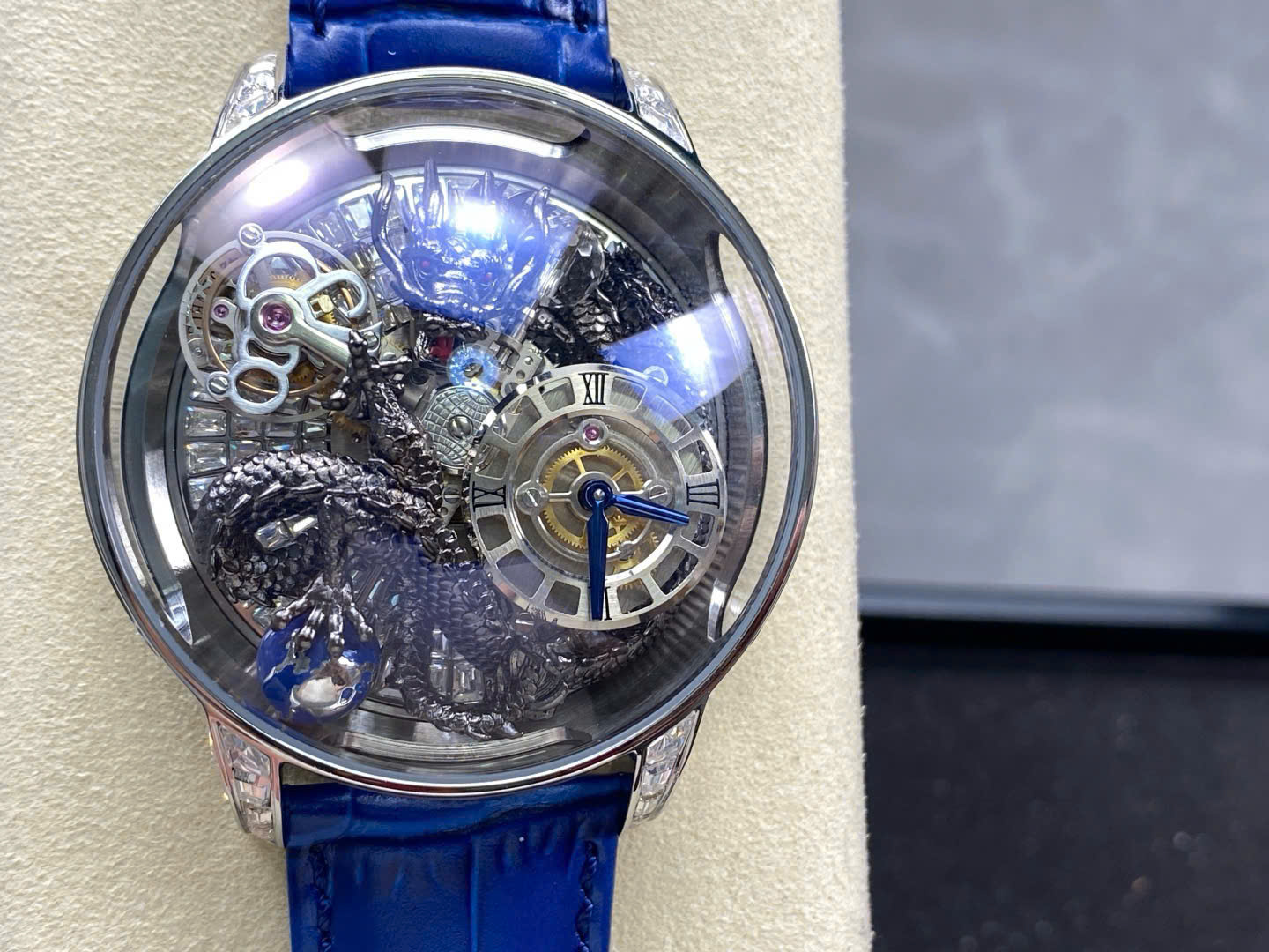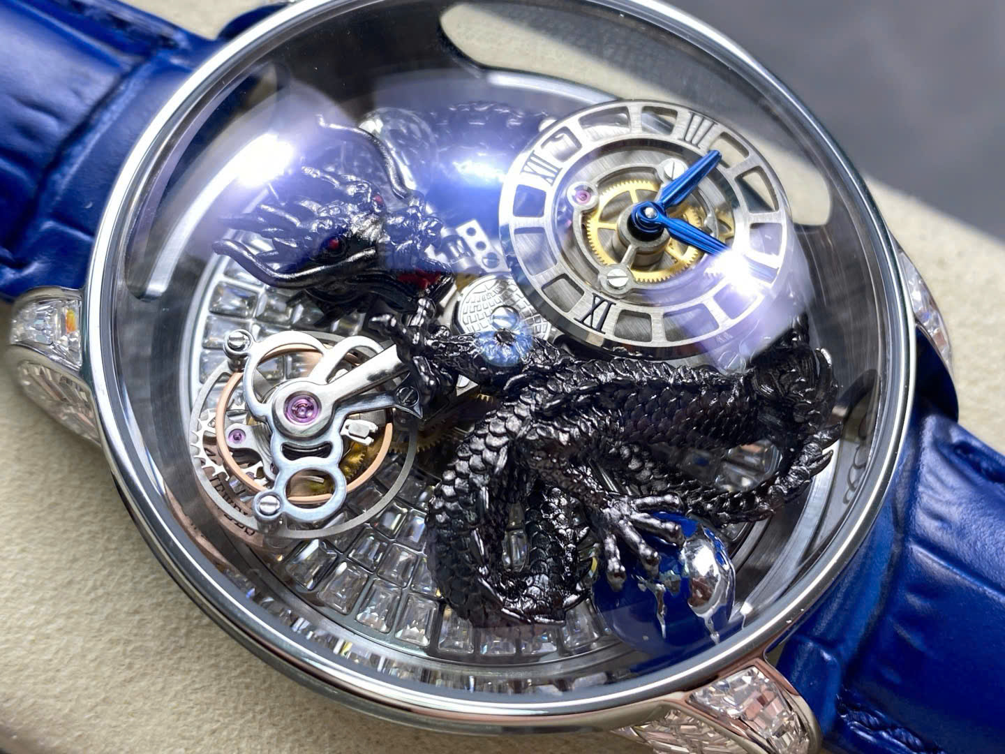 Đồng Hồ Jacob & Co Rồng Đen Replica Cao Cấp Nhất Dây Da Màu Xanh 45mm
