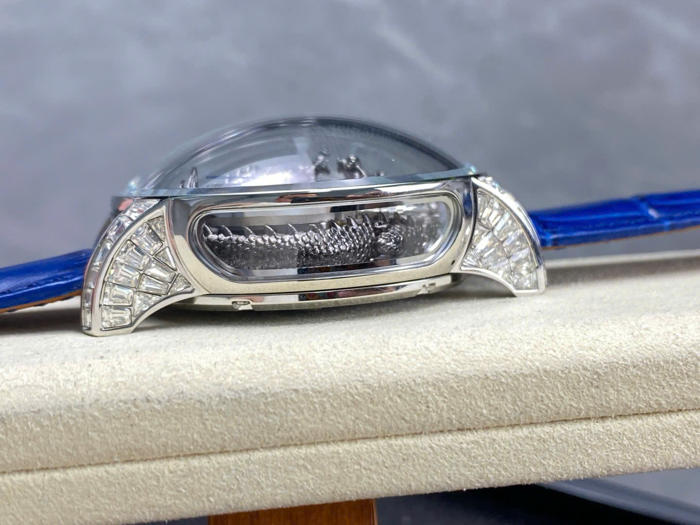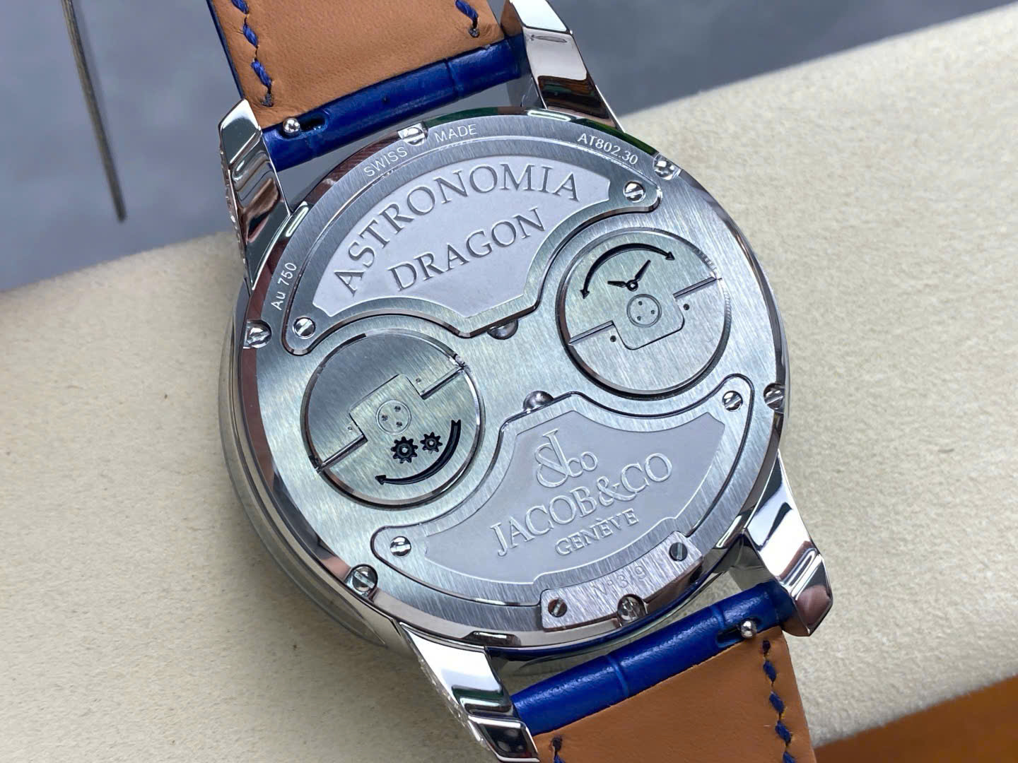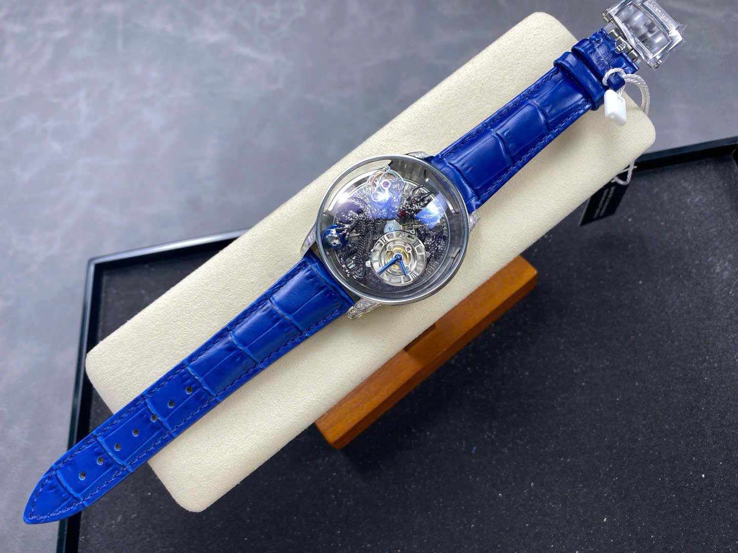 Đồng Hồ Jacob & Co Rồng Đen Replica Cao Cấp Nhất Dây Da Màu Xanh 45mm