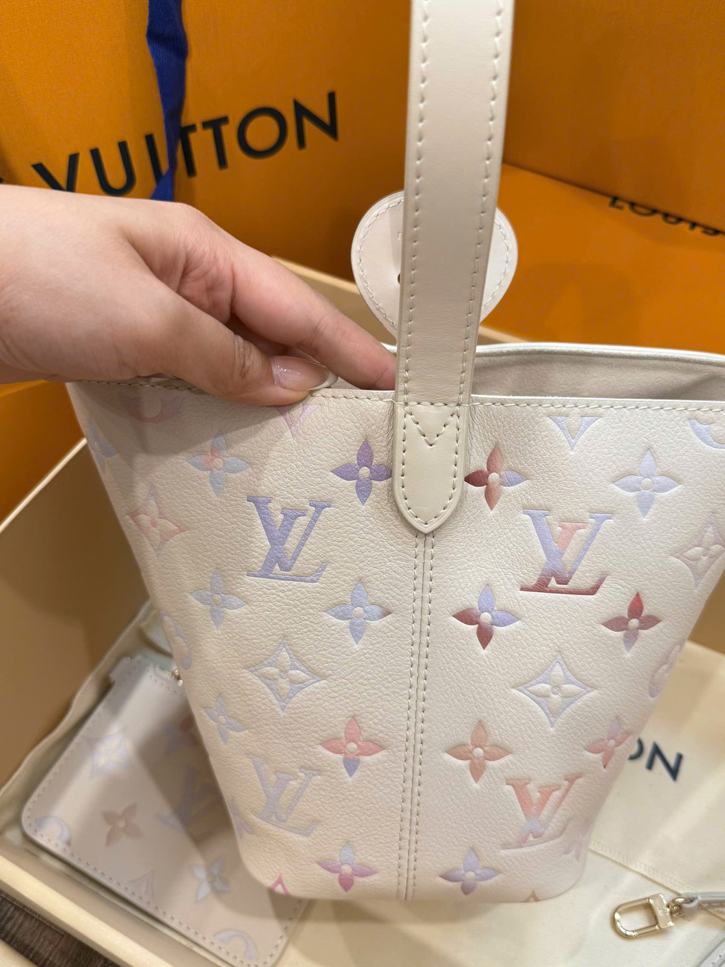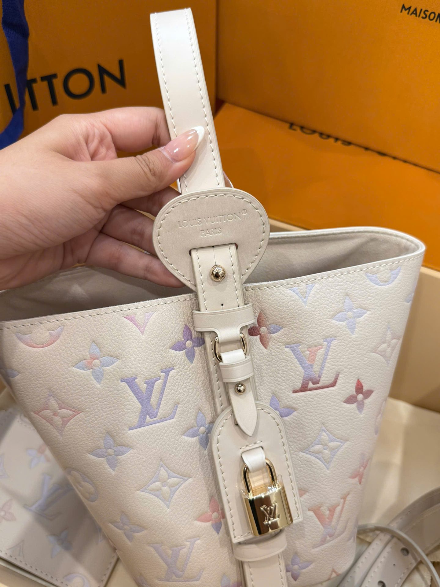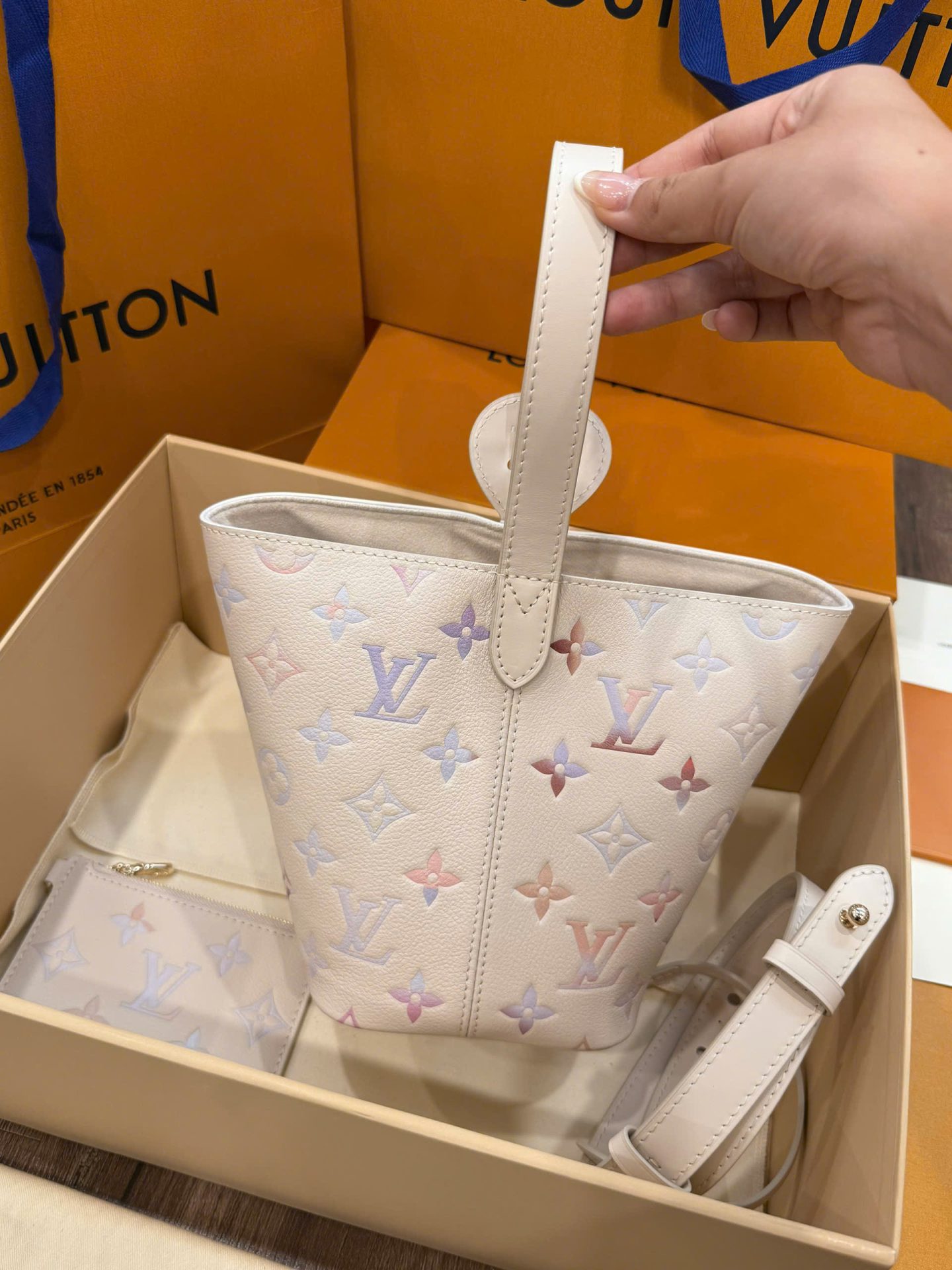 Túi Xách Louis Vuitton All In BB Siêu Cấp Da Bò Màu Kem Họa Tiết Dập Nổi 16x18x12cm
