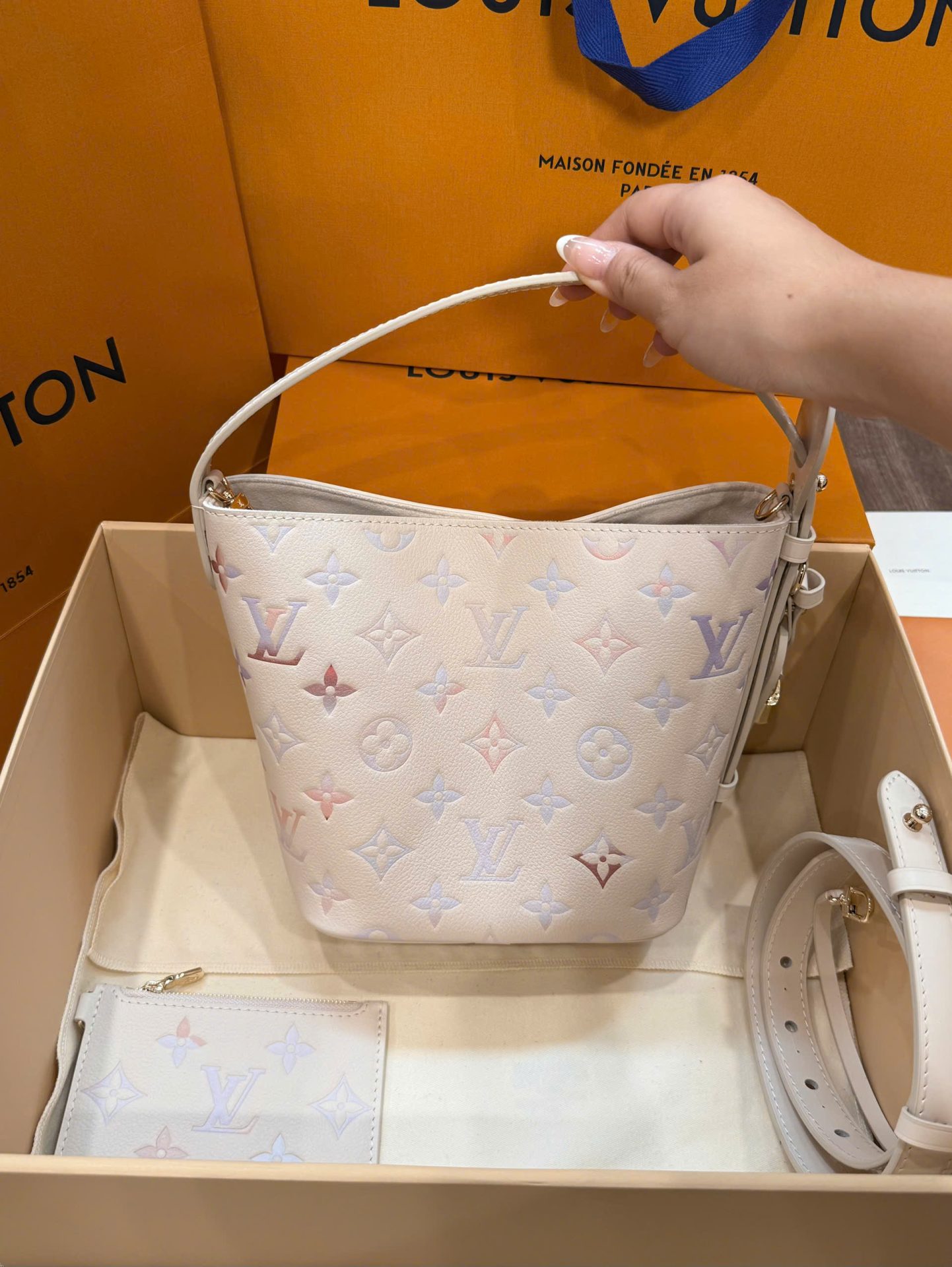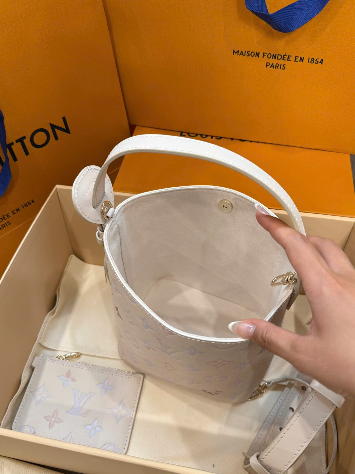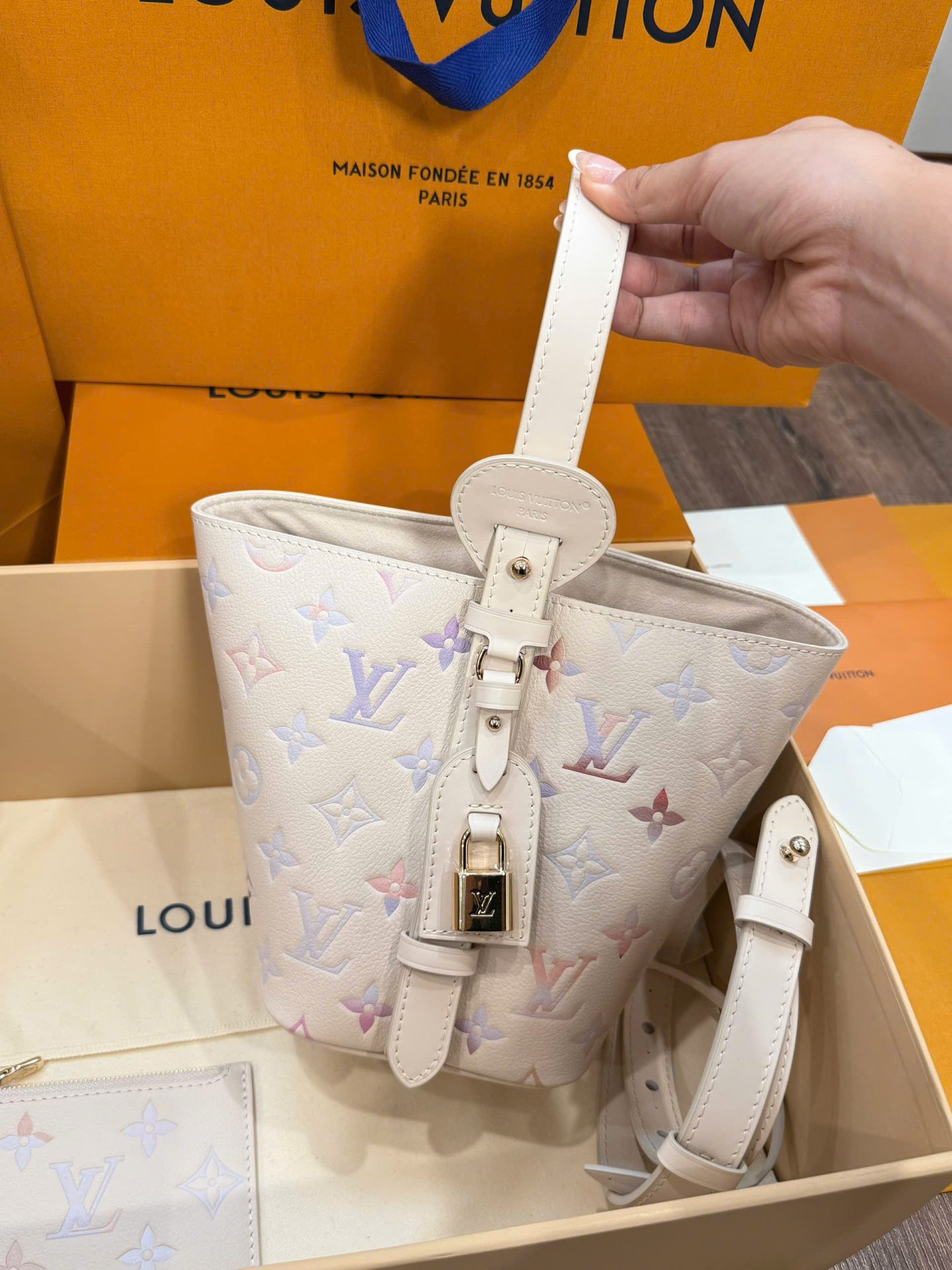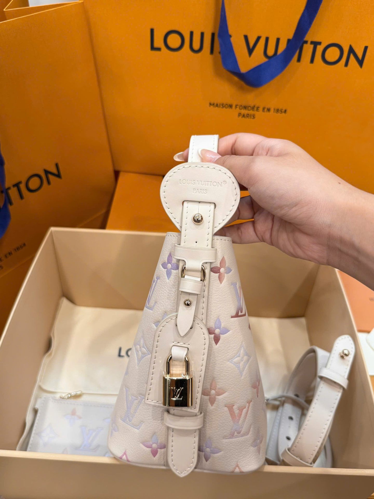 Túi Xách Louis Vuitton All In BB Siêu Cấp Da Bò Màu Kem Họa Tiết Dập Nổi 16x18x12cm