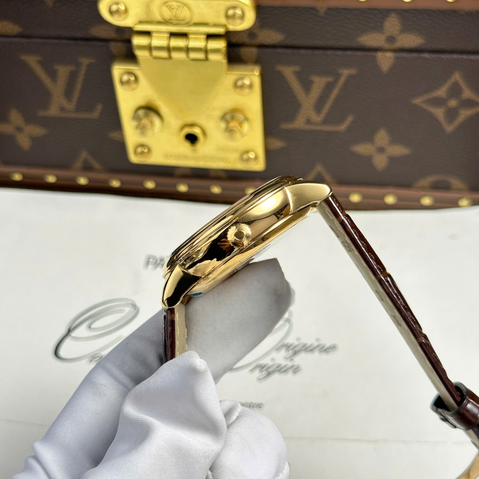 Đồng Hồ Omega De Ville Prestige Power Reserve Rep 1 1 Mạ Vàng Dây Da 39.5mm