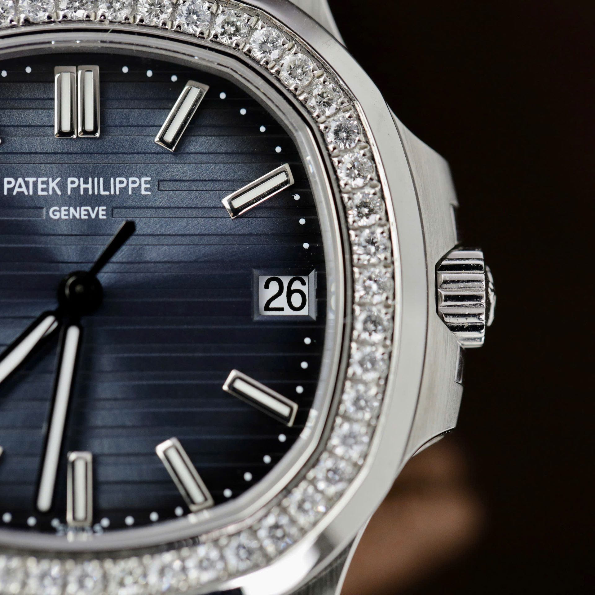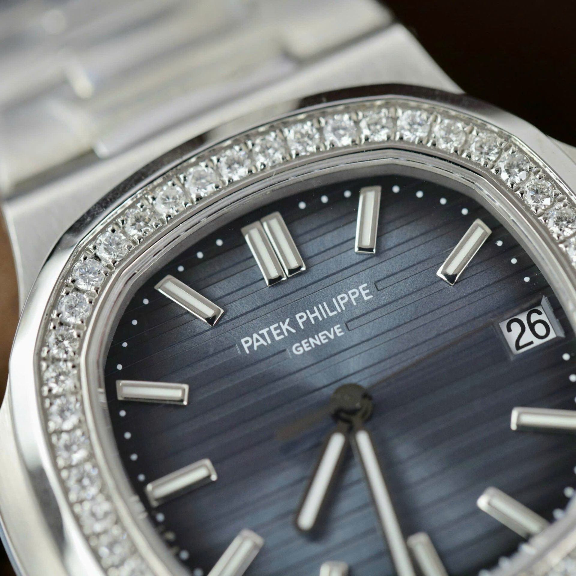 Đồng Hồ Patek Philippe Nautilus 5711 Mặt Xanh Chế Tác Viền Đính Kim Cương Tự Nhiên 40mm