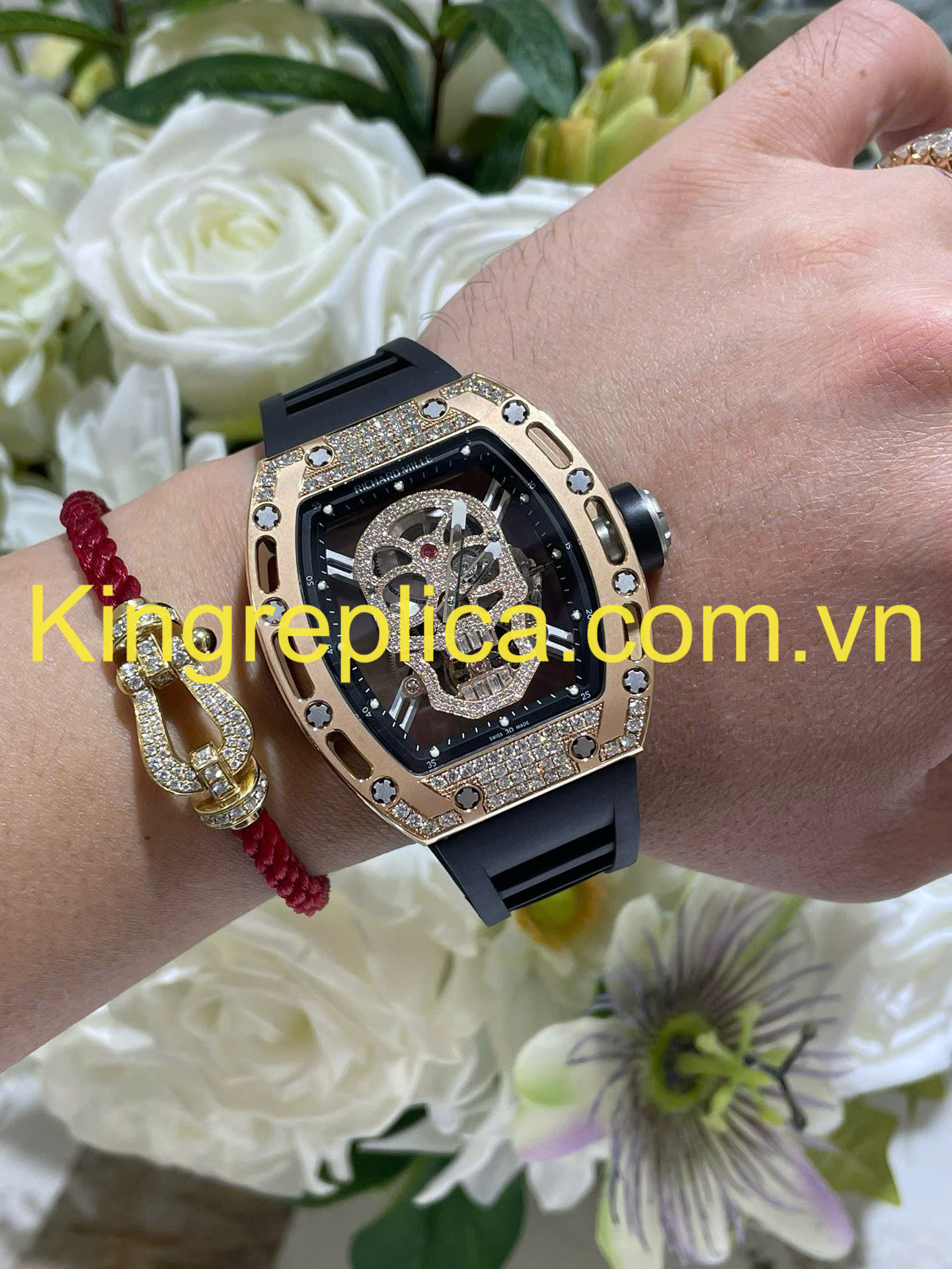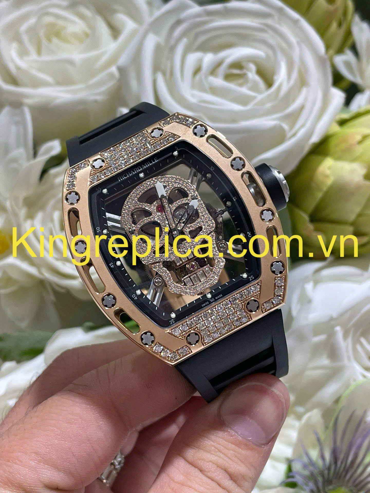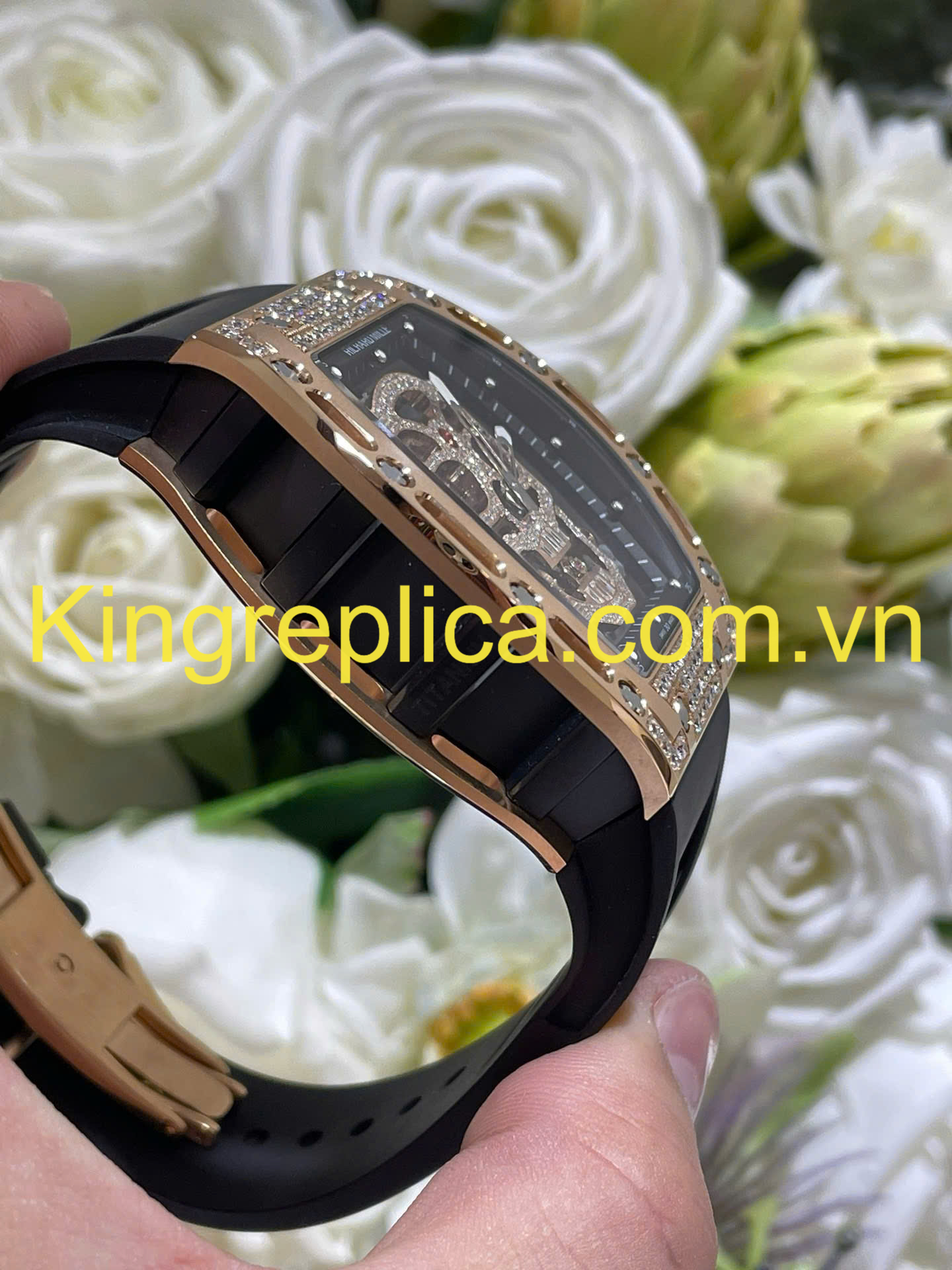 Đồng Hồ Richard Mille RM052 Bọc Vàng Hồng 18K Đính Kim Cương Moissanite Hong Kong 42mm