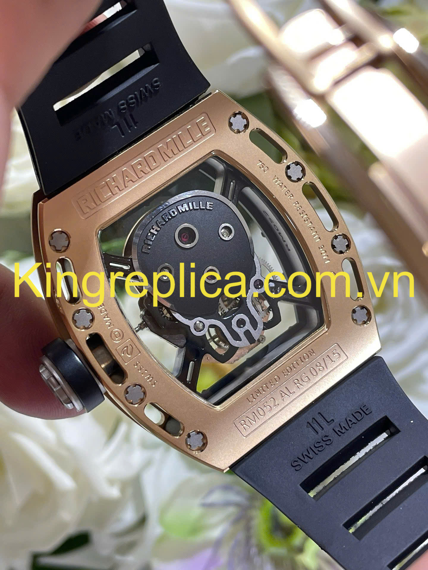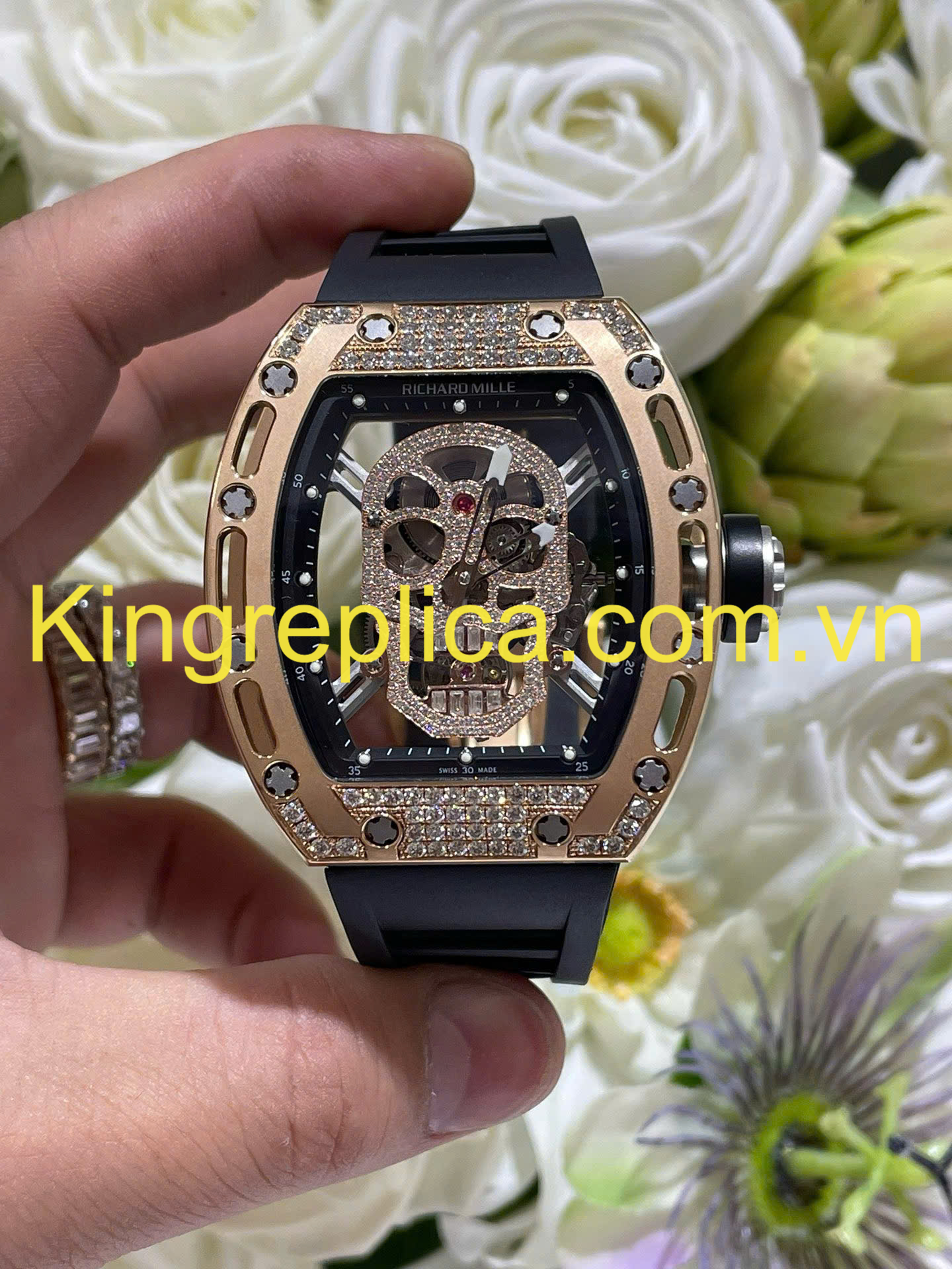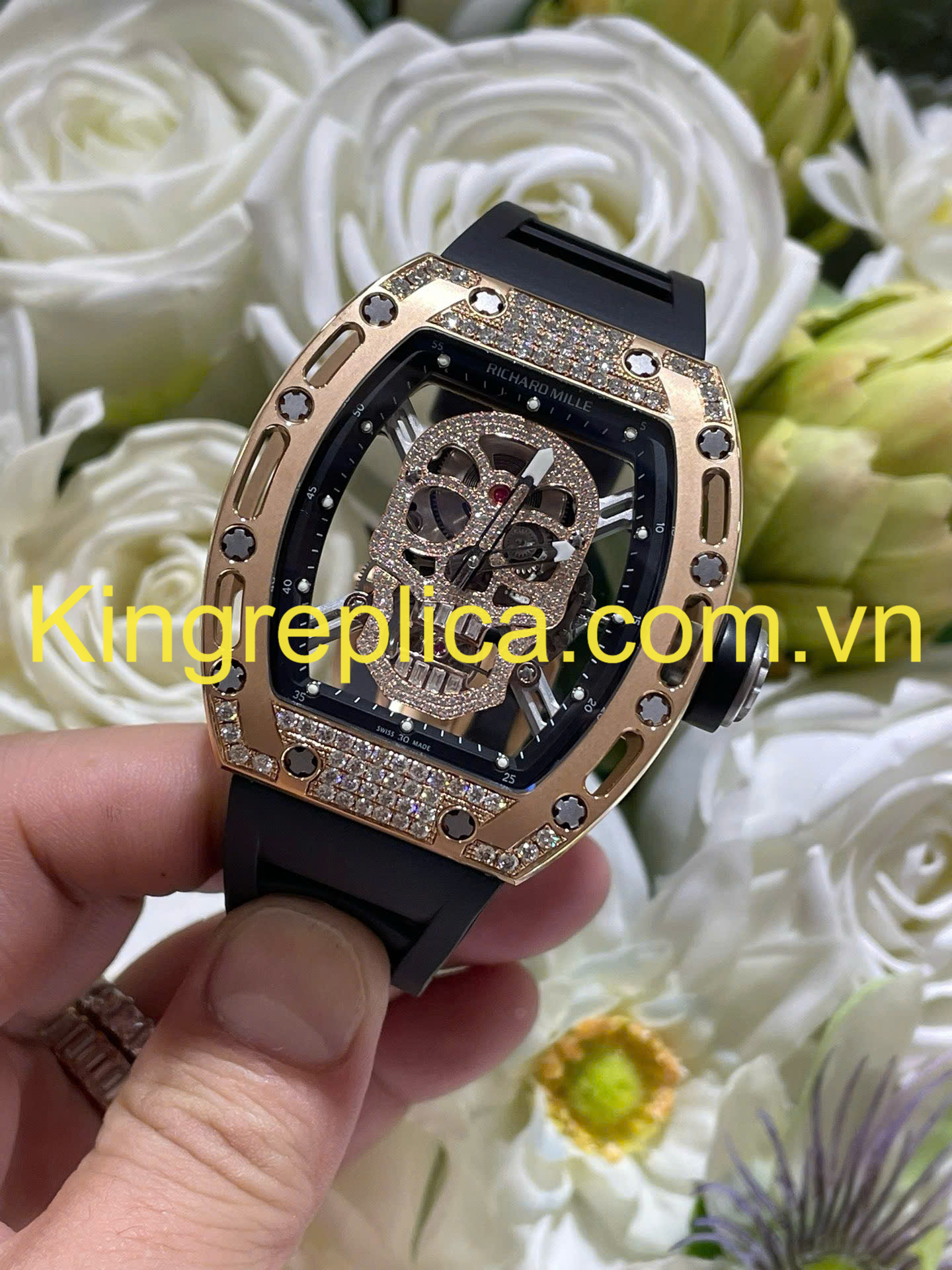 Đồng Hồ Richard Mille RM052 Bọc Vàng Hồng 18K Đính Kim Cương Moissanite Hong Kong 42mm