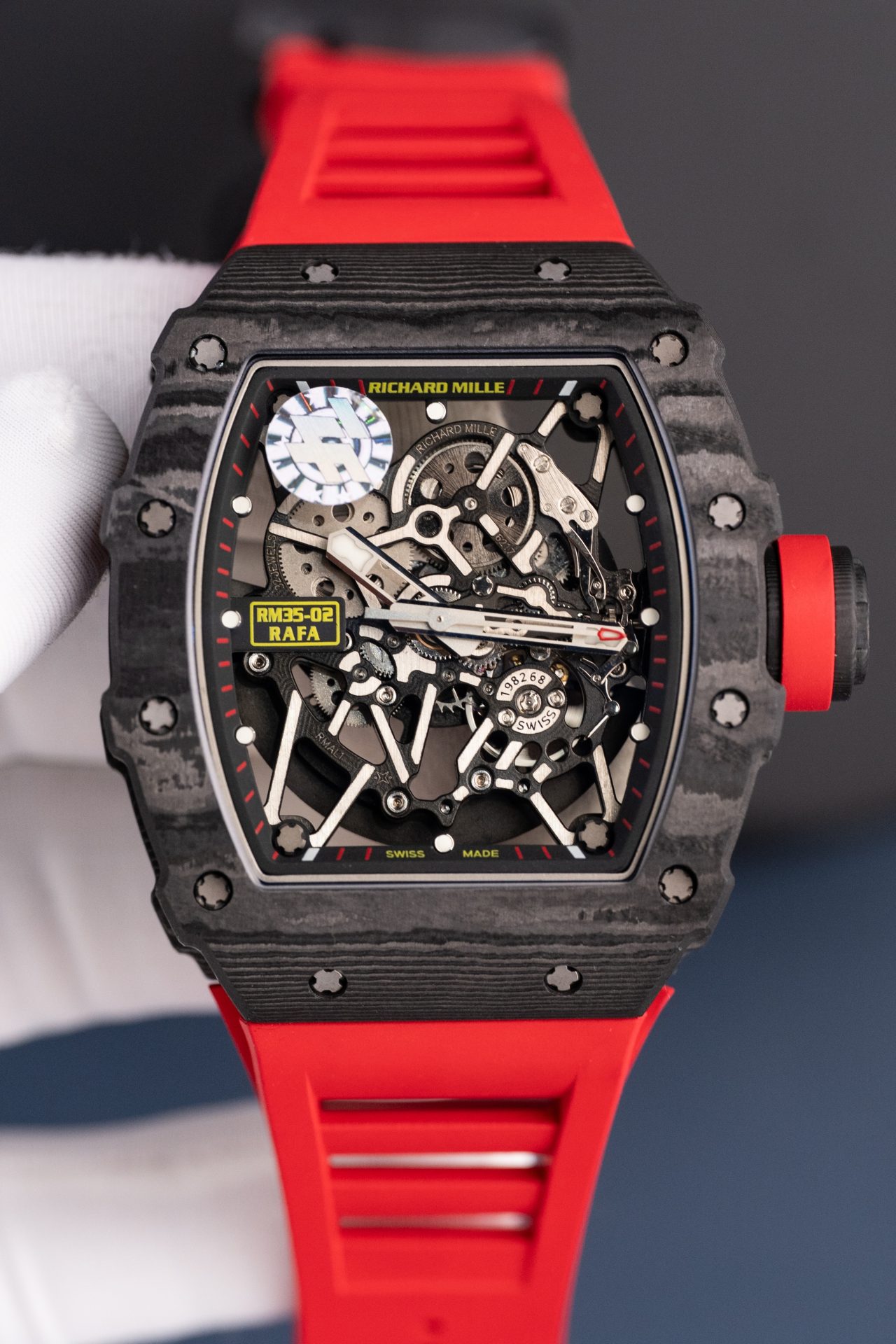 Đồng Hồ Richard Mille Rm35-02 Màu Đỏ Rep Cao Cấp Vỏ Carbon Siêu Nhẹ Nhà Máy ZF 44mm