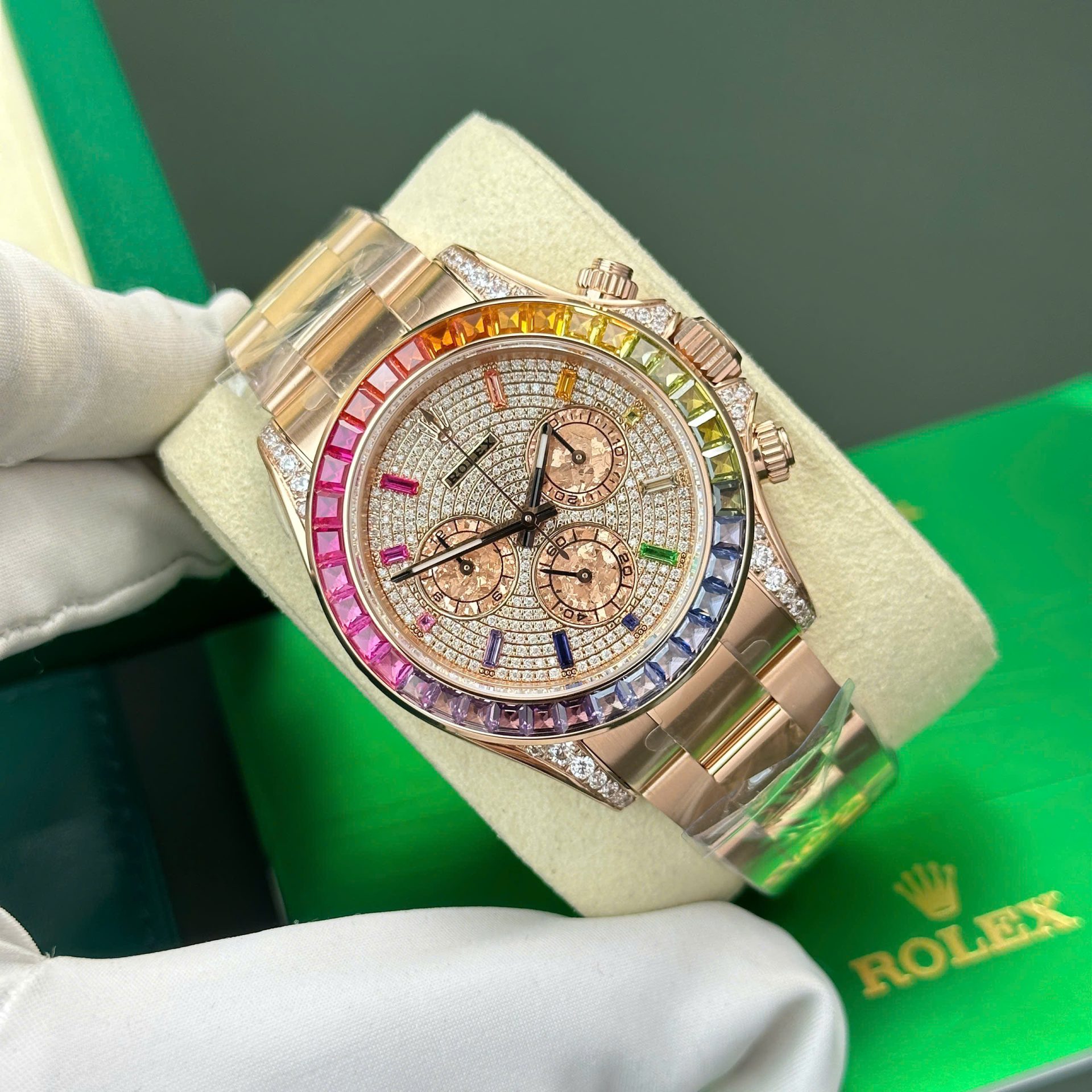 Đồng Hồ Rolex Cosmograph Daytona 116595 Rainbow Replica Đính Đá BTF 40mm