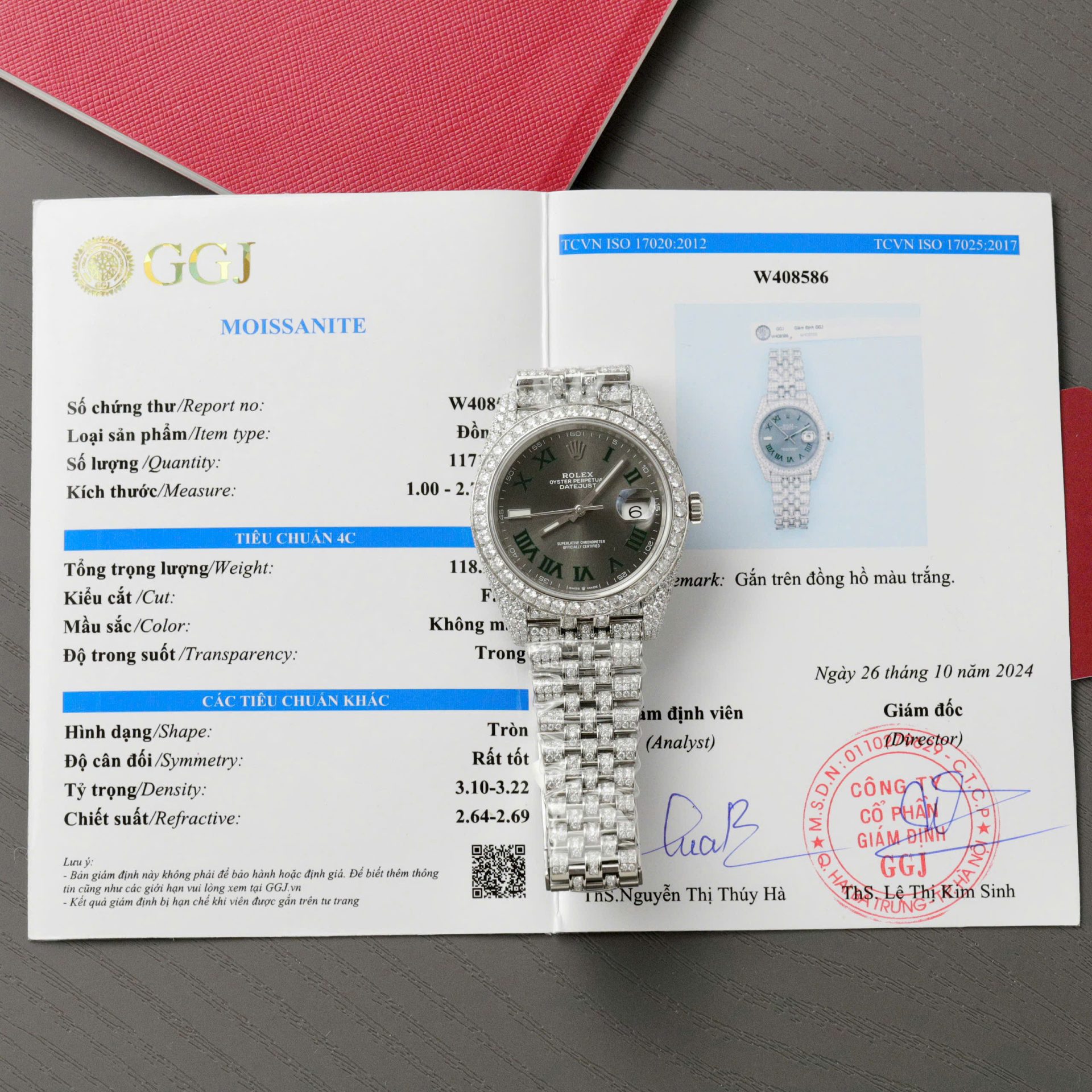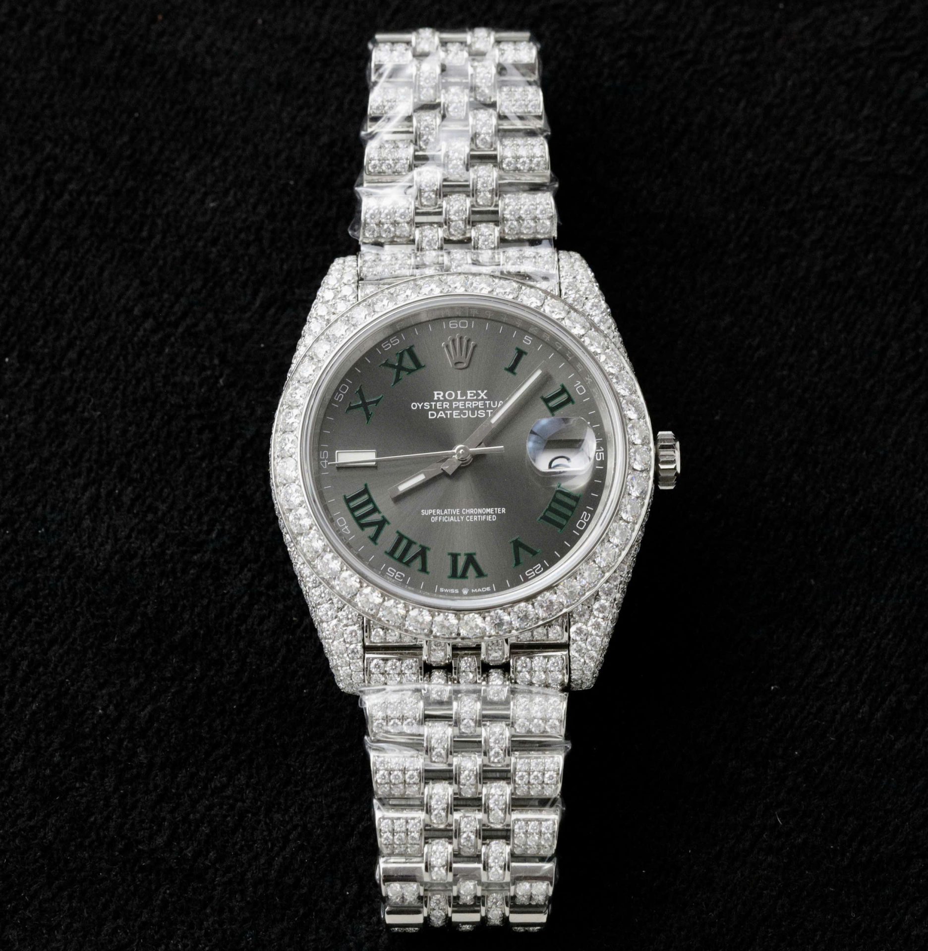 Đồng Hồ Rolex DateJust Mặt Số Wimbledon Chế Tác Full Kim Cương Moissanite 41mm
