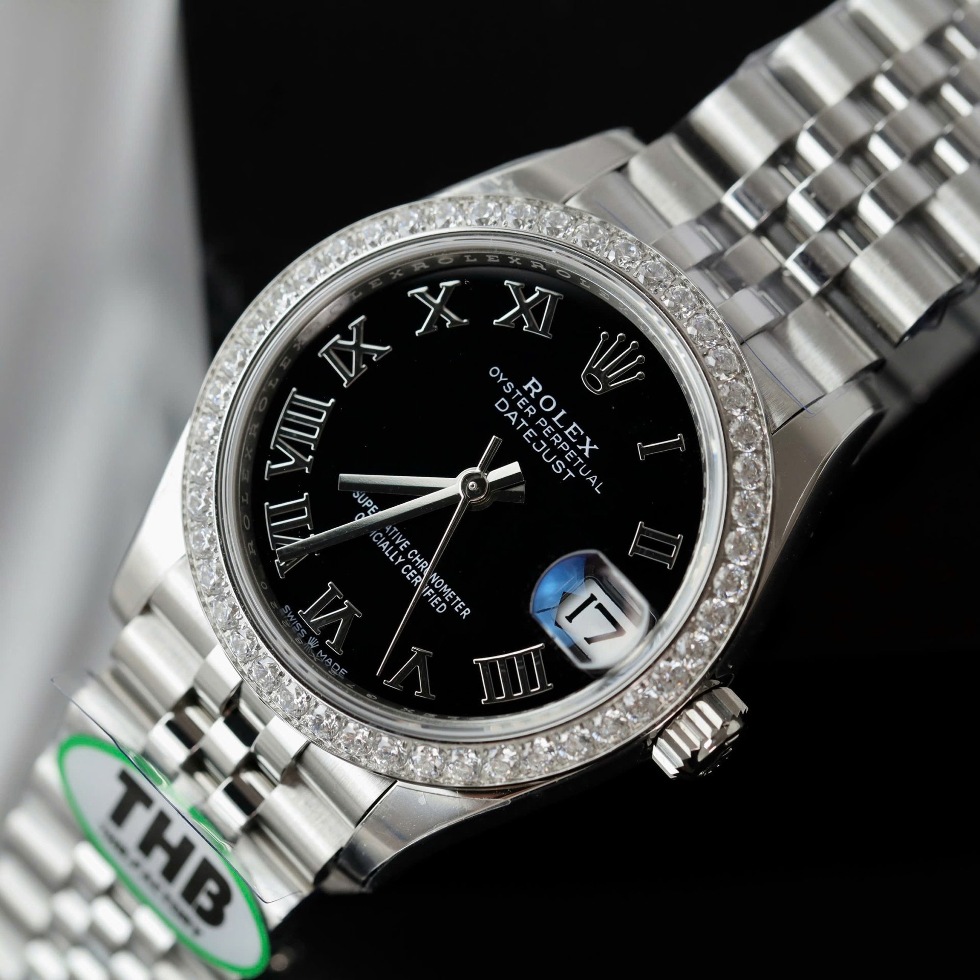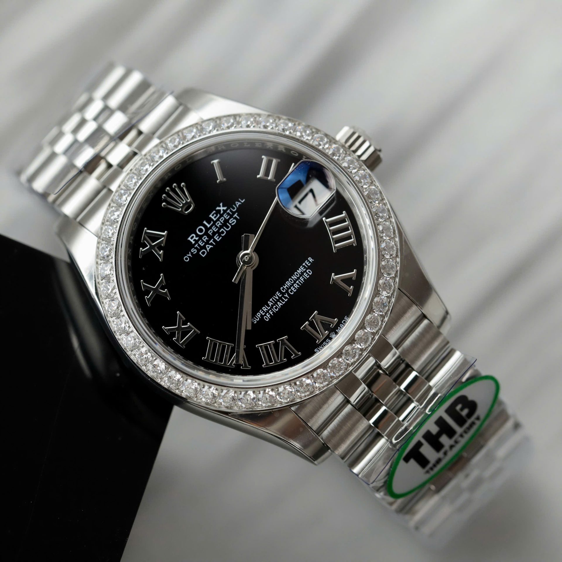 Đồng Hồ Rolex DateJust Nữ Chế Tác Mặt Đen Cọc Số La Mã Xưởng THB 31mm