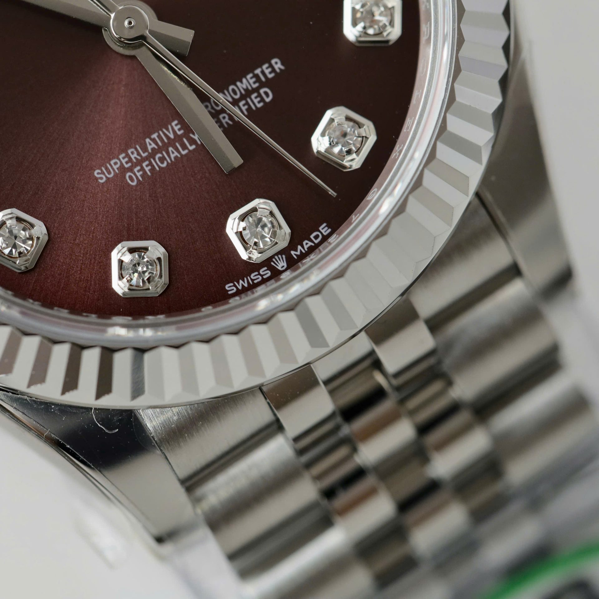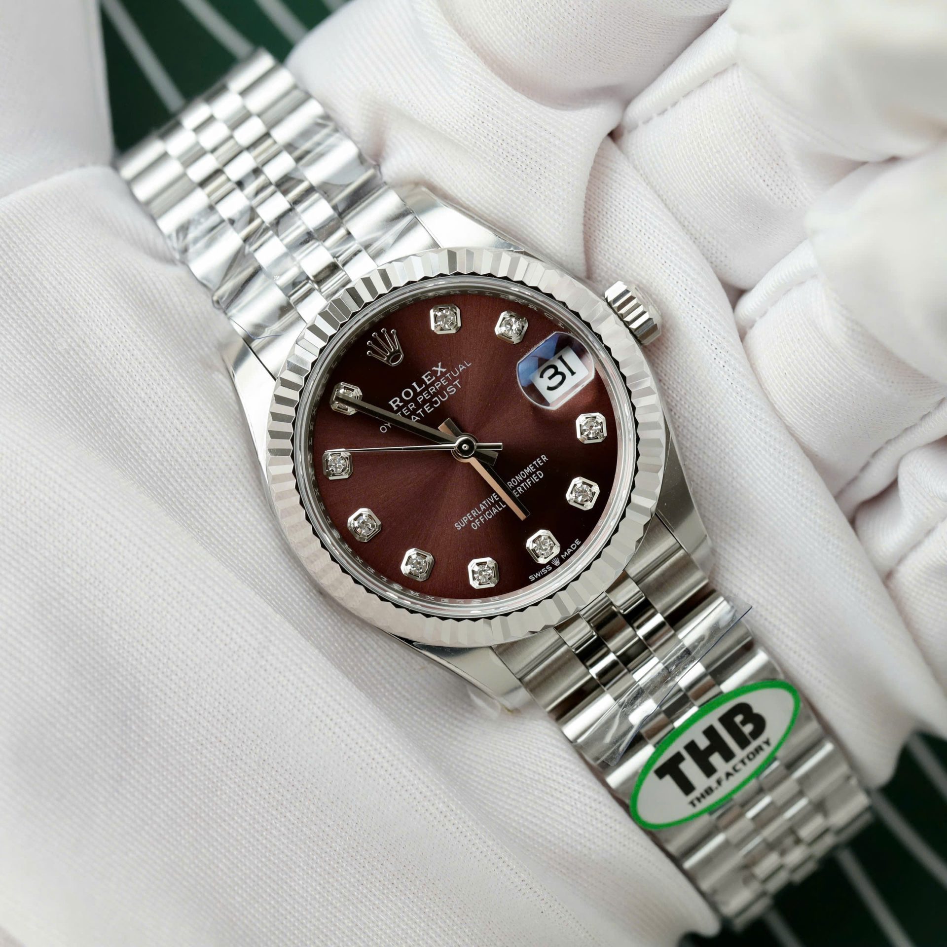 Đồng Hồ Rolex DateJust Replica 11 Mặt Vang Nho Dây Jubilee Xưởng THB 31mm