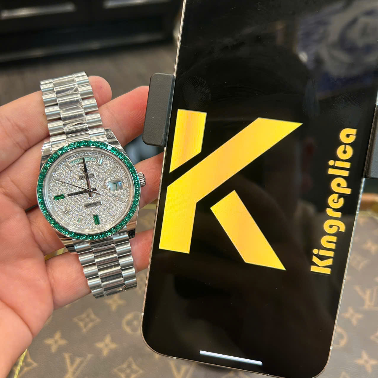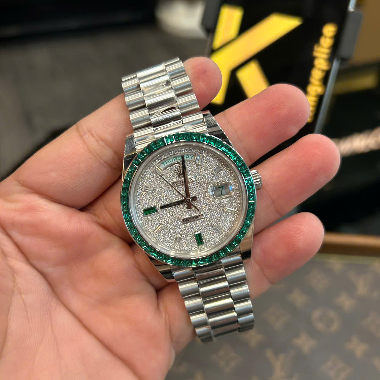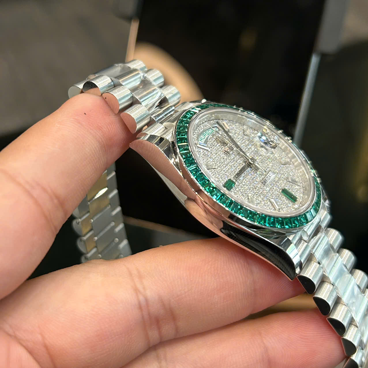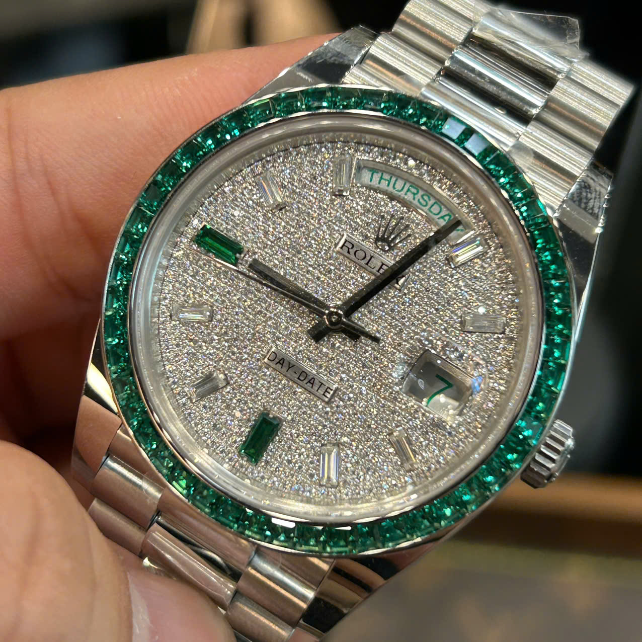Đồng Hồ Rolex Day-Date Chế Tác Kim Cương Moissanite Trọng Lượng 200 Gram 40mm
