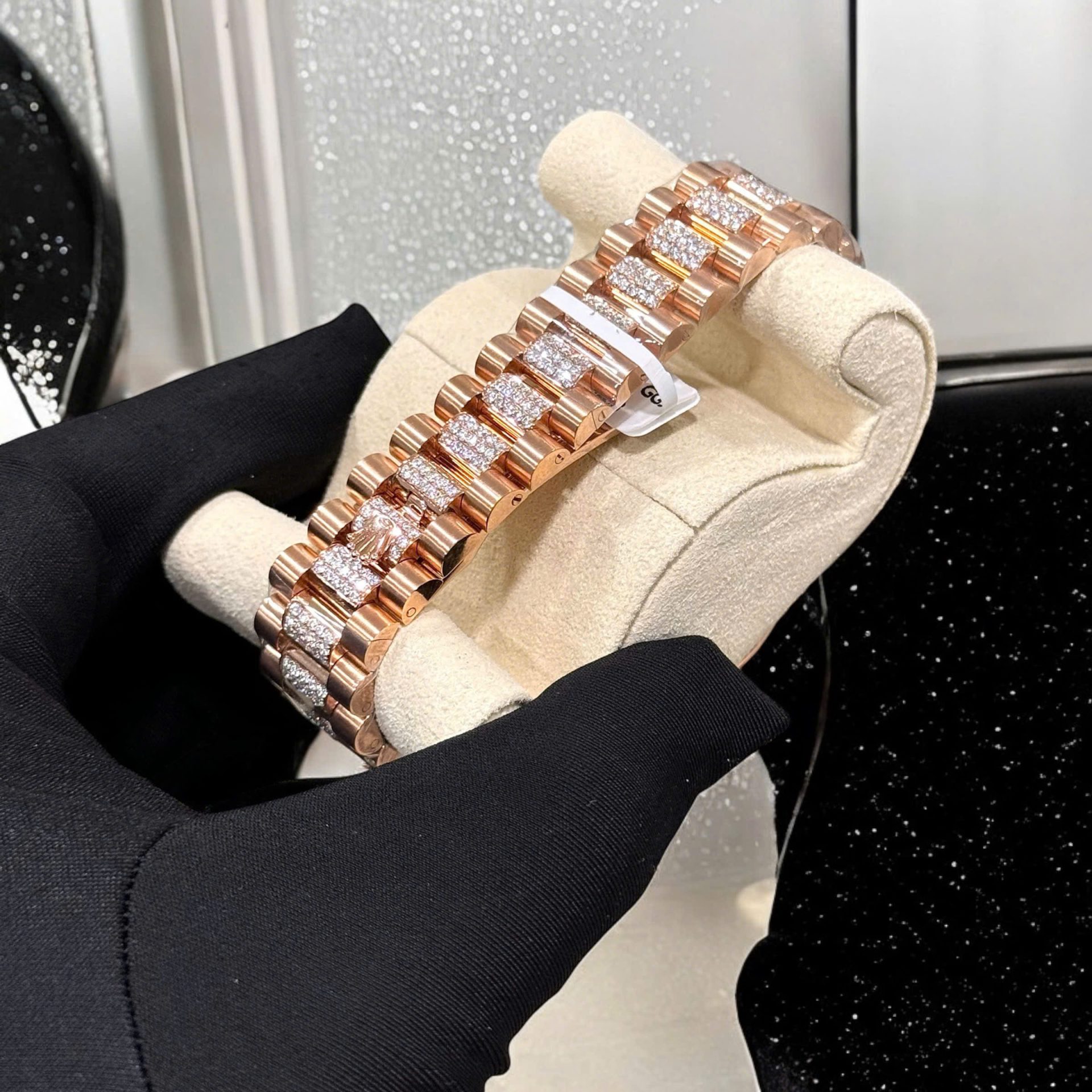 Đồng Hồ Rolex Day-Date Chế Tác Bọc Vàng Đính Kim Cương Moissanite Hong Kong phiên bản cao cấp nhất đang có sẵn tại King Replica.