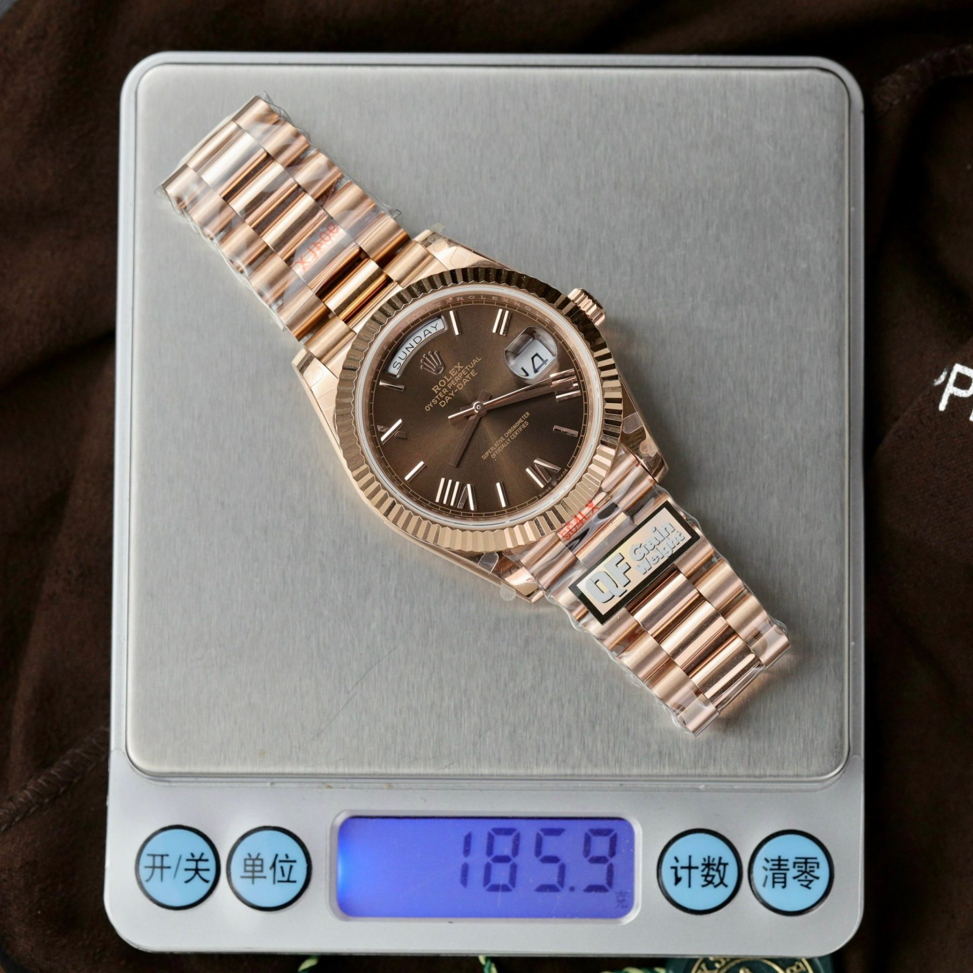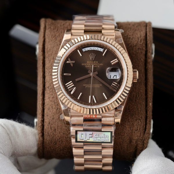 Đồng Hồ Rolex Day-Date Mạ Vàng Hồng Replica 1 1 Nặng 186 Grams Nhà Máy QF 40mm
