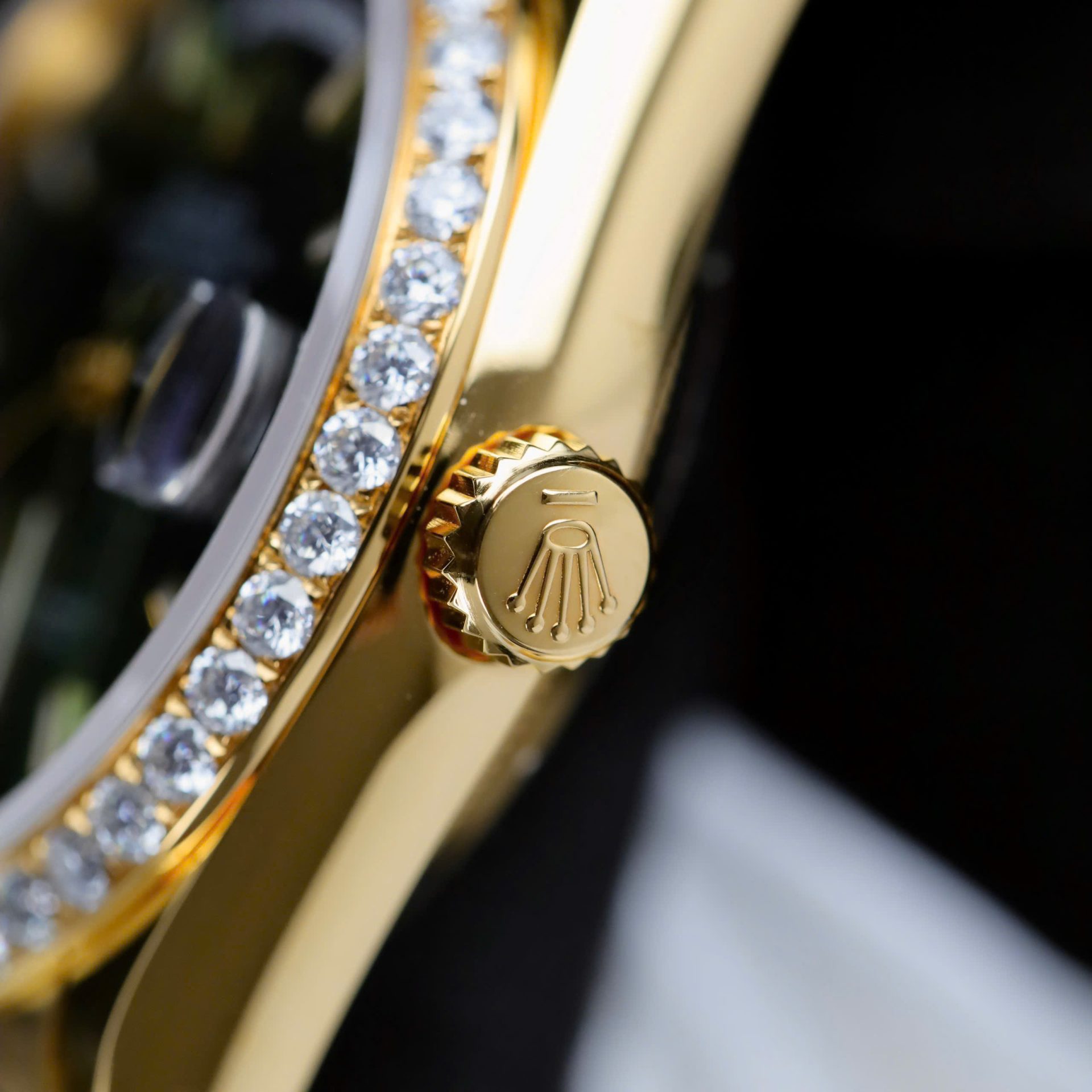 Đồng Hồ Rolex Day-Date Mặt Xanh Lá Cây Chế Tác Bọc Vàng Thật Đính Moissanite Hong Kong 36mm