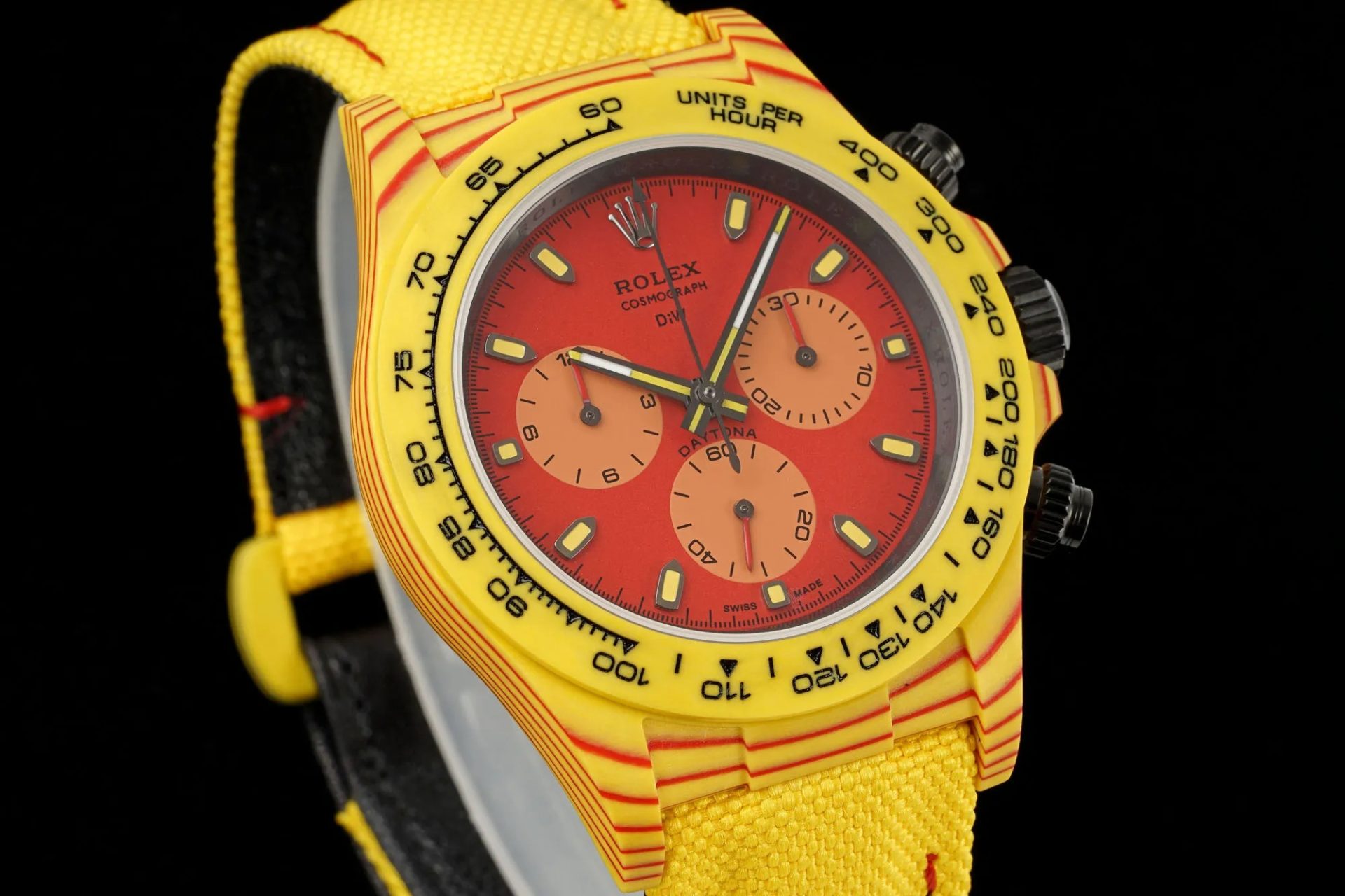 Đồng Hồ Rolex Daytona Diw Carbon Fiber Volcano Replica Cao Cấp Màu Vàng 40mm