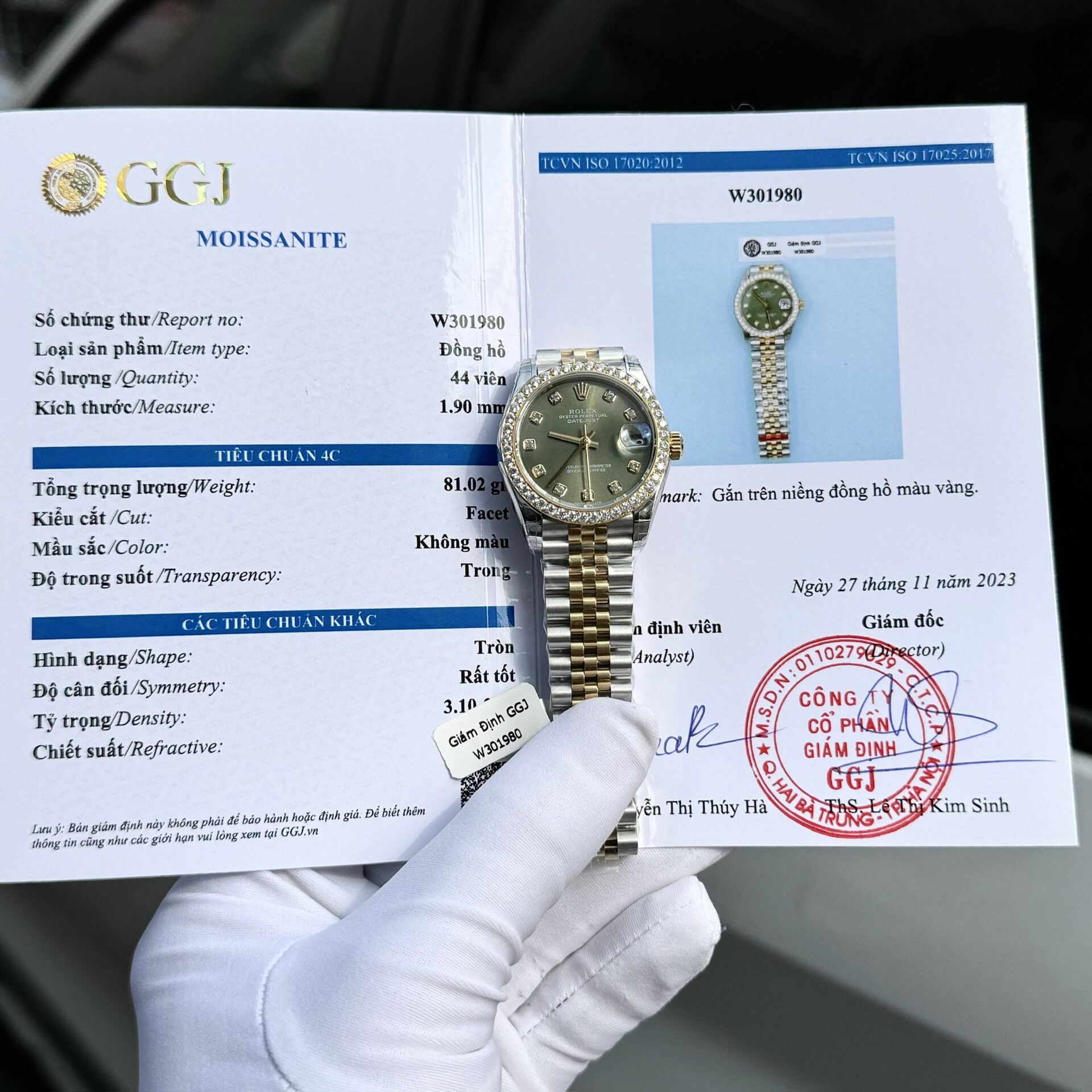 Đồng Hồ Rolex Nữ DateJust Độ Kim Cương Moissanite Mặt Xanh Lá 31mm