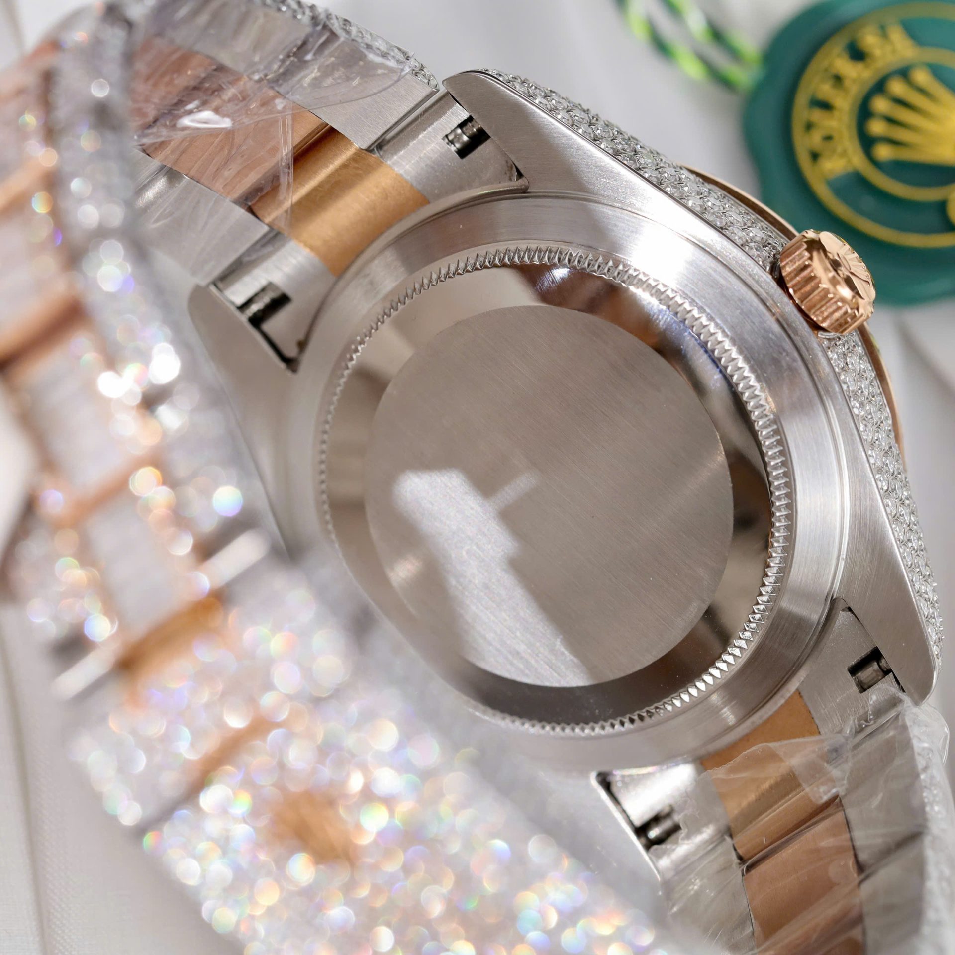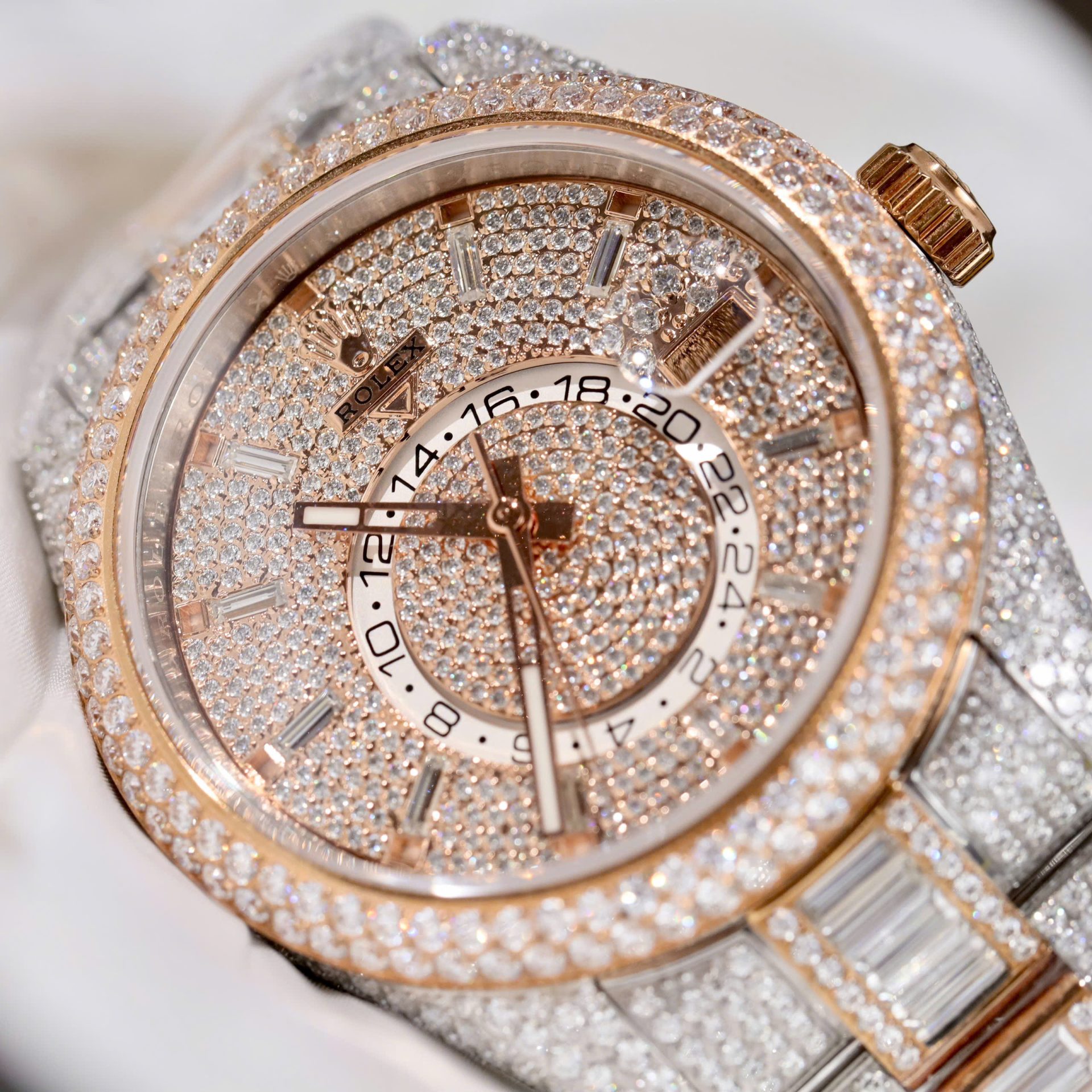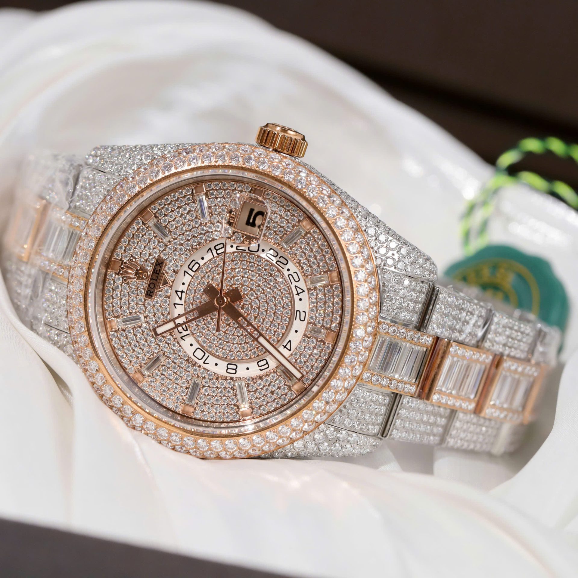 Đồng Hồ Rolex Sky-Dweller Chế Tác Đính Full Đá CZ Demi Vàng Hồng 42mm