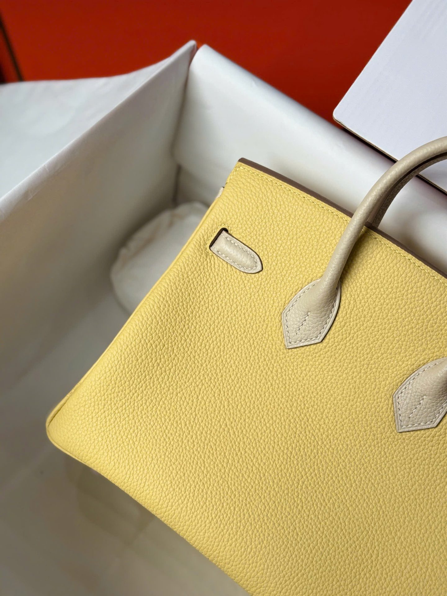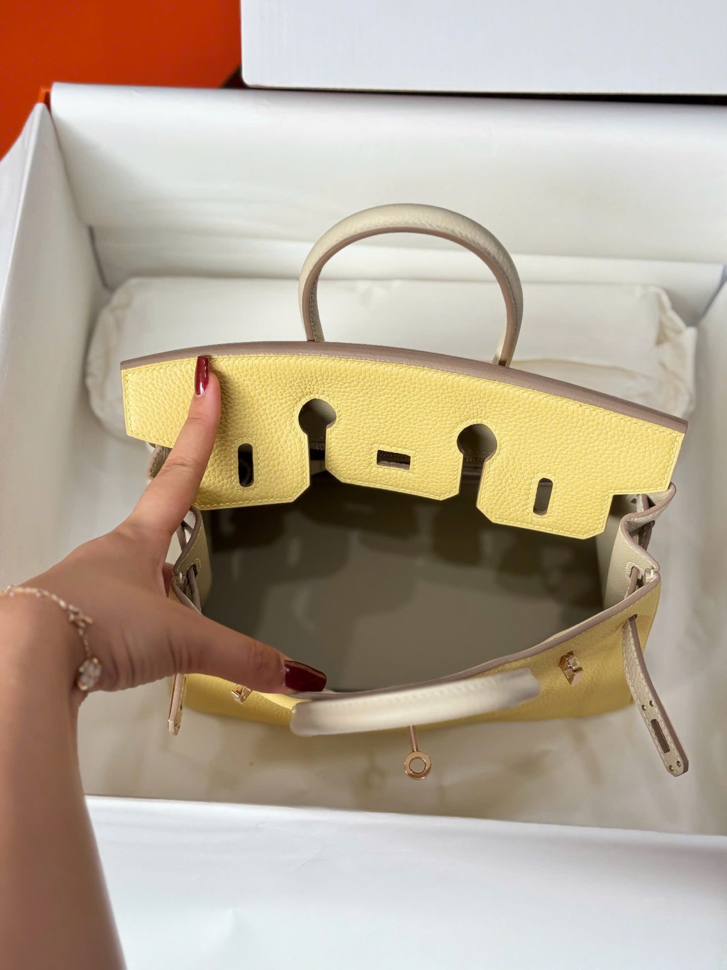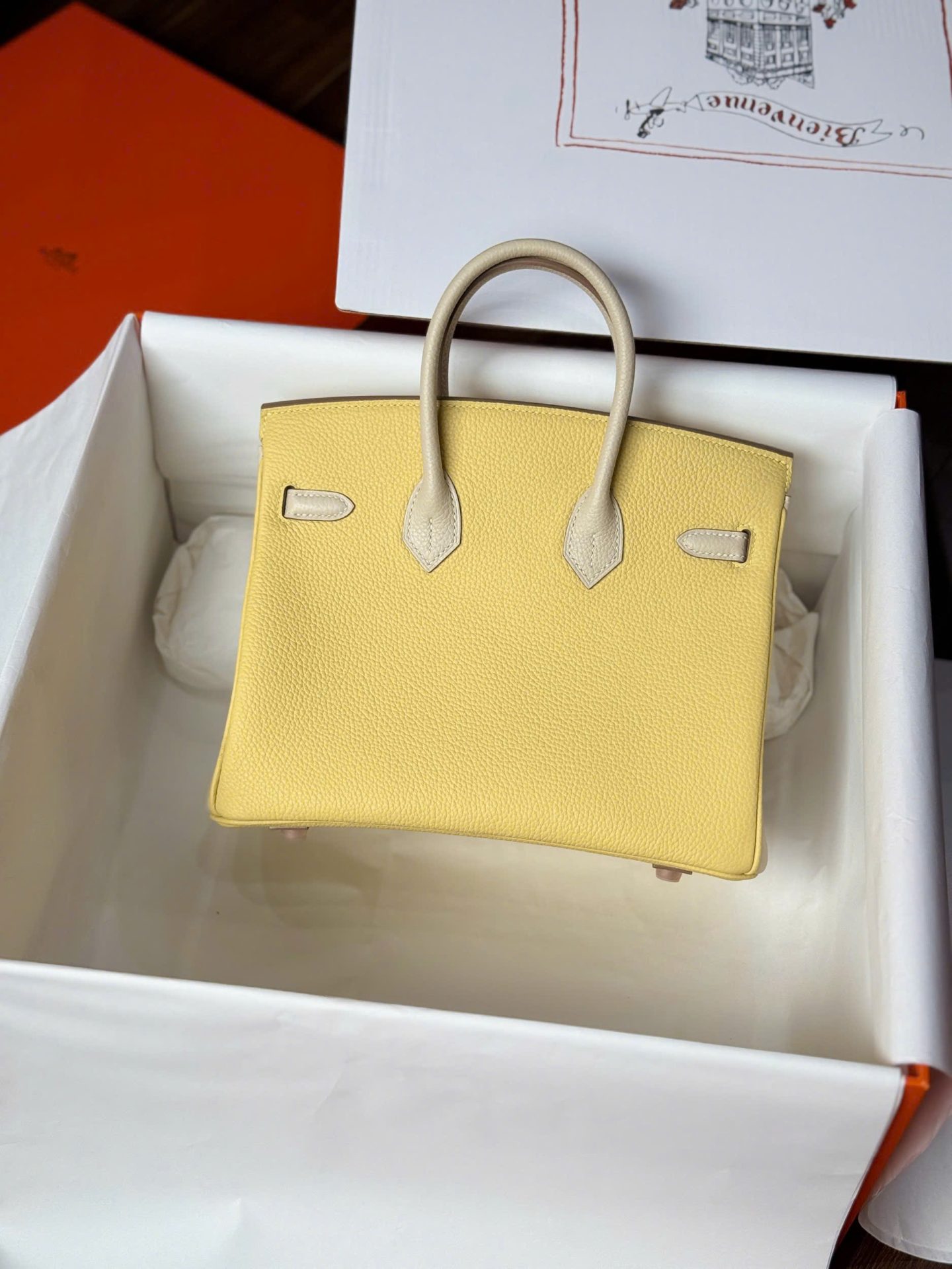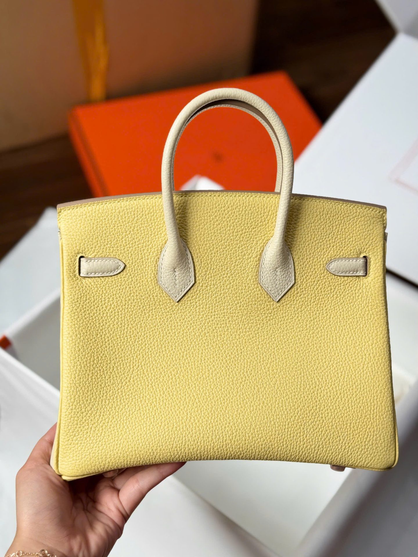 Hermes Birkin Handbag Near Authentic Yellow Color Rose Gold Lock 25cm