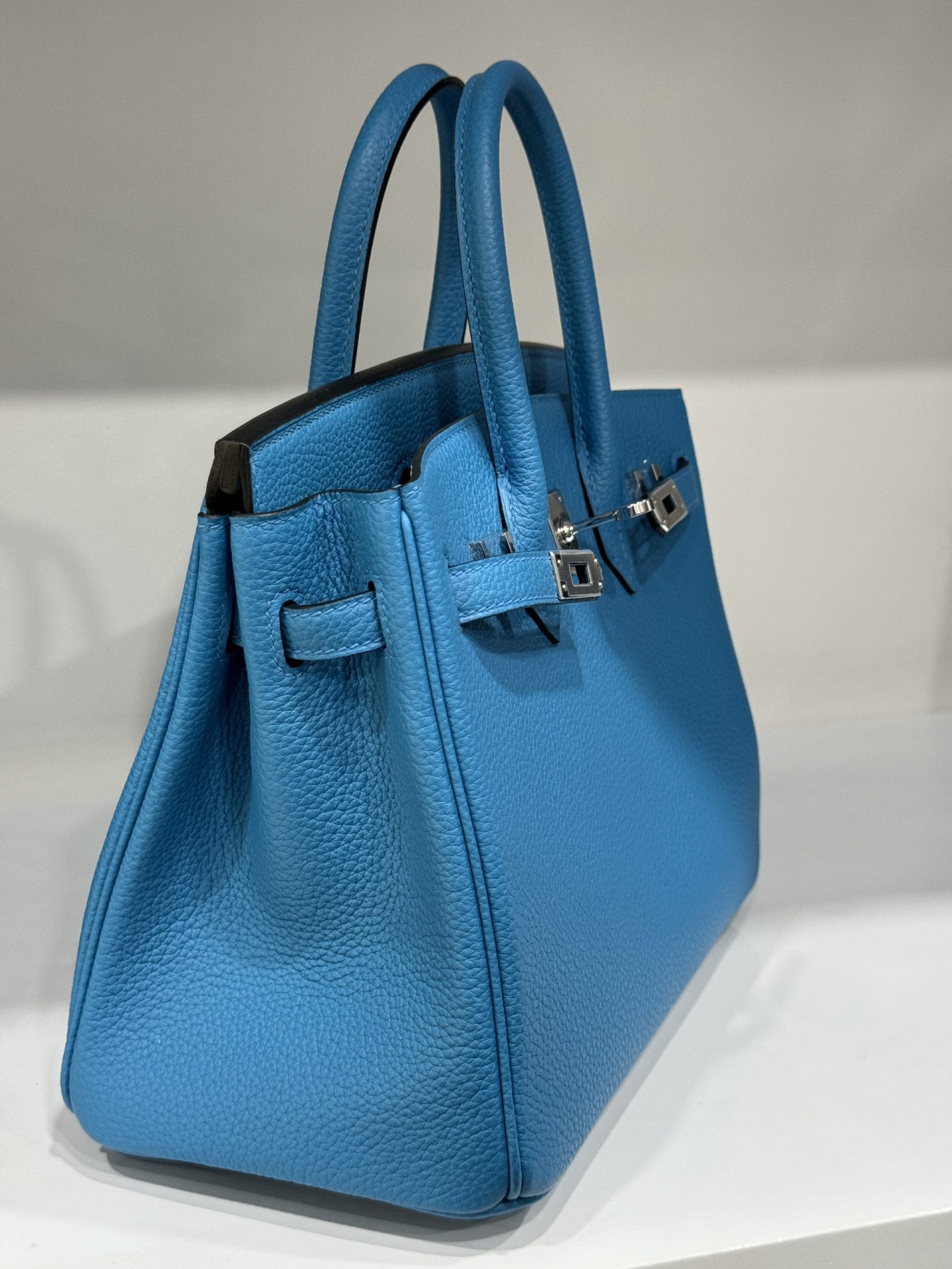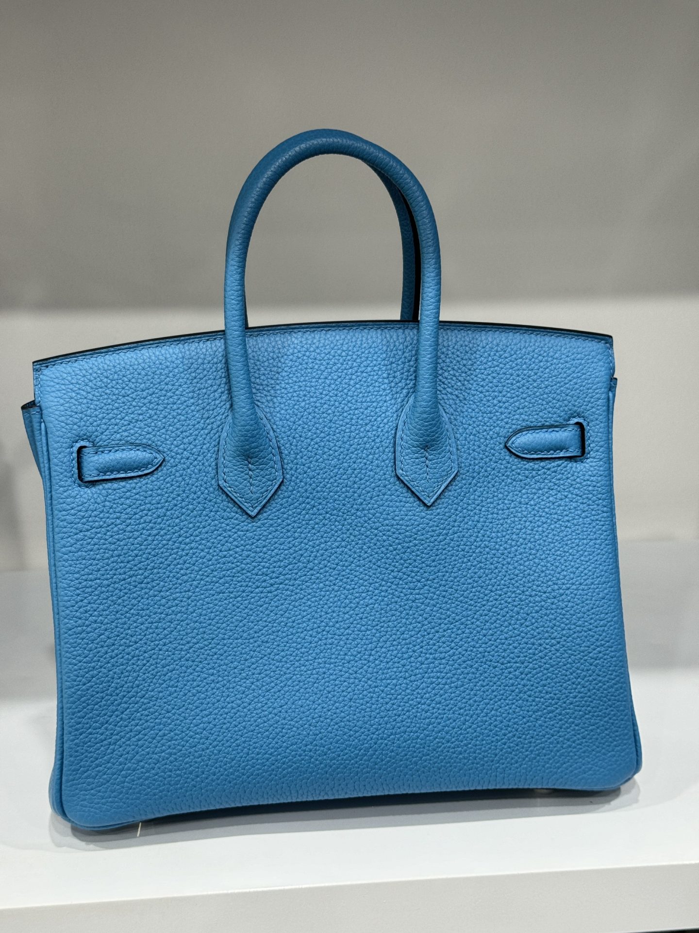 Hermes Birkin PHW Togo Handbag For Women Blue Like Auth 25cm
