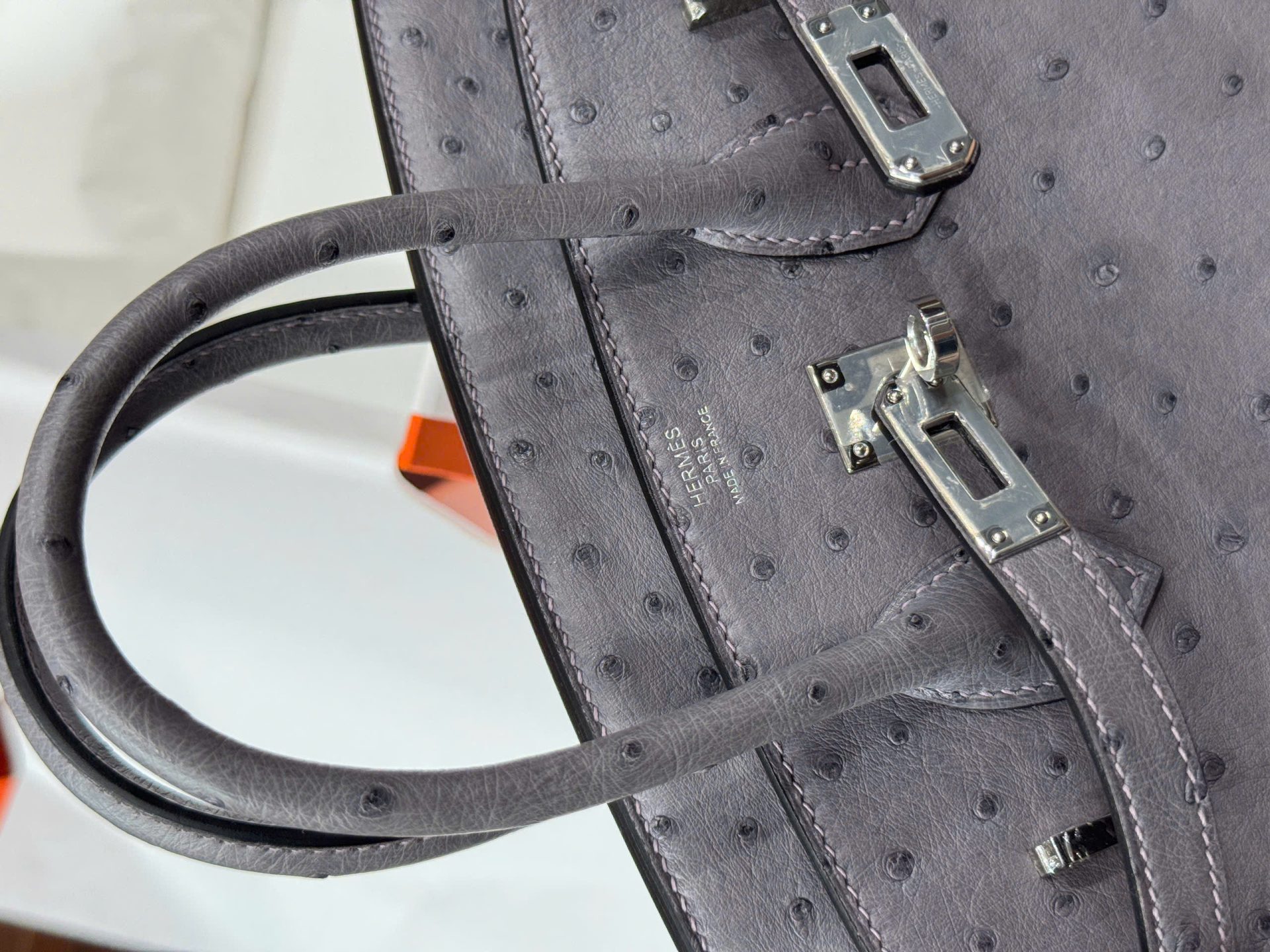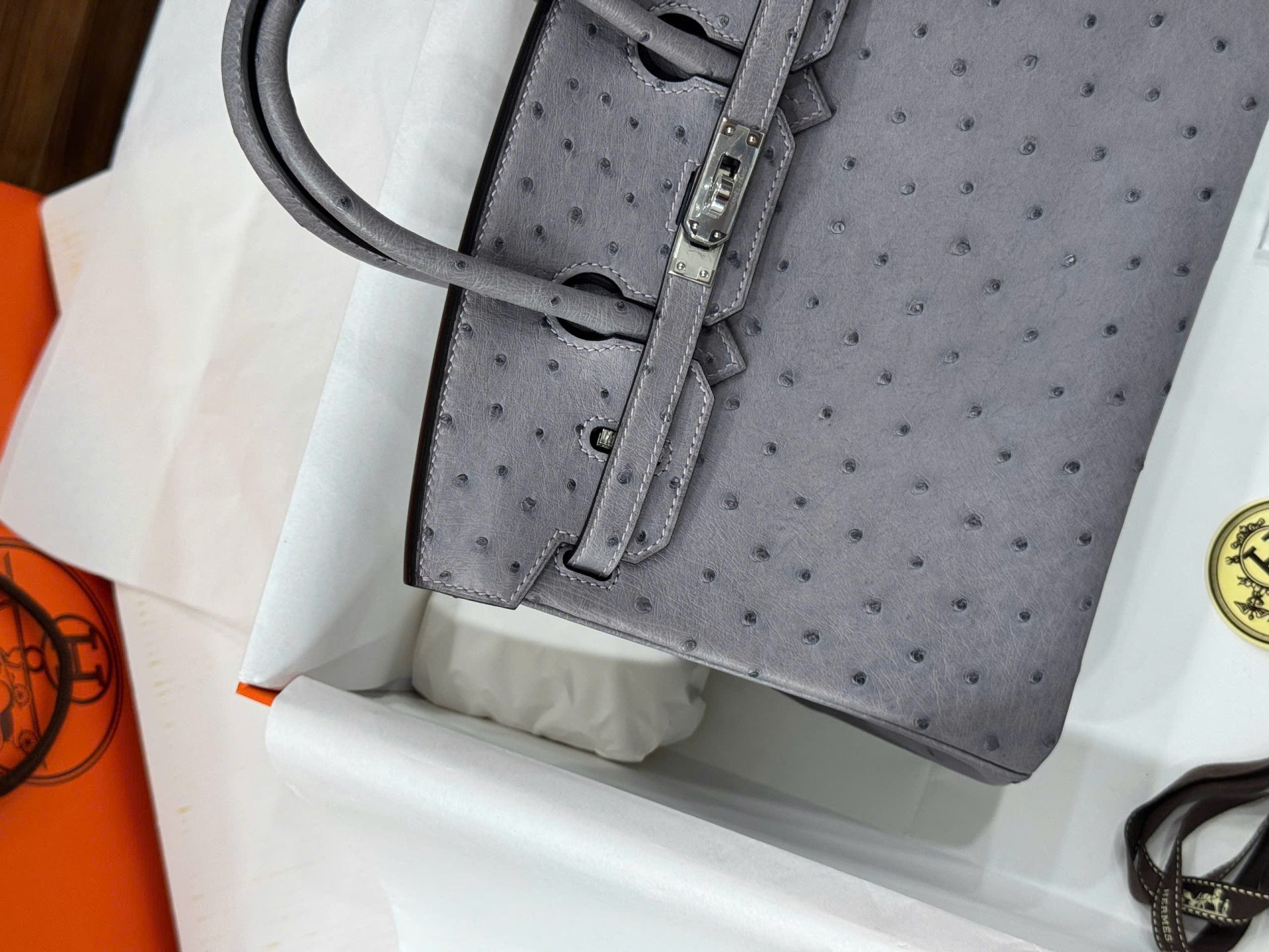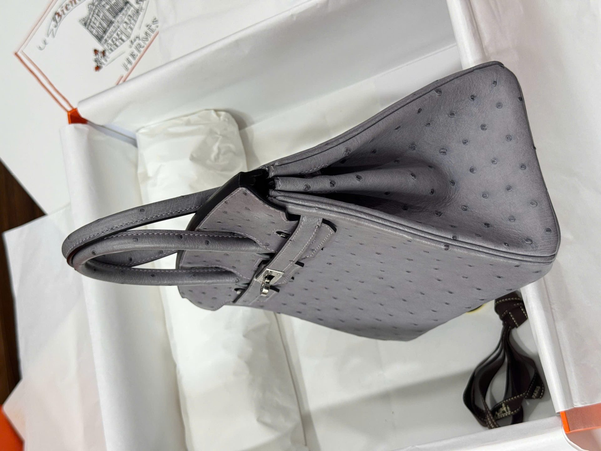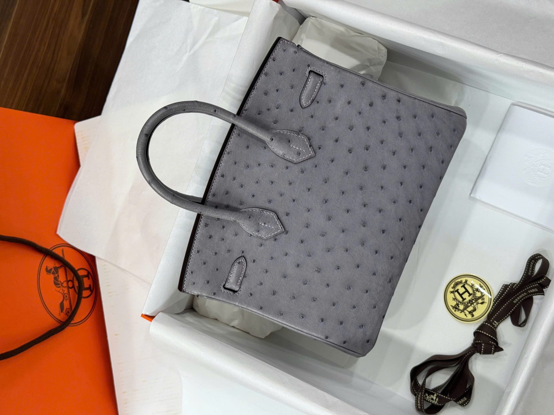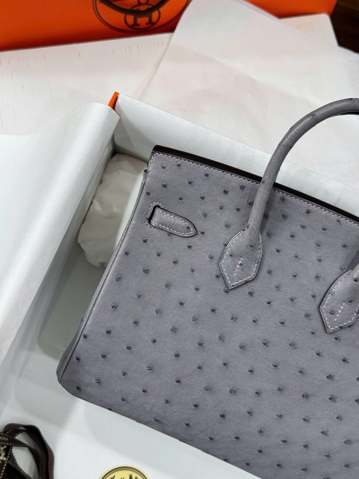 Hermes Birkin Replica Ostrich Leather Handbag Gray 25cm