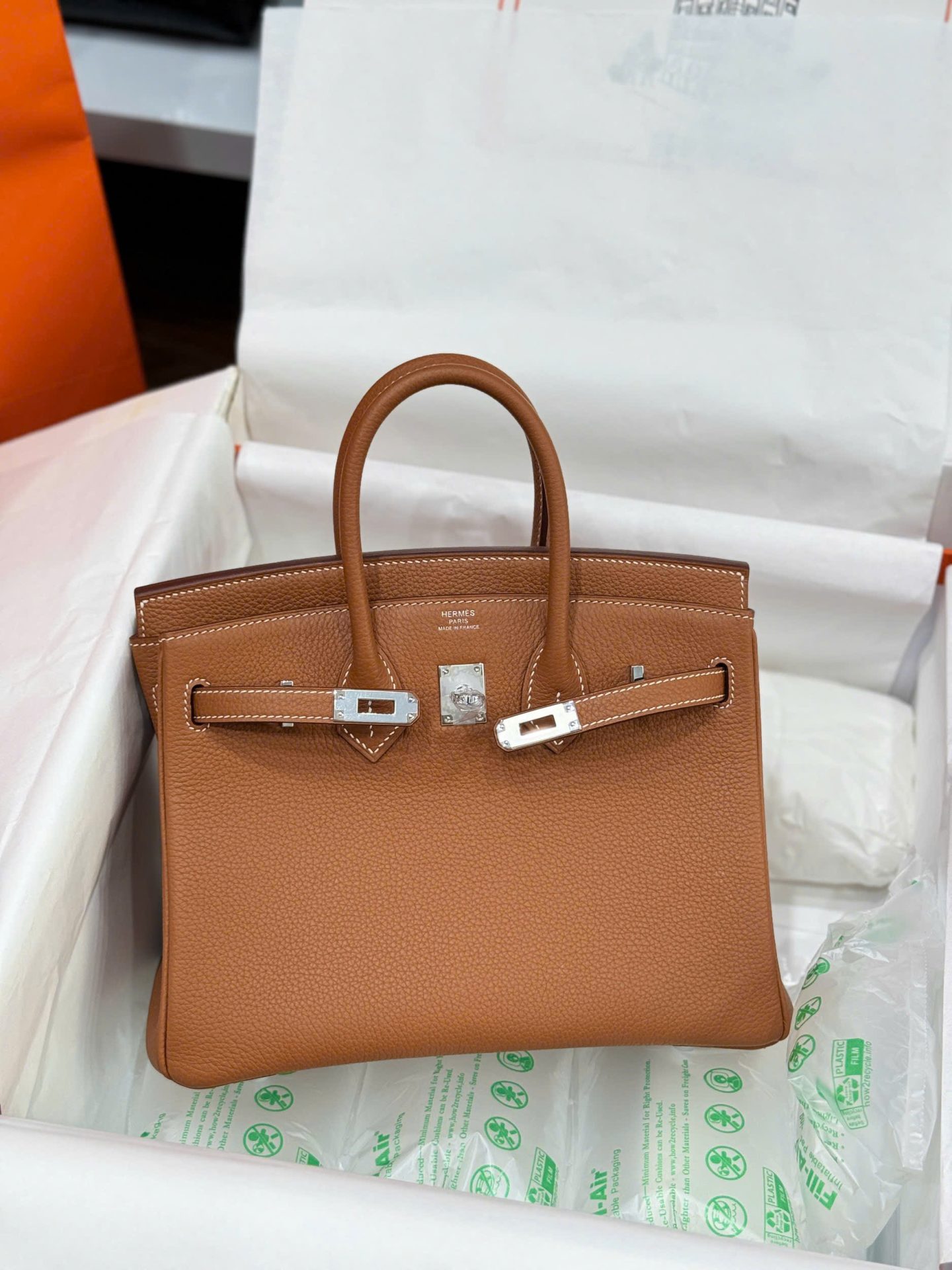 Hermes Birkin Women’s Handbag Brown Cracked Leather Like Auth