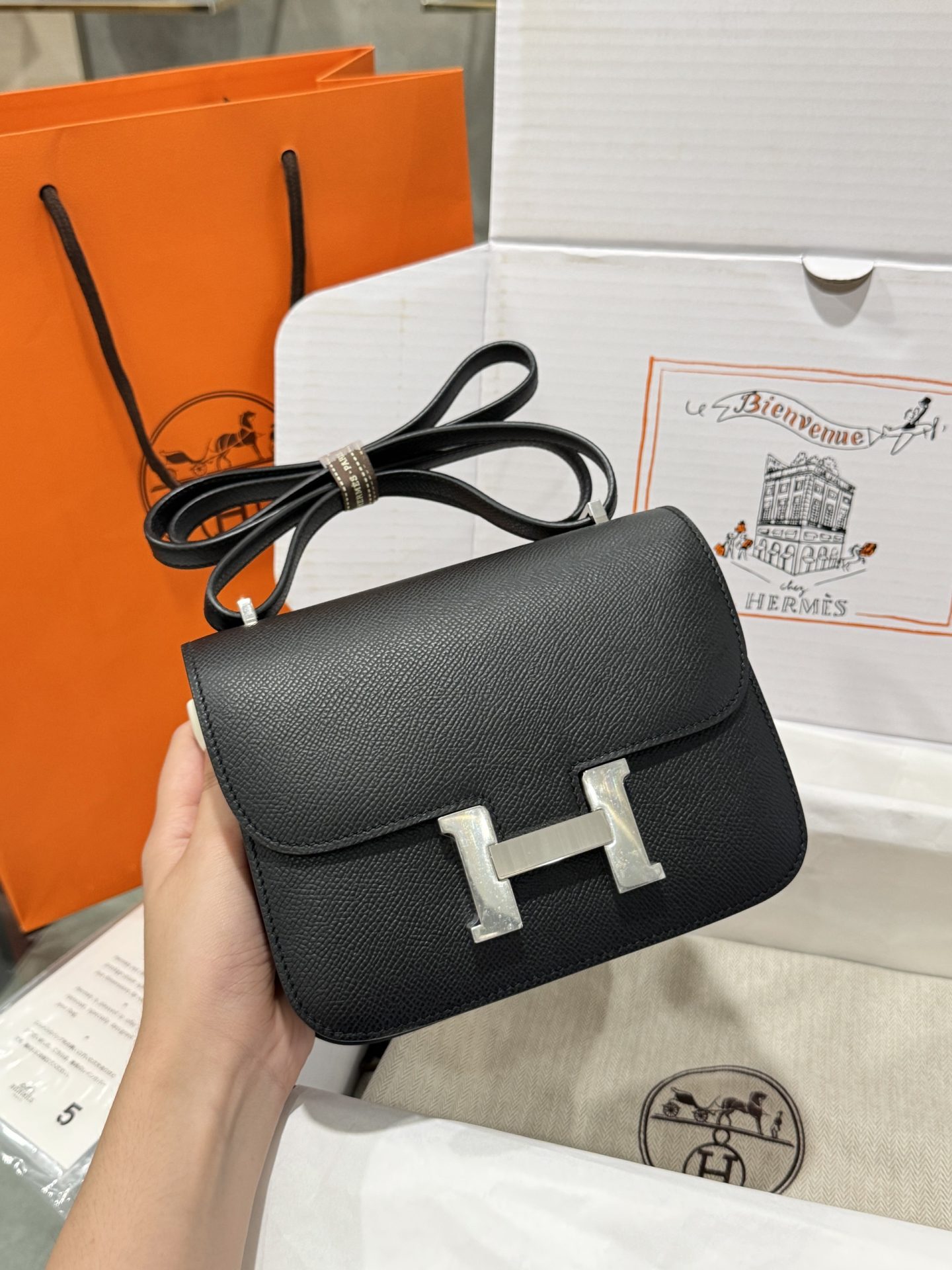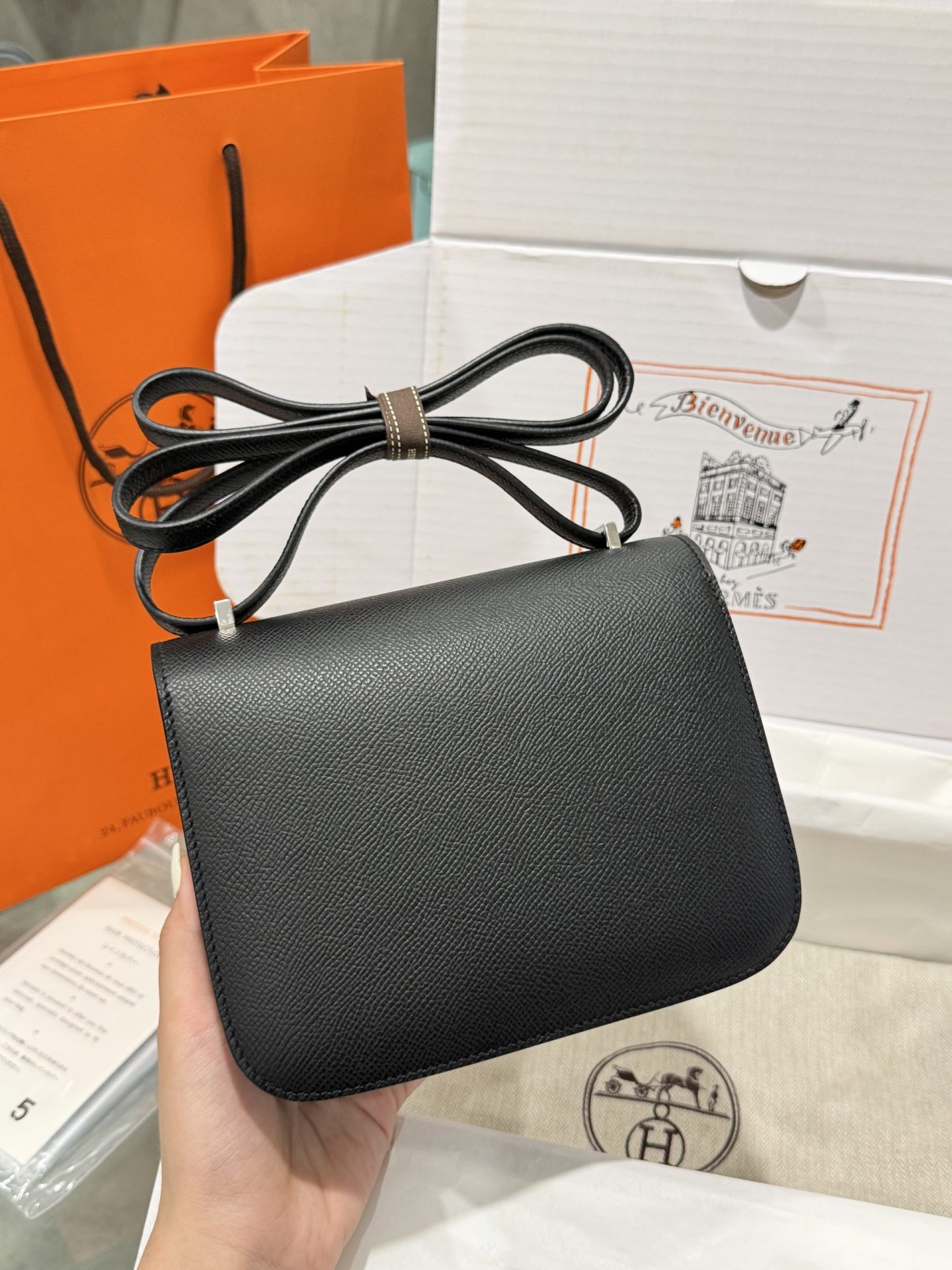 Hermes Constance Replica Handbag 11 Black White Lock Hand-sewn 19cm