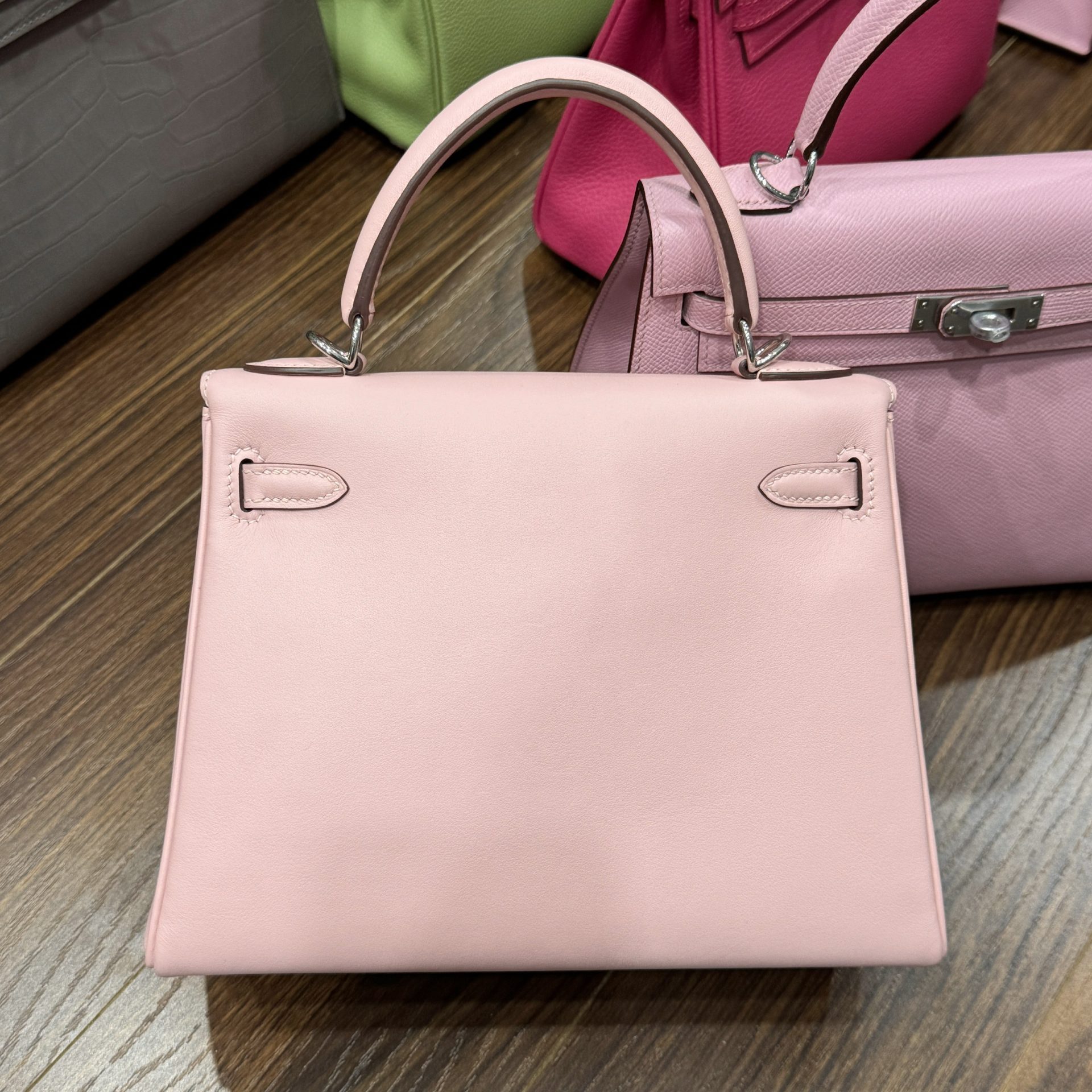 Hermes Kelly Handbag for Women, Light Pink, Silver Lock, Super Quality, Size 25cm