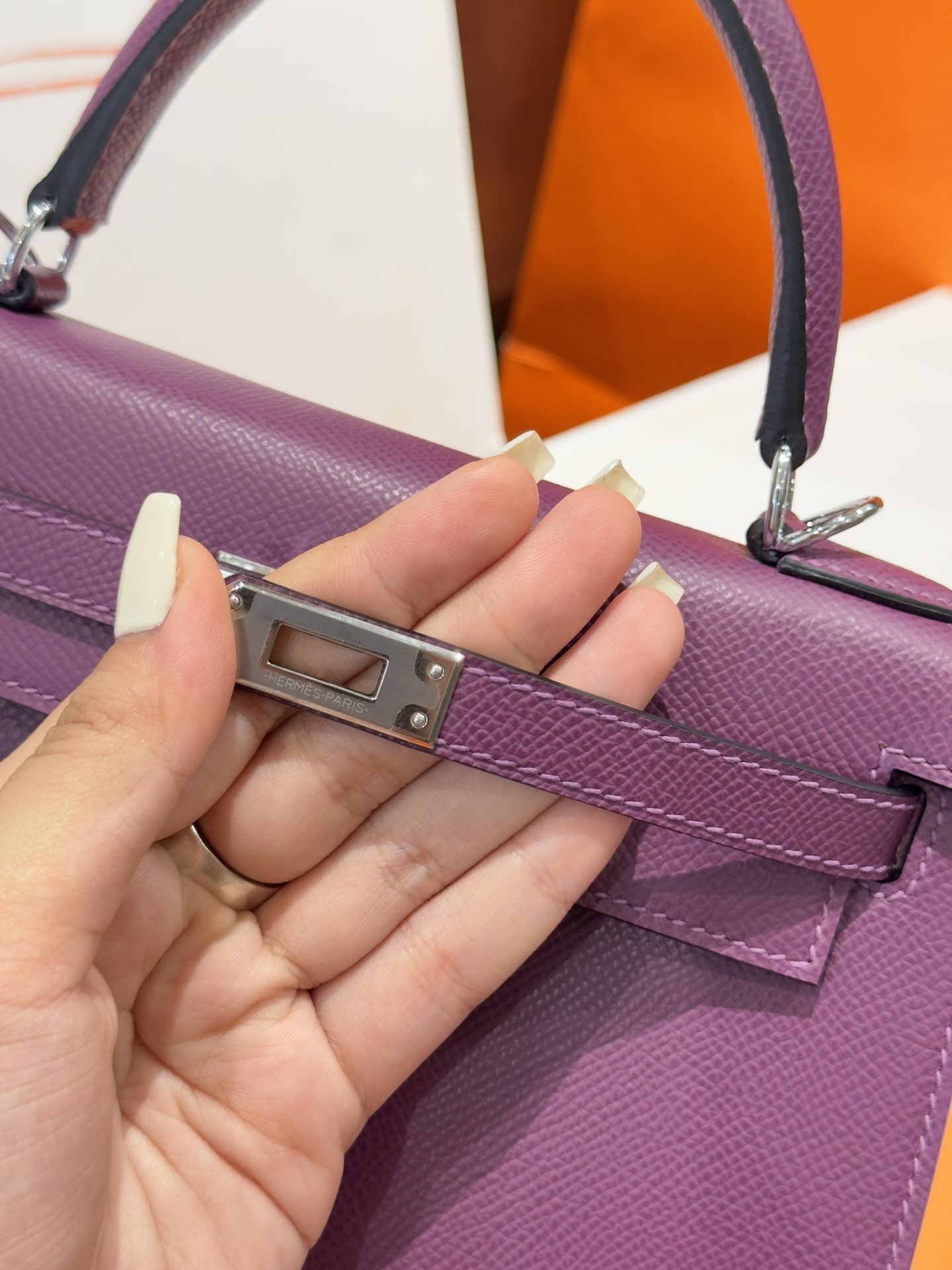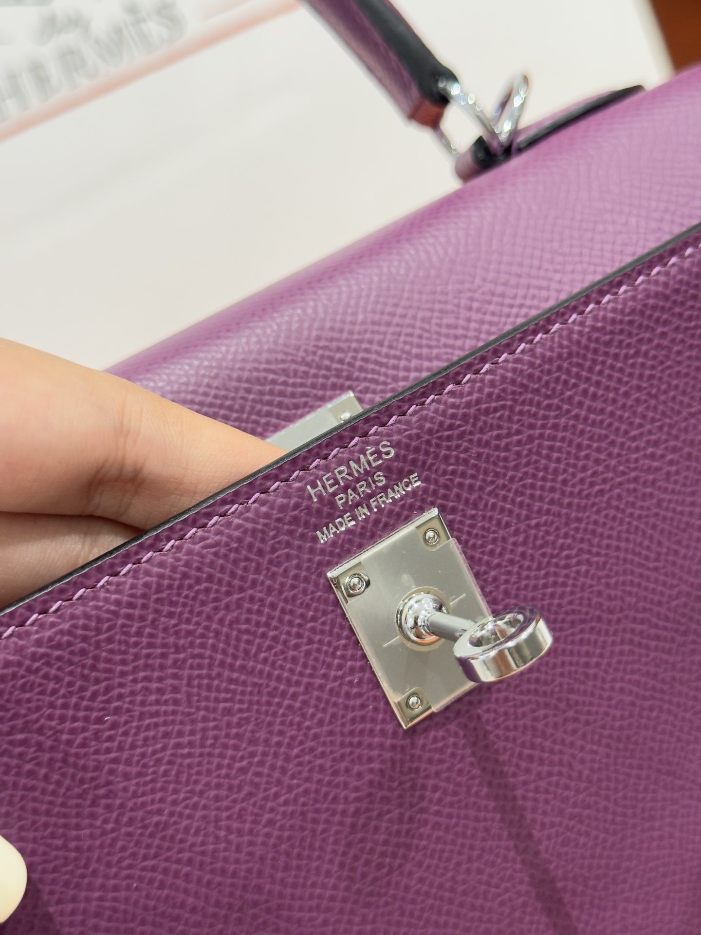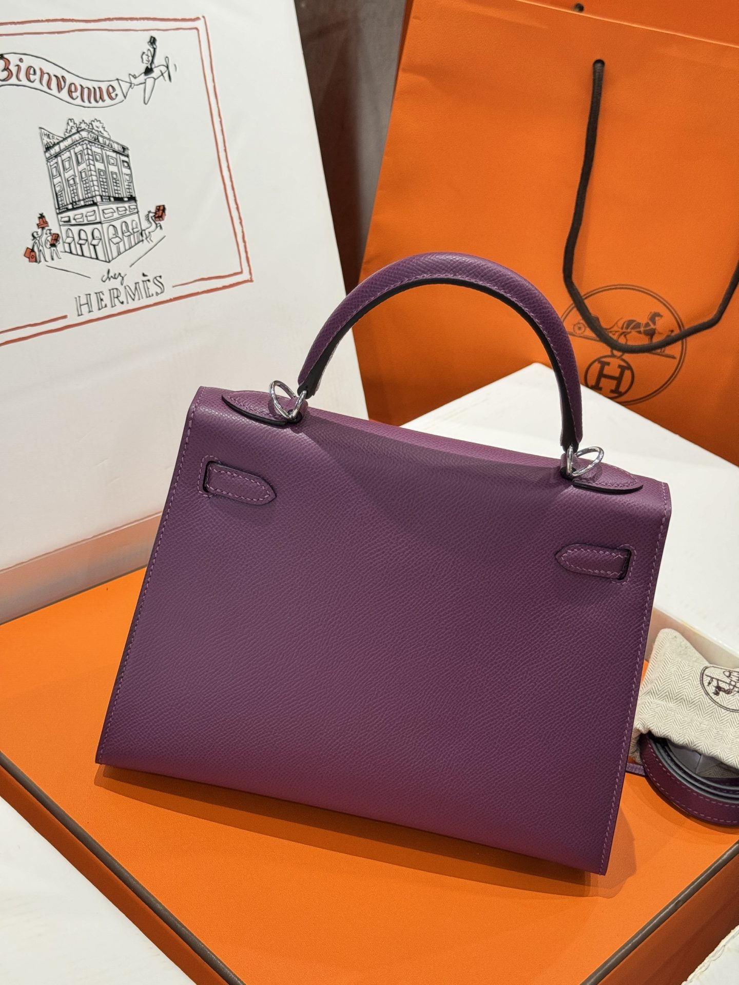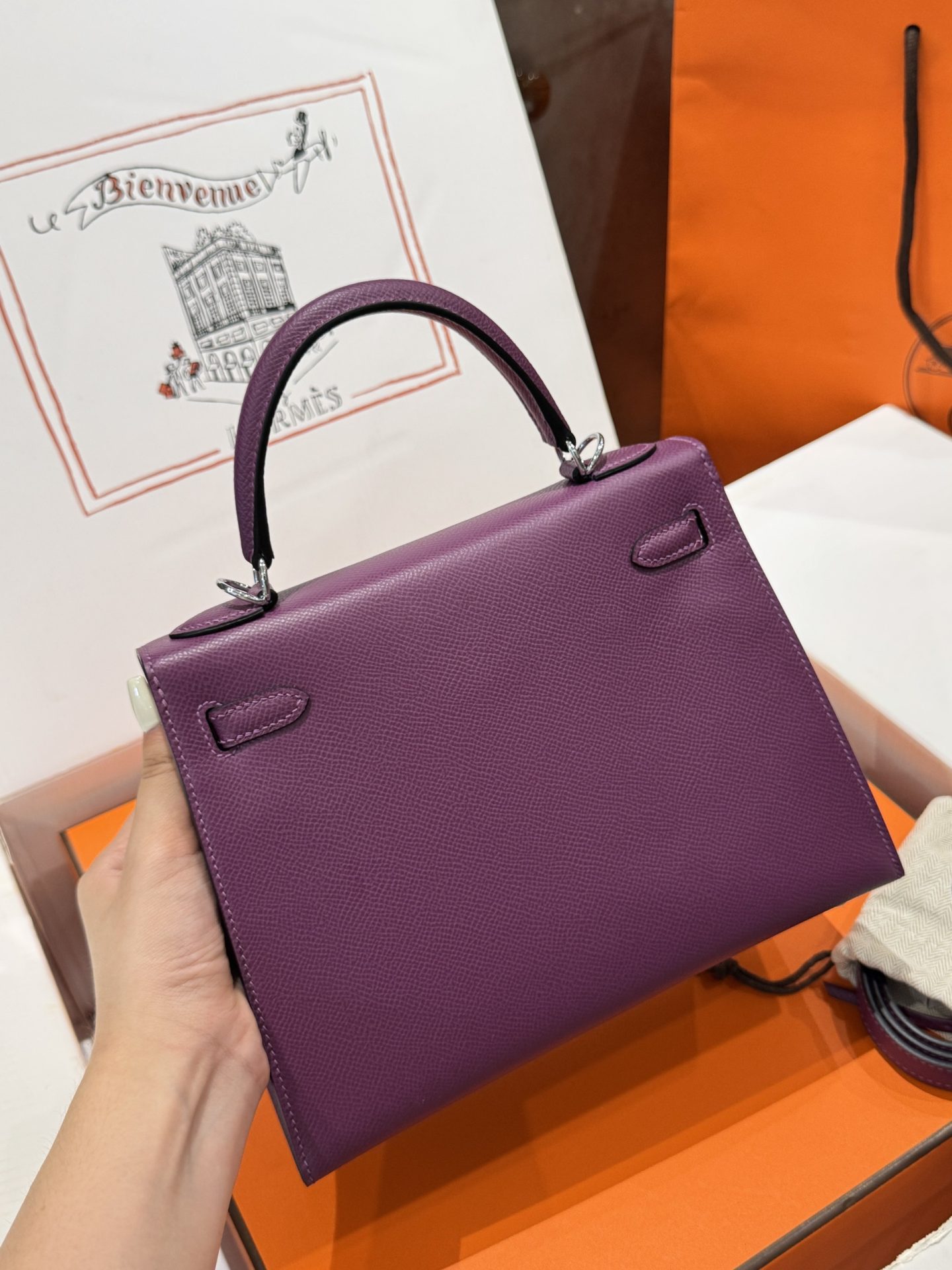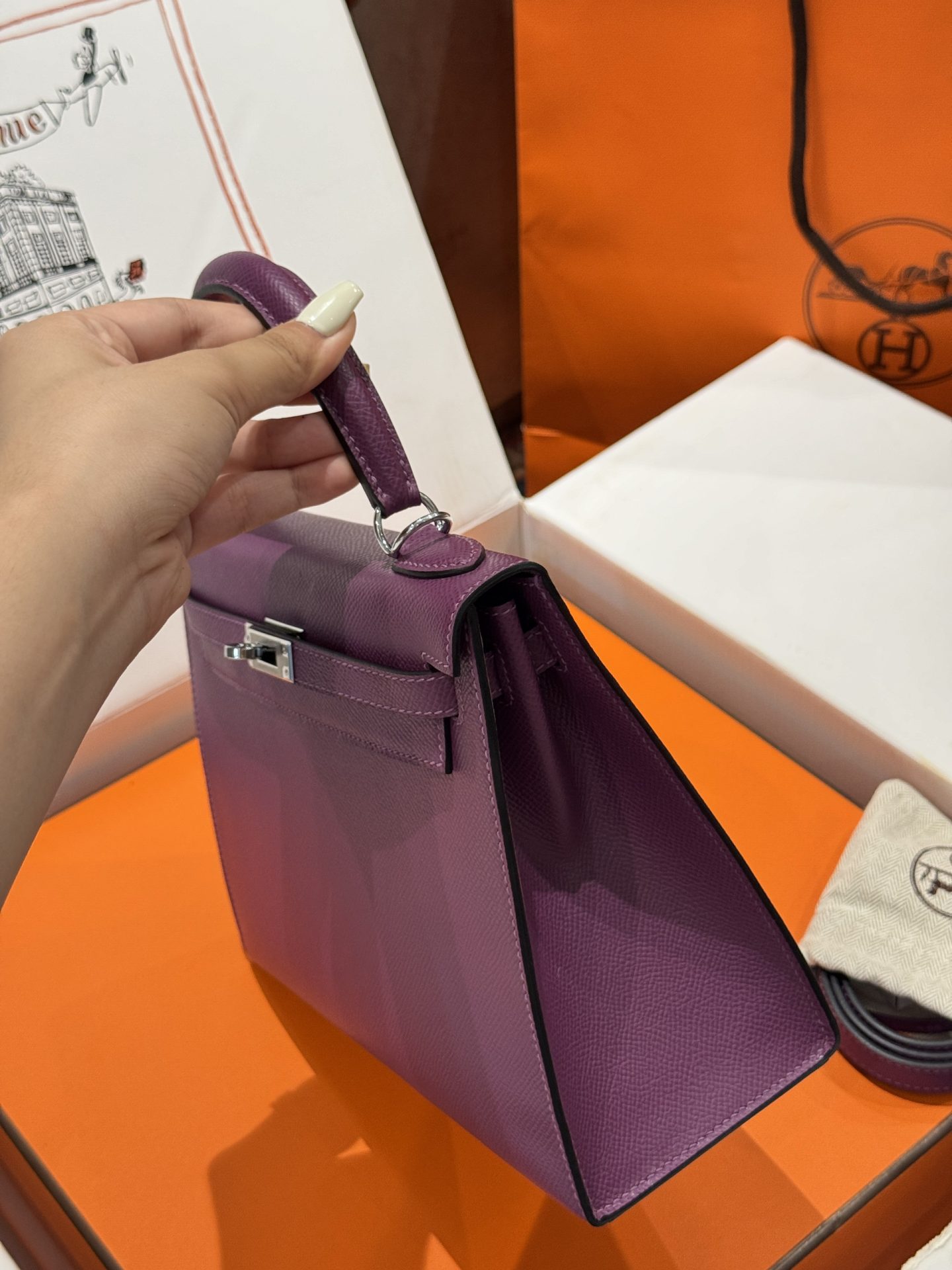 Hermes Kelly Like Auth Purple Women’s Handbag Silver Lock