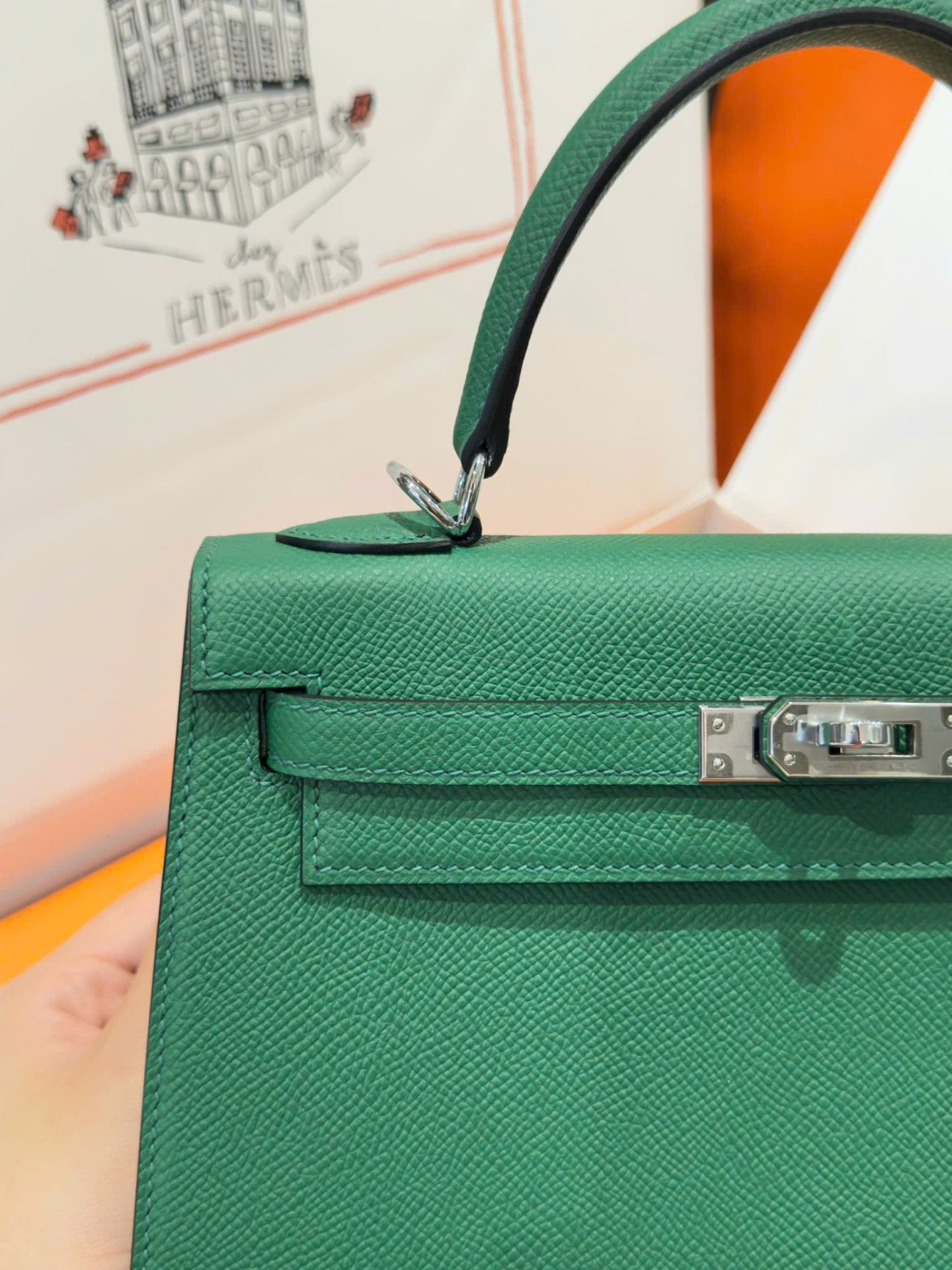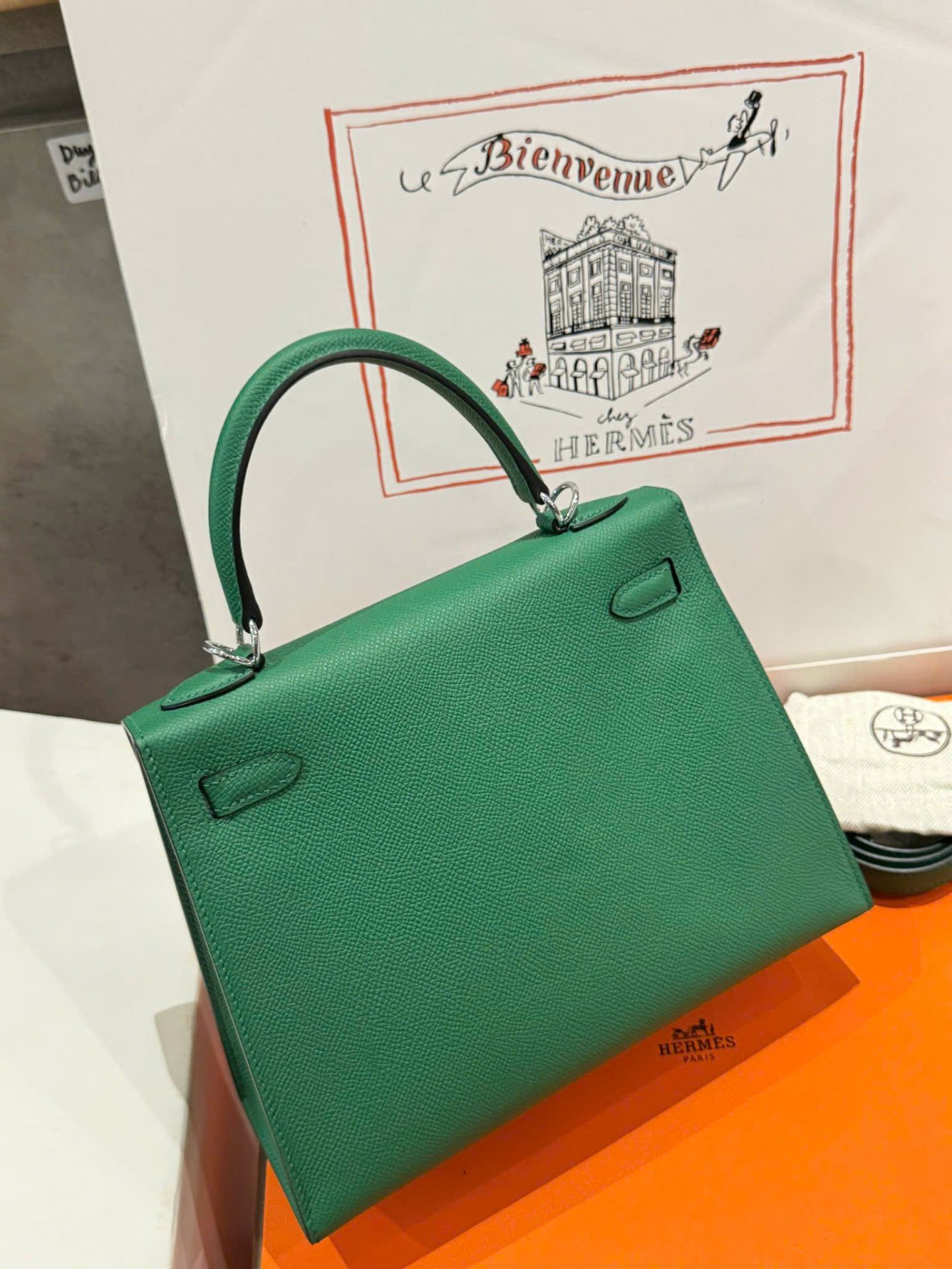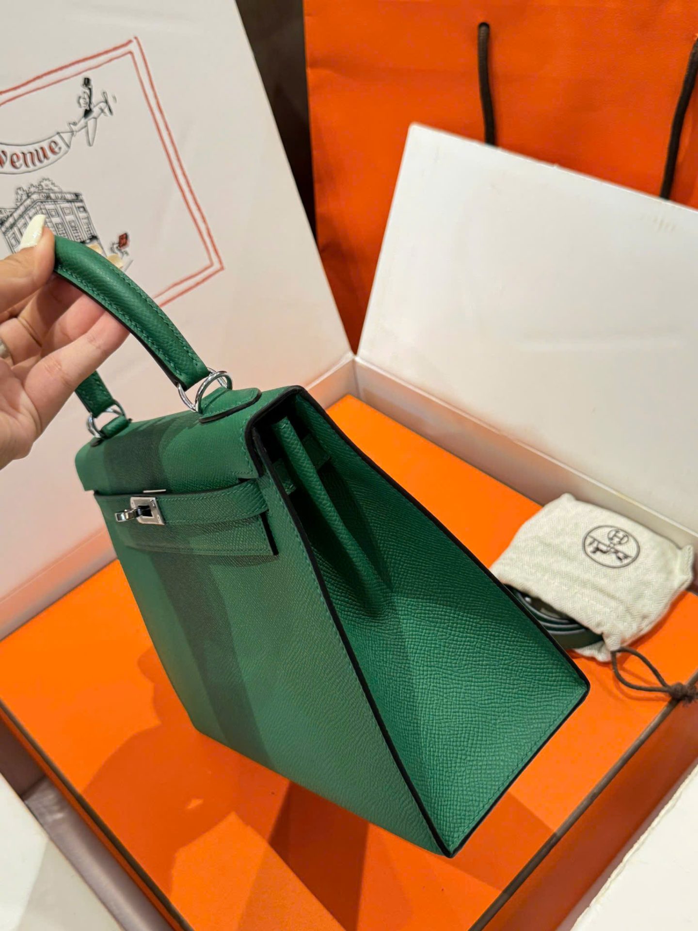 Hermes Kelly Like Auth Women’s Handbag Green White Lock
