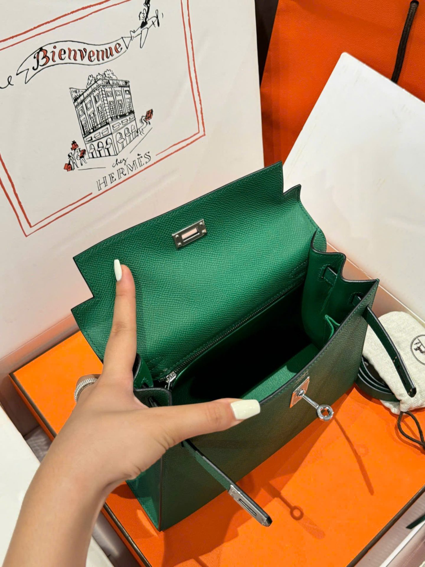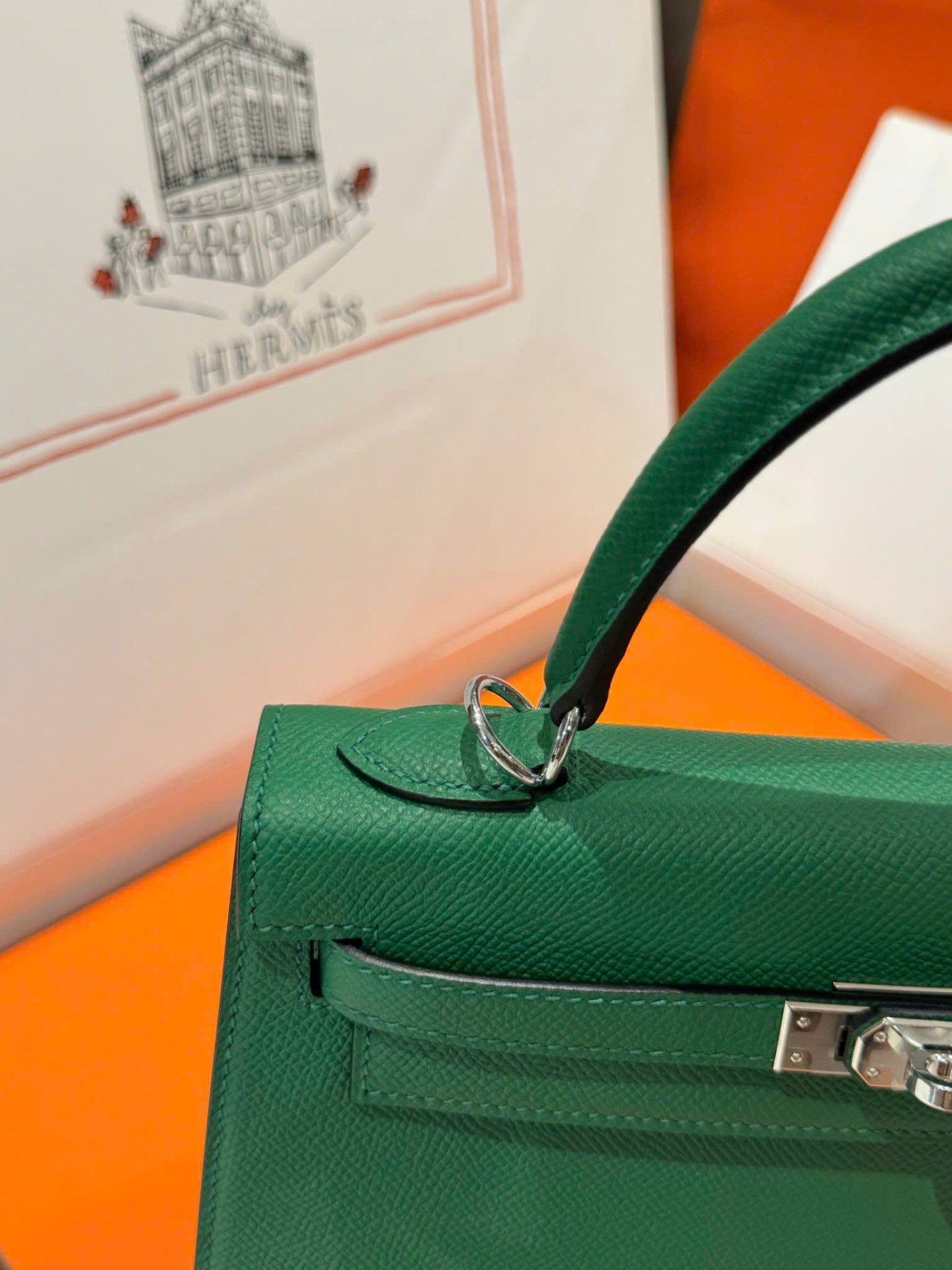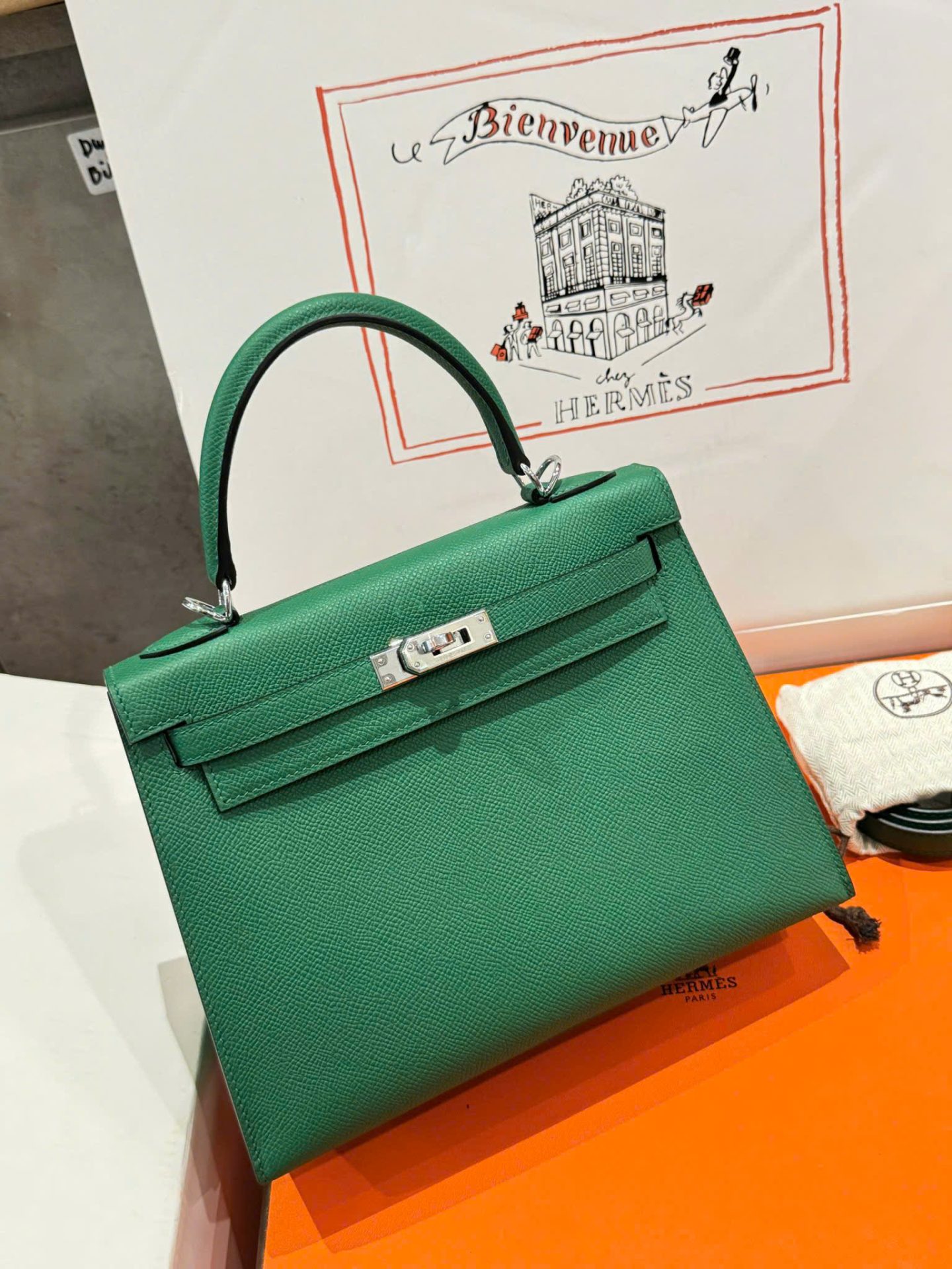 Hermes Kelly Like Auth Women’s Handbag Green White Lock