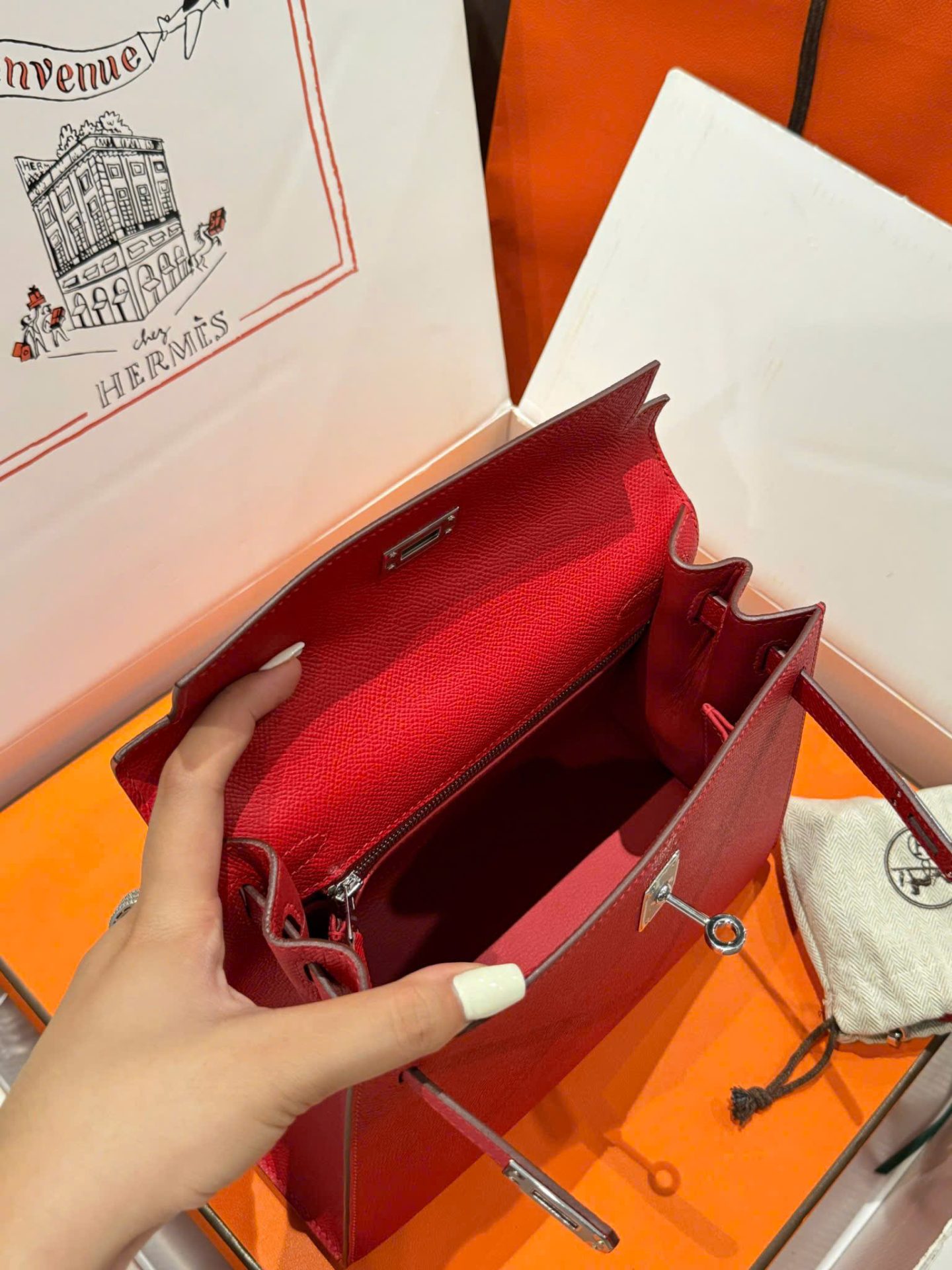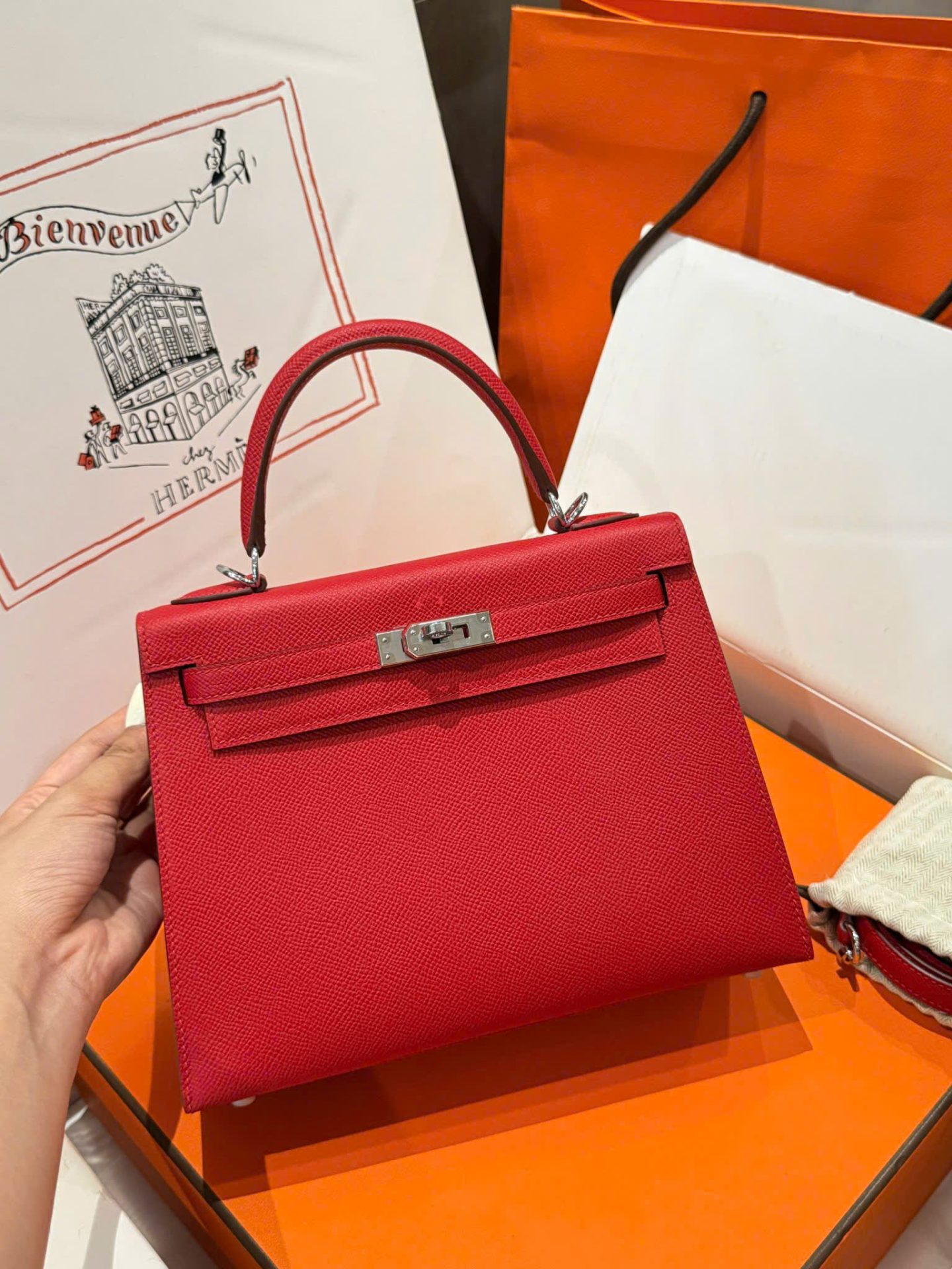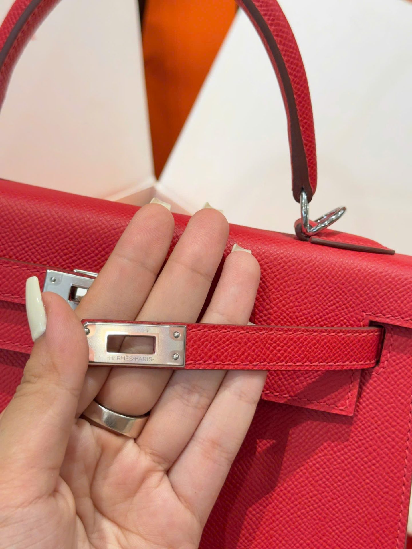Hermes Kelly Like Auth Women’s Handbag Red White Lock