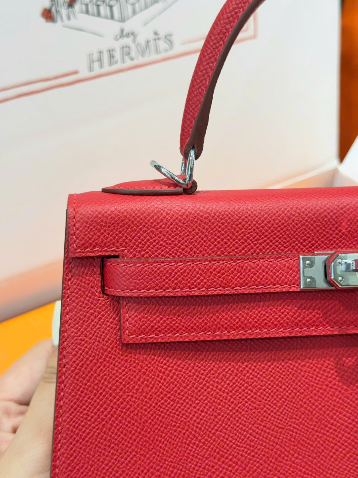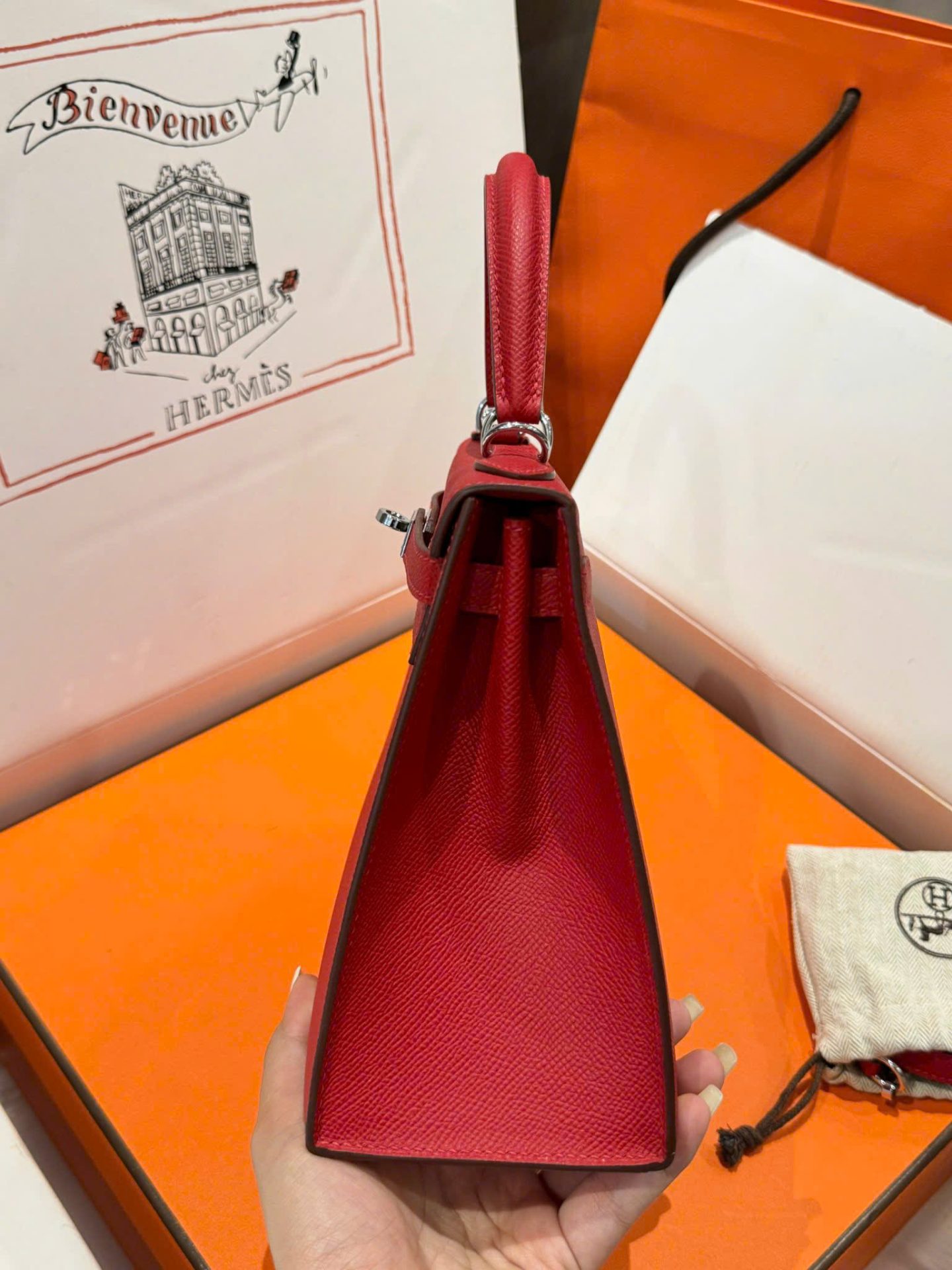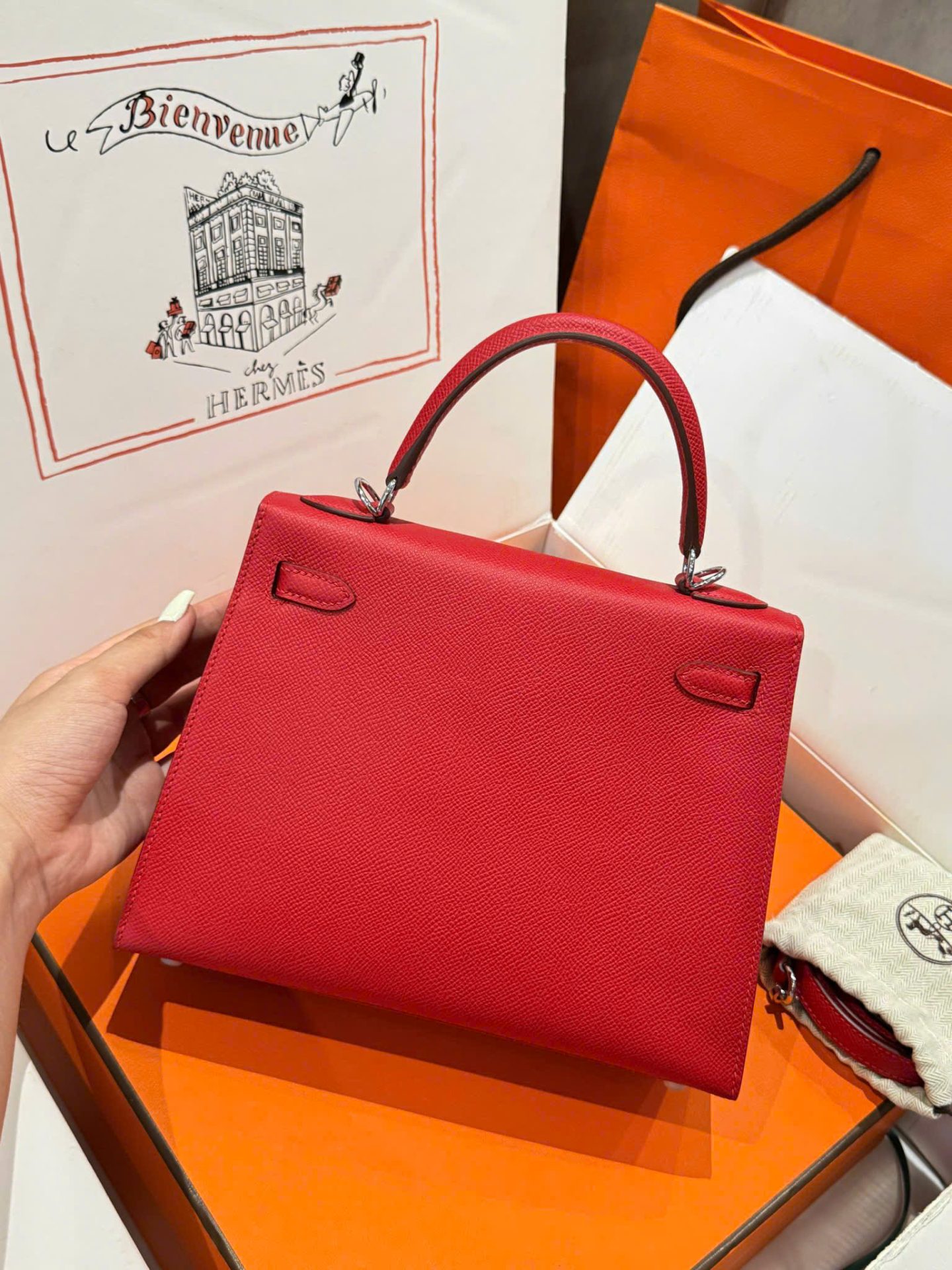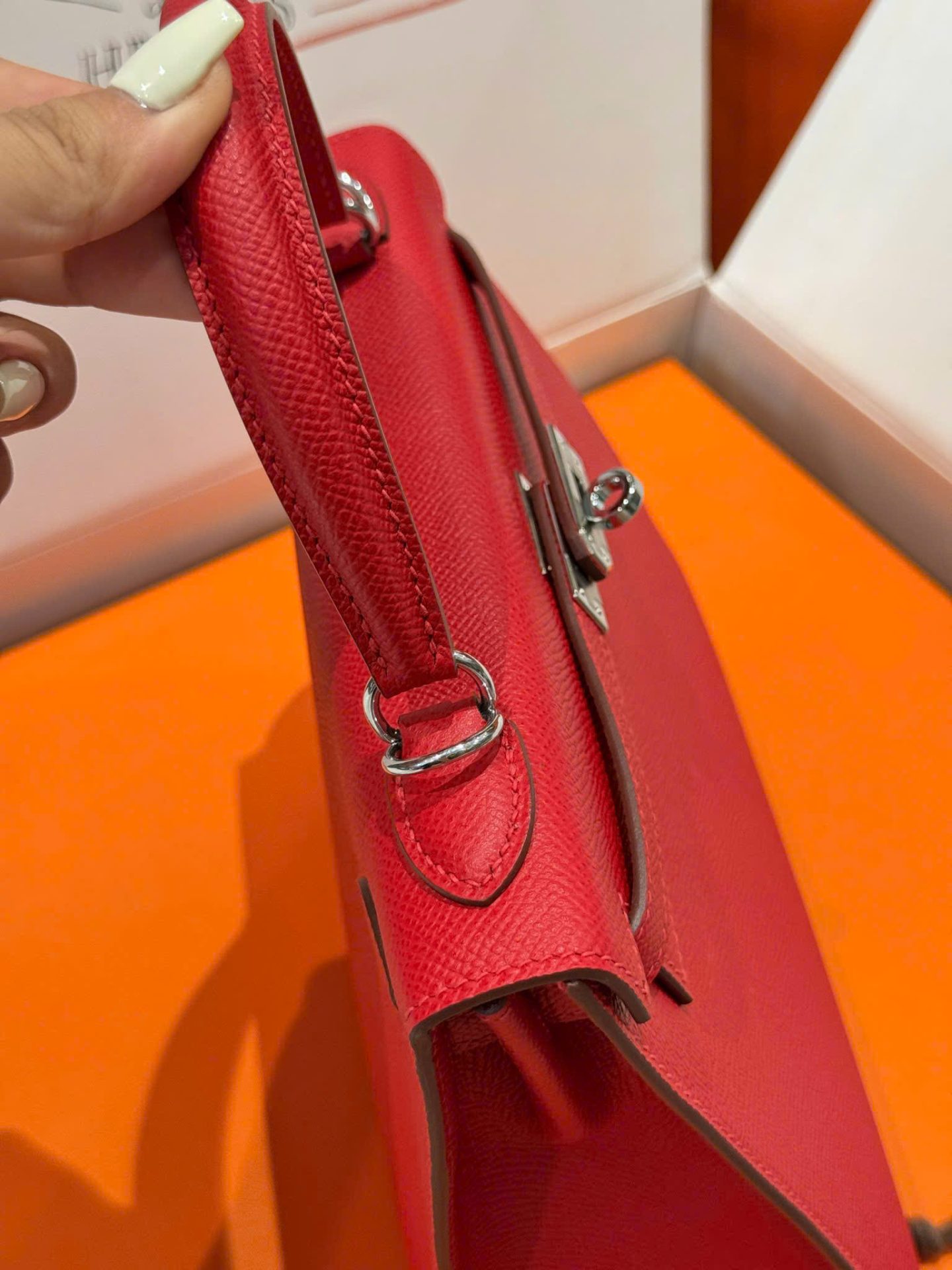Hermes Kelly Like Auth Women’s Handbag Red White Lock