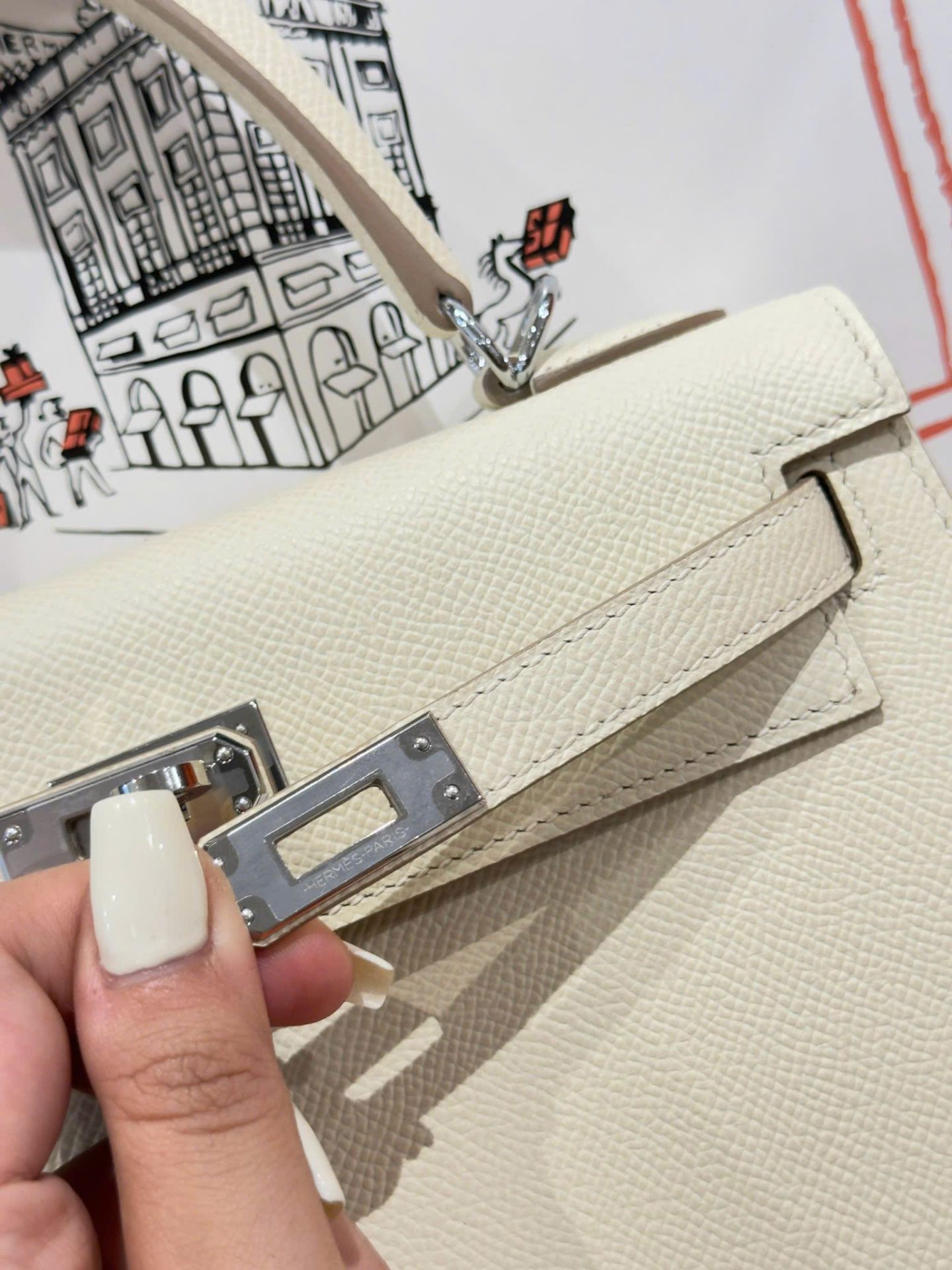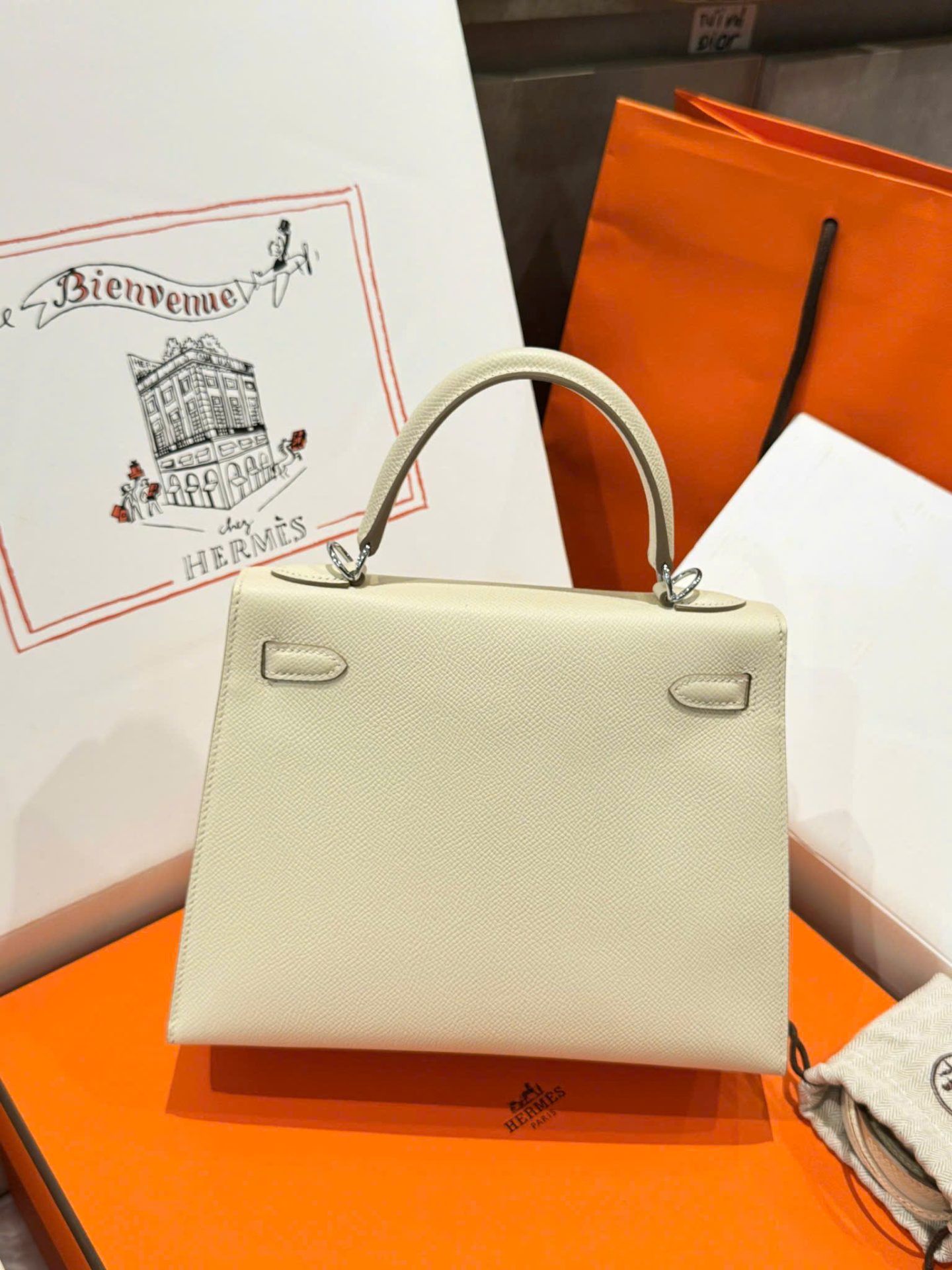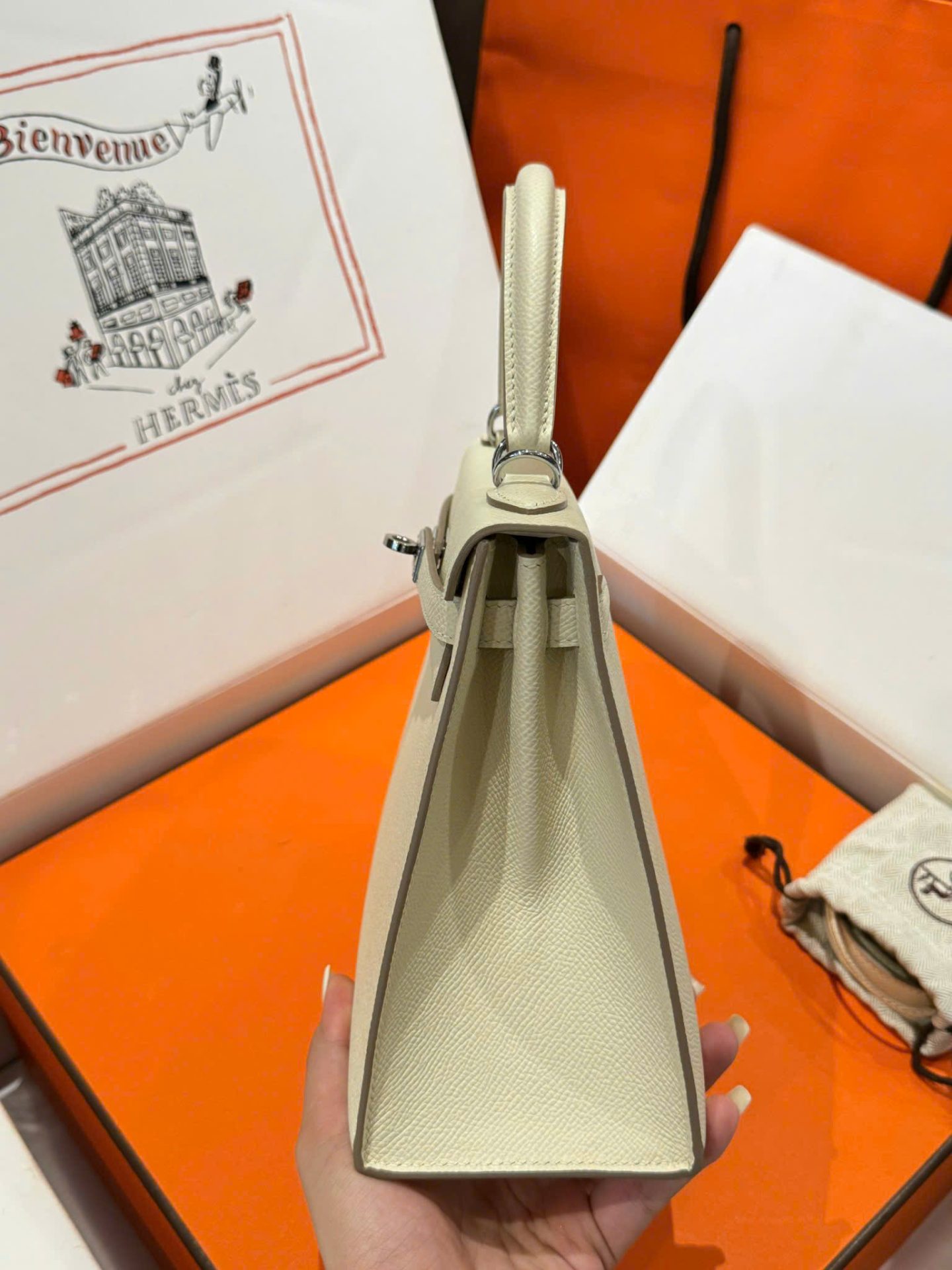 Hermes Kelly Rep 11 High-End Women’s Handbag Cream White White Lock 25cm