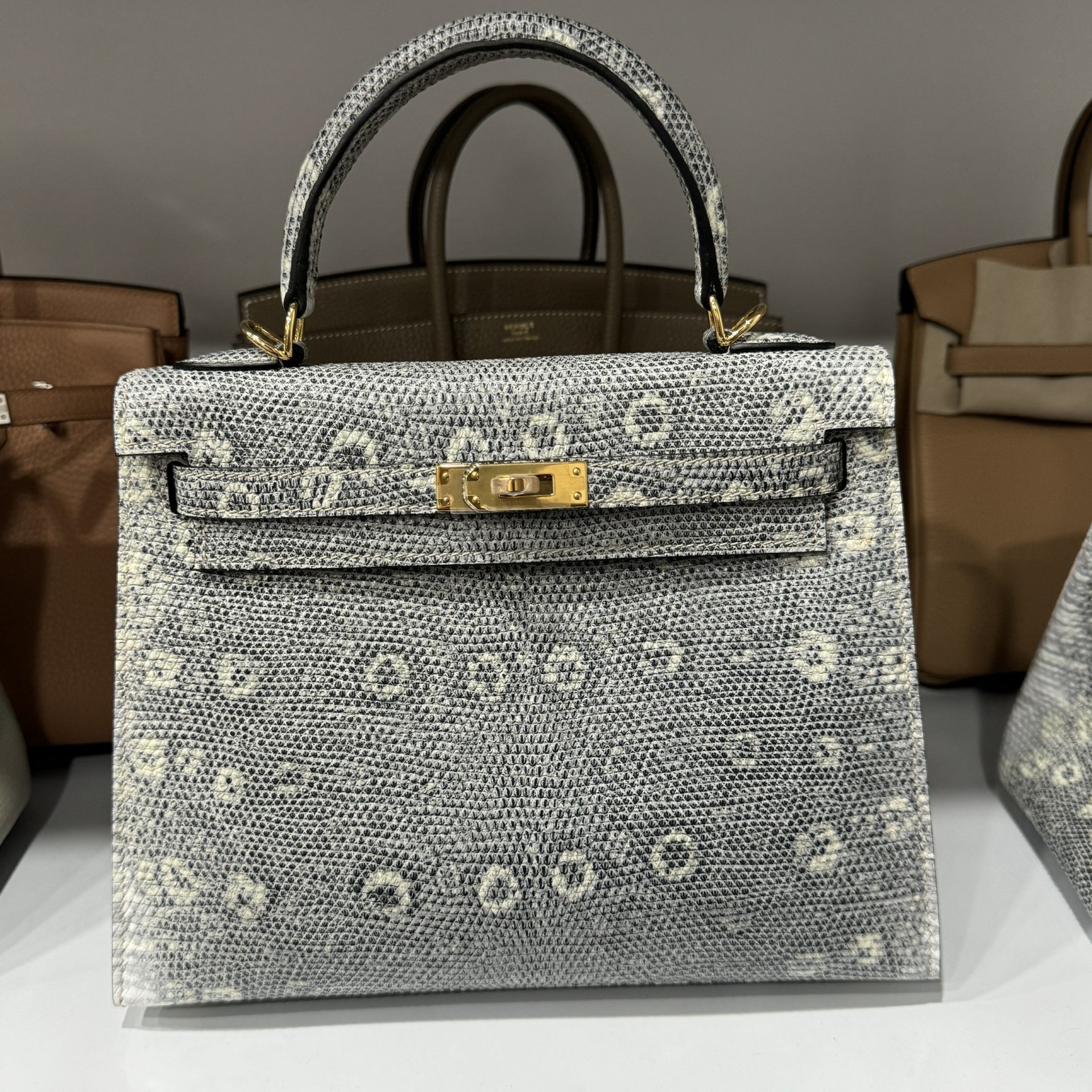 Hermes Kelly Women’s Handbag Lizard Skin Yellow Lock Size 28cm