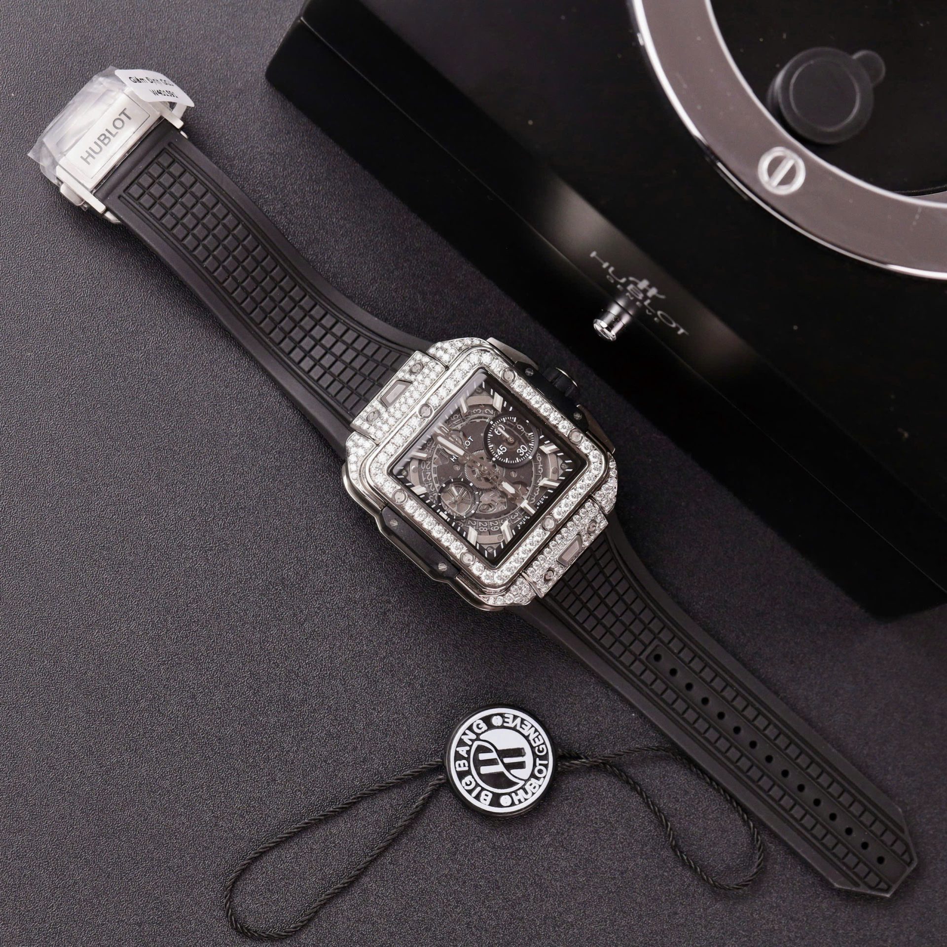Hublot Square Bang Unico Titanium Imitation Watches Full Dimonds Moissanite Custom BBF Factory 42mm