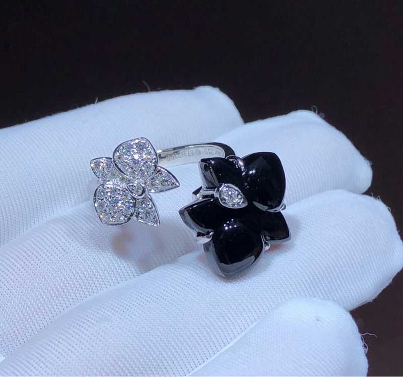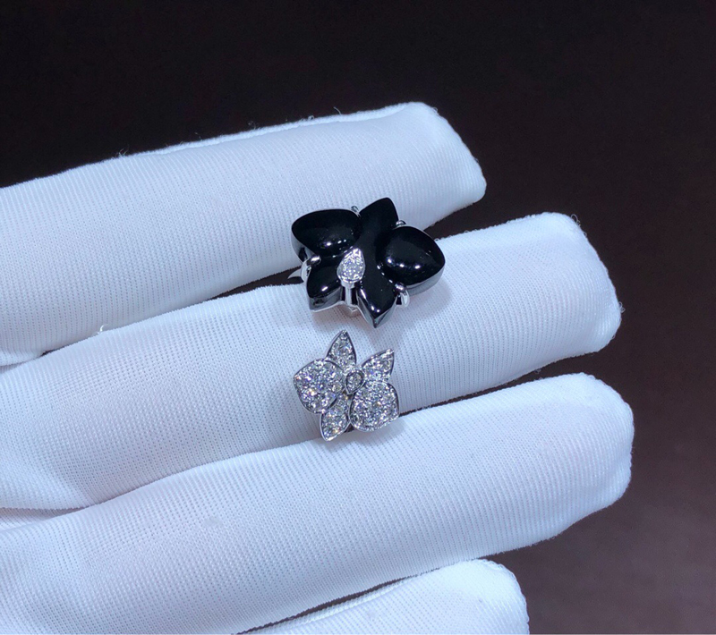 Nhẫn Caresse D’Orchidees Par Cartier Chế Tác Mã Não Kim Cương Vàng Trắng 18K