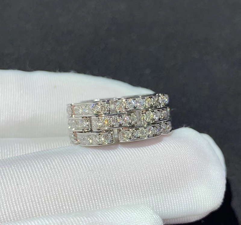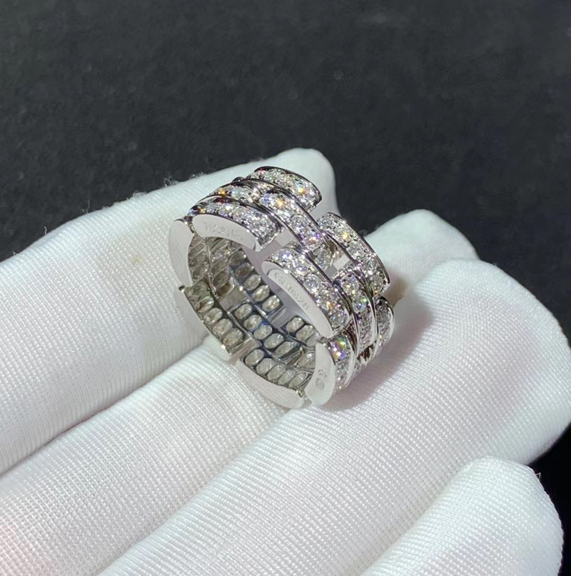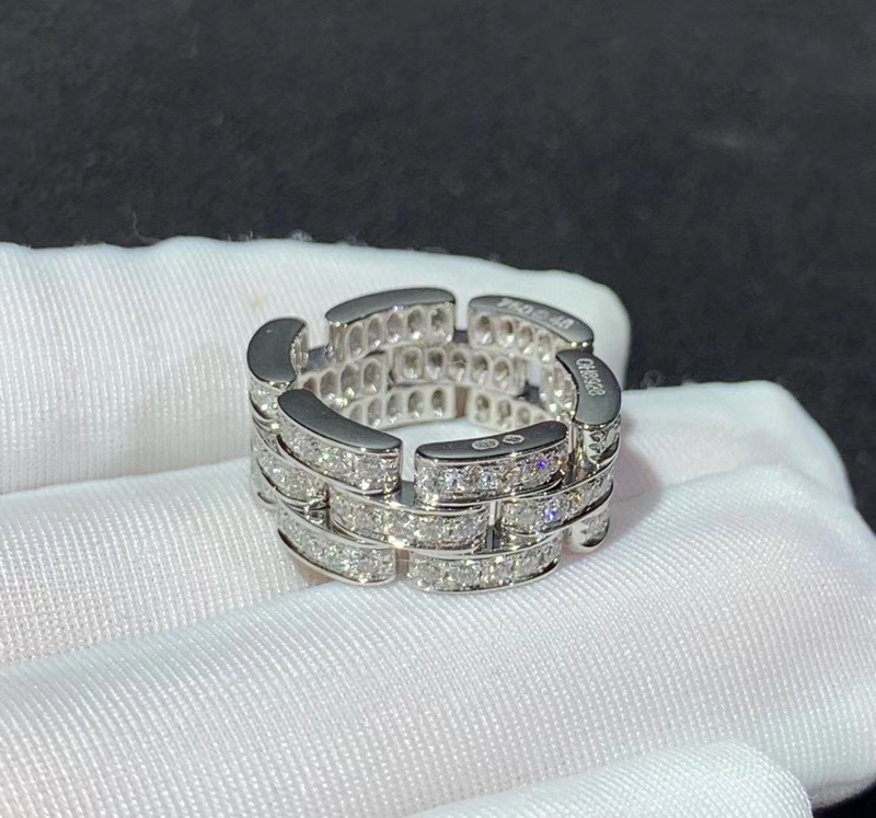Nhẫn Cartier Maillon De Pant Chế Tác Vàng Trắng 18K Đính Kim Cương Tự Nhiên