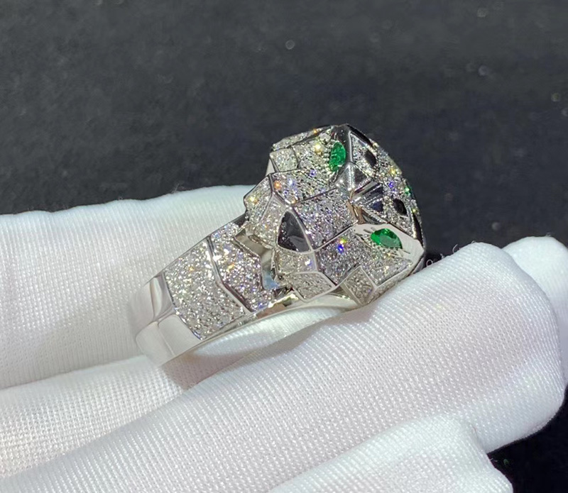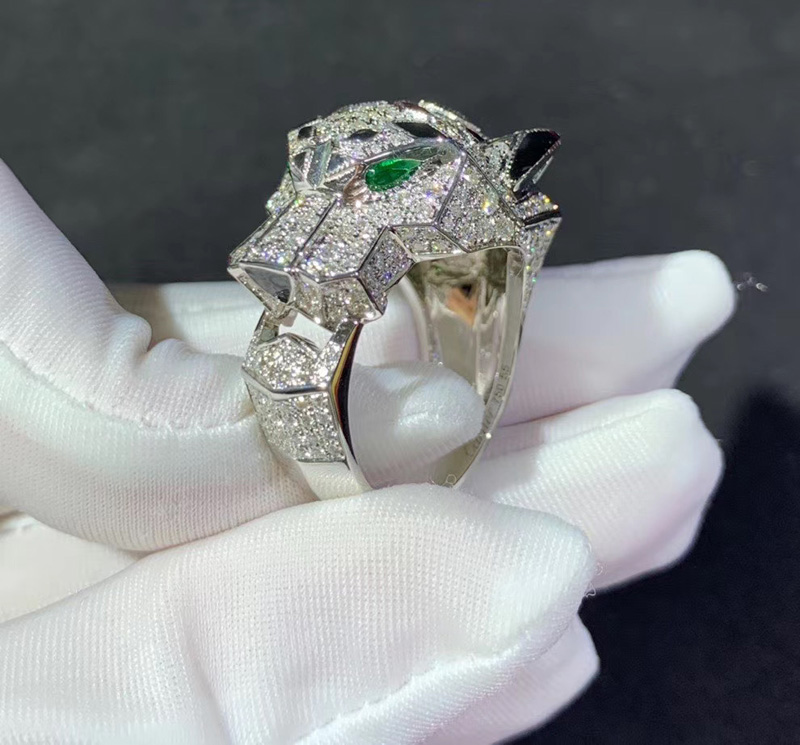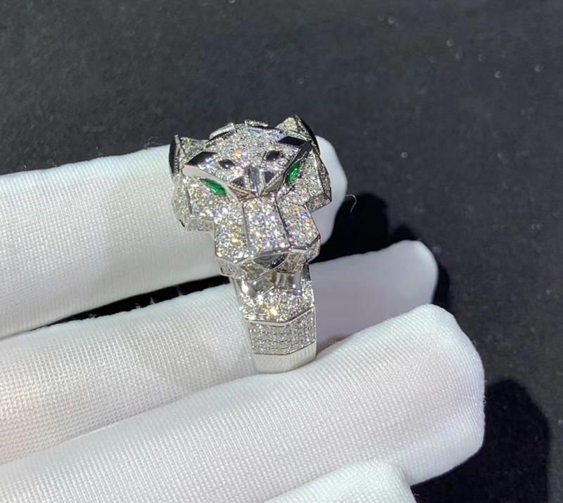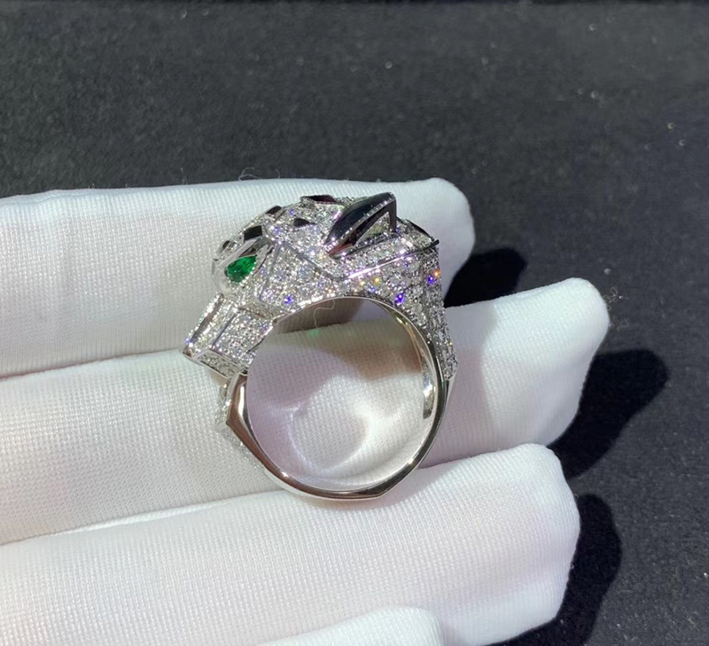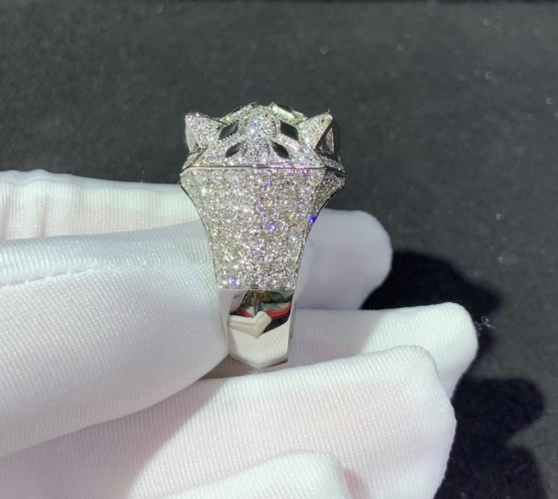 Nhẫn Panthère De Cartier Chế Tác Mã Não Kim Cương Tự Nhiên Vàng Trắng 18K