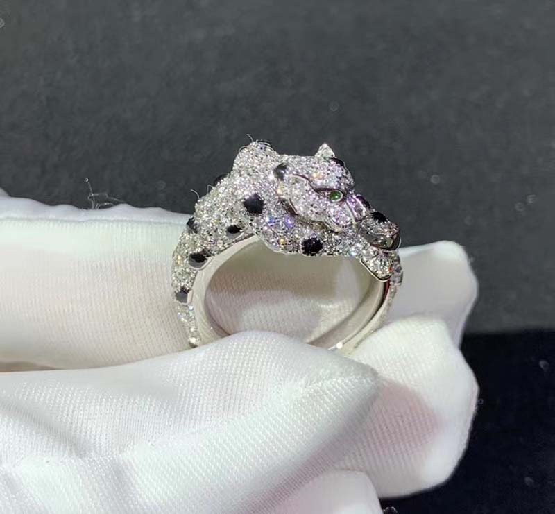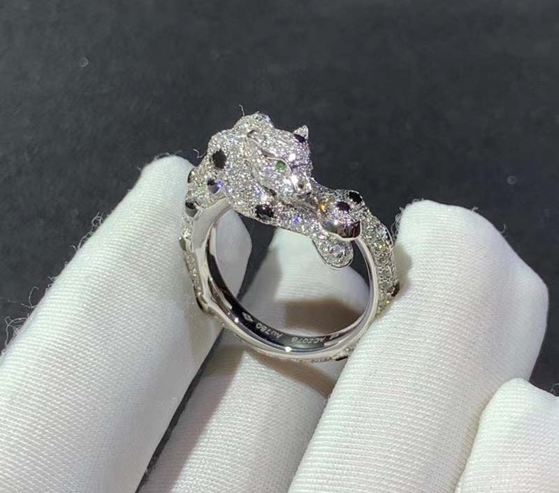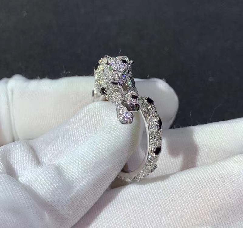 Nhẫn Panthère De Cartier Vàng Trắng 18K Kim Cương Tự Nhiên Tuỳ Chỉnh