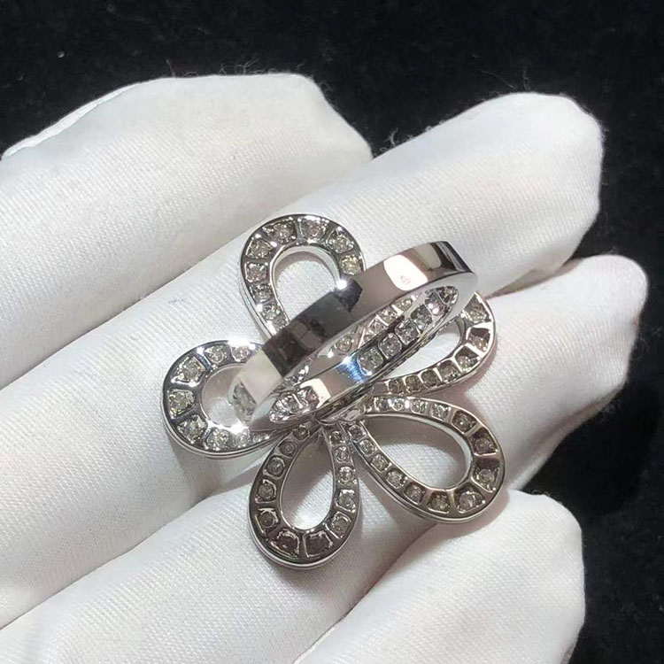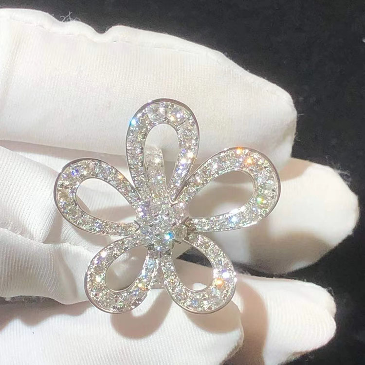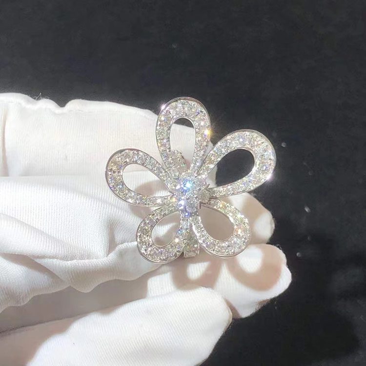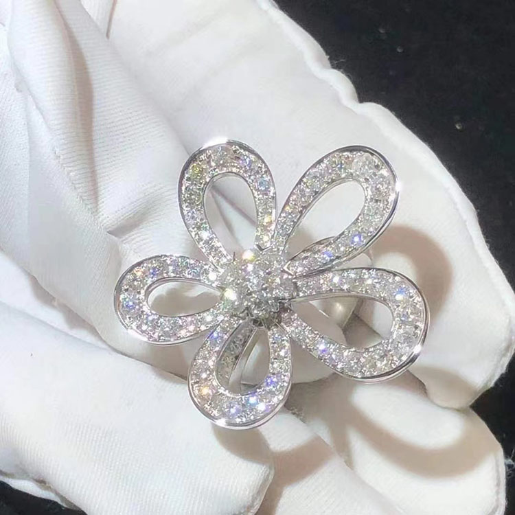 Nhẫn Van Cleef & Arpels Flowerlace Chế Tác Kim Cương Tự Nhiên Vàng Trắng 18K