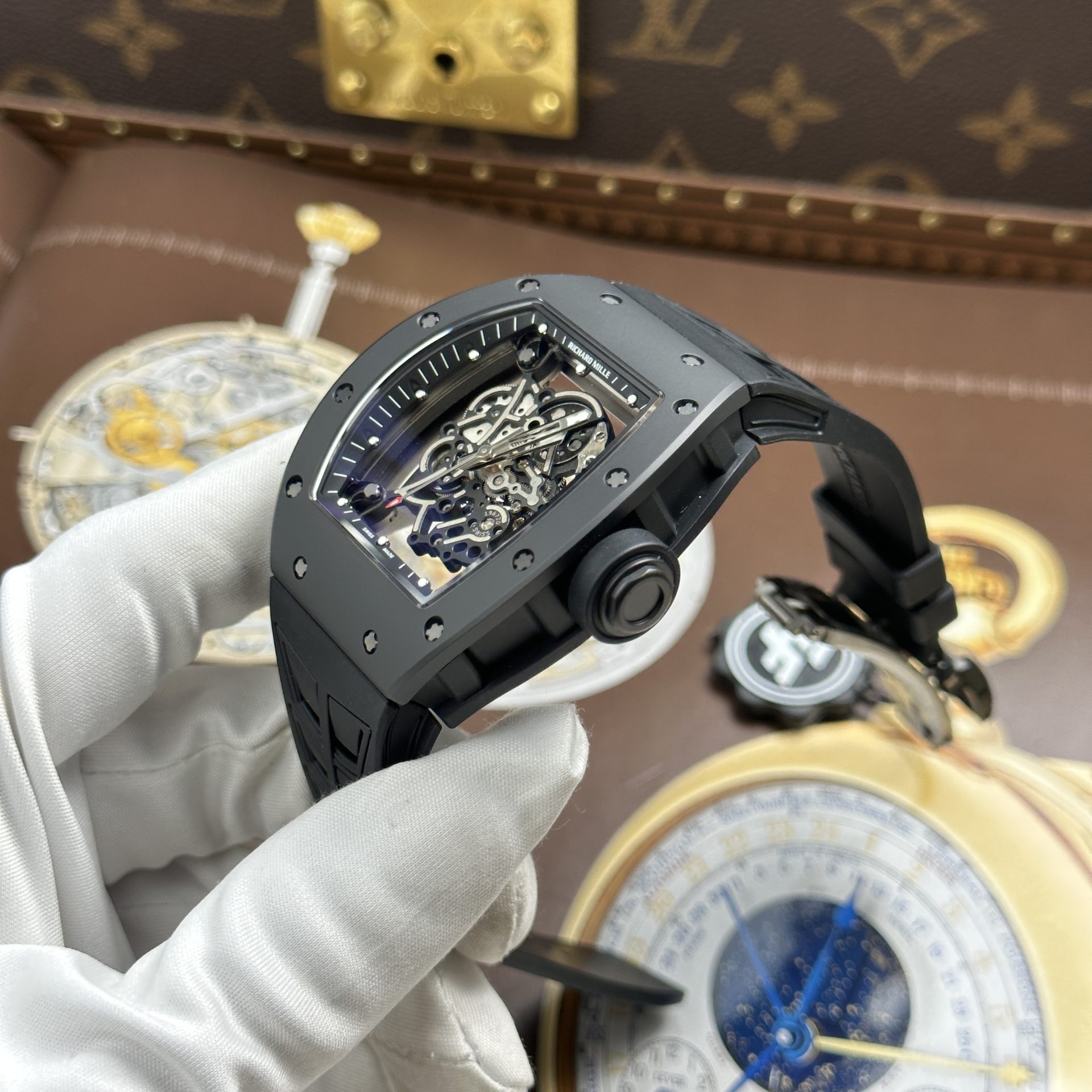 Richard Mille RM055 Black Imitation Watches Case Ceramic Rubber Strap ZF 49.9×42.7mm