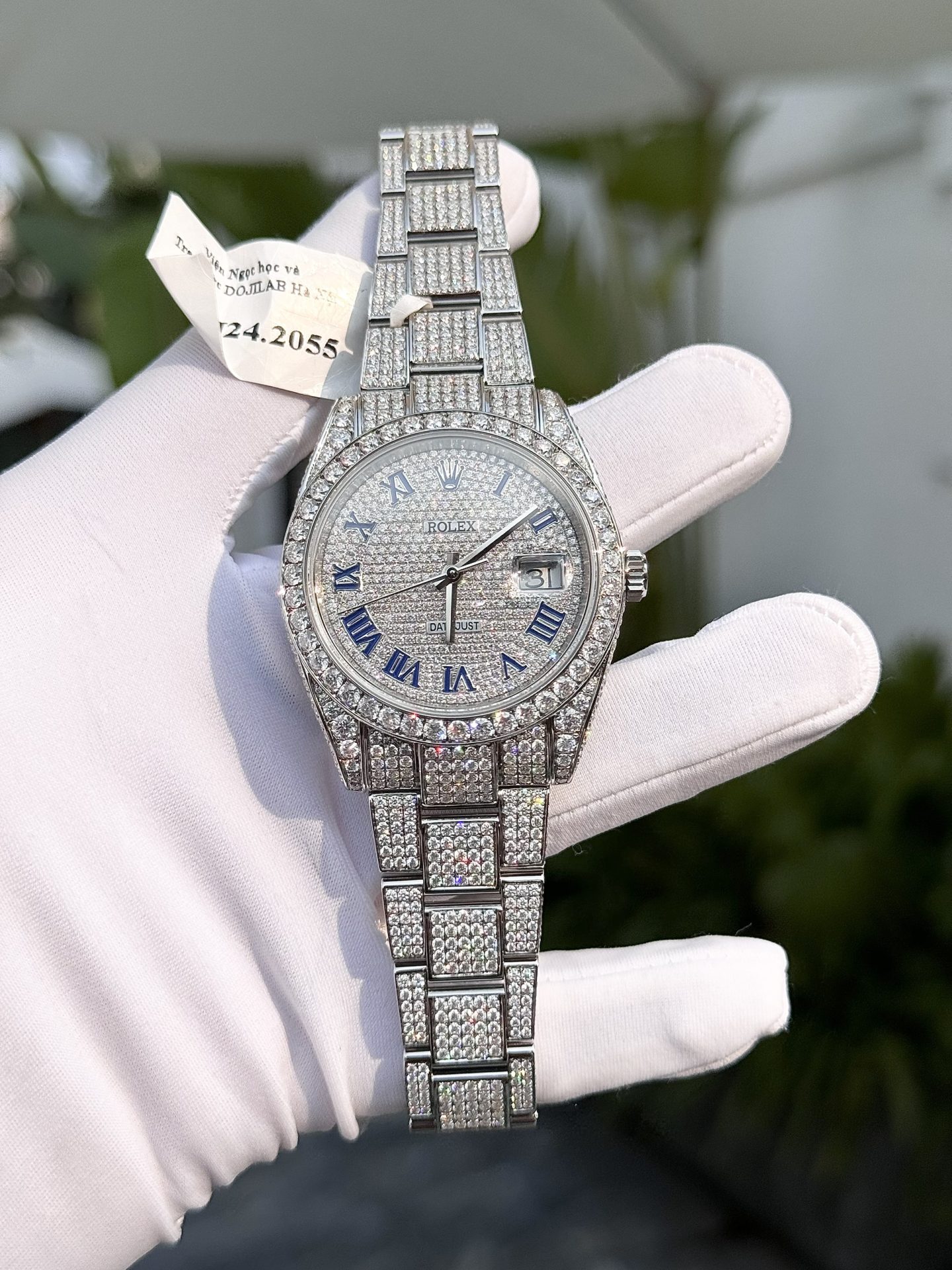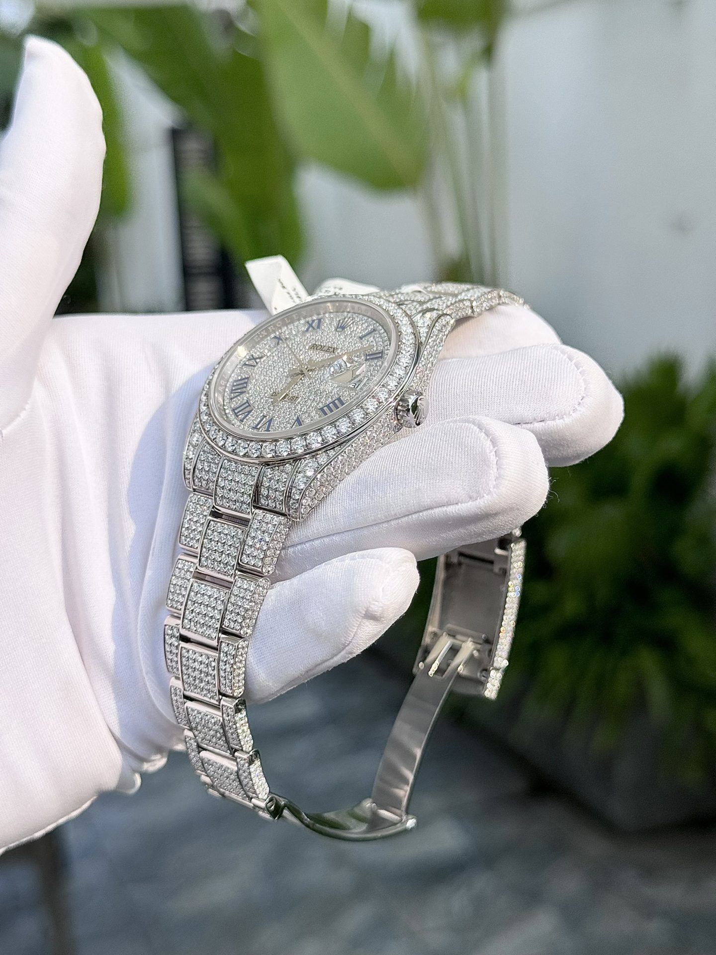 Rolex Best Replica Watch DateJust Full Moissanite Diamonds Custom 41mm