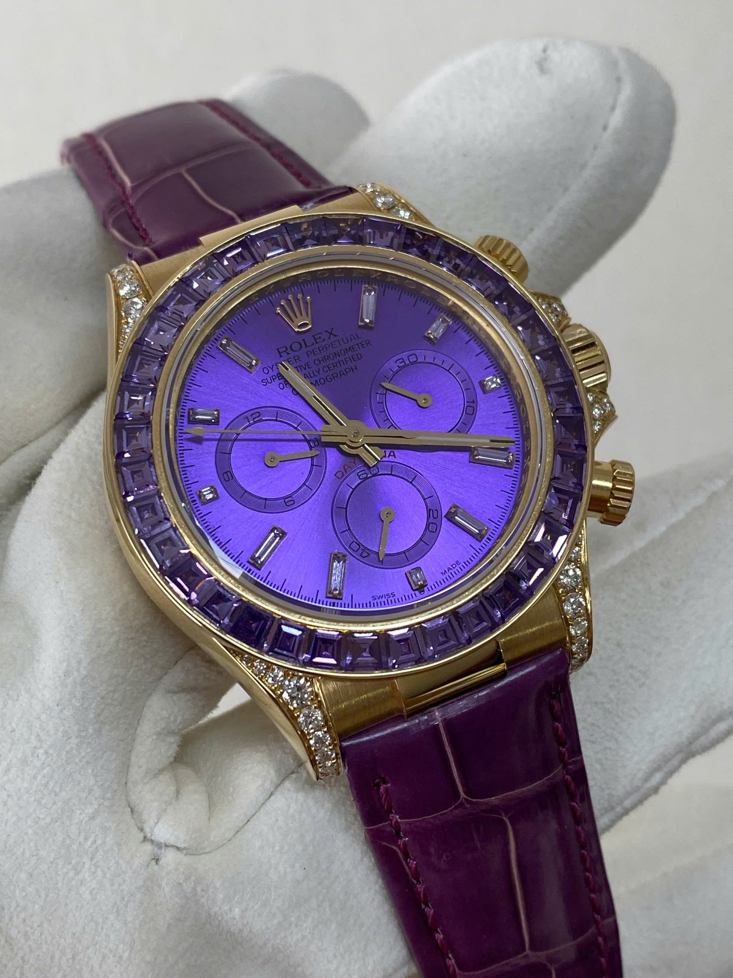 Rolex Cosmograph Daytona Purple Custom 18K Solid Gold + Natural Gemstone Watch 40mm