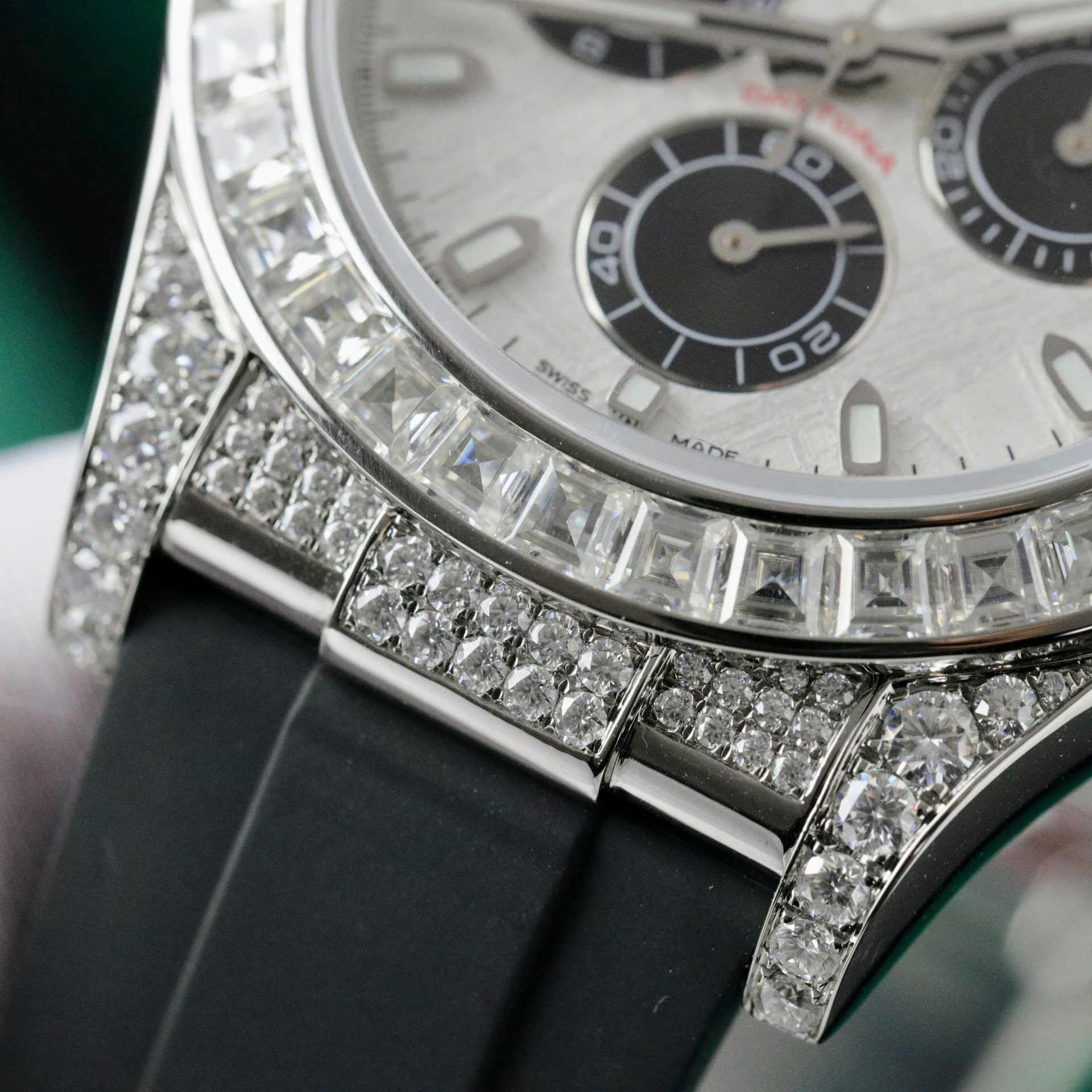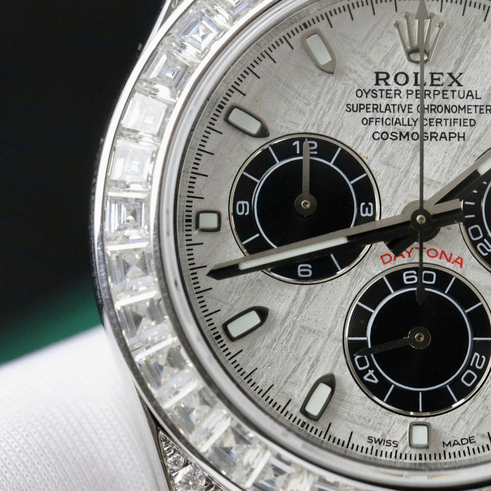 Rolex Daytona Replica Watch Dial Meteorite Custom Diamonds Moissanite Baguette 40mm