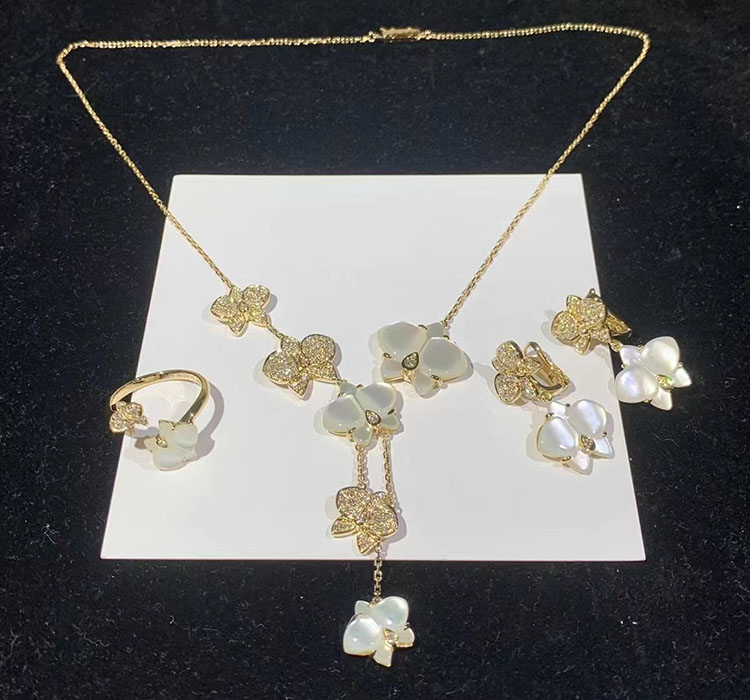 Set Vòng Cổ Bông Tai Và Nhẫn Cartier Chế Tác Kim Cương Tự Nhiên Vàng 18K