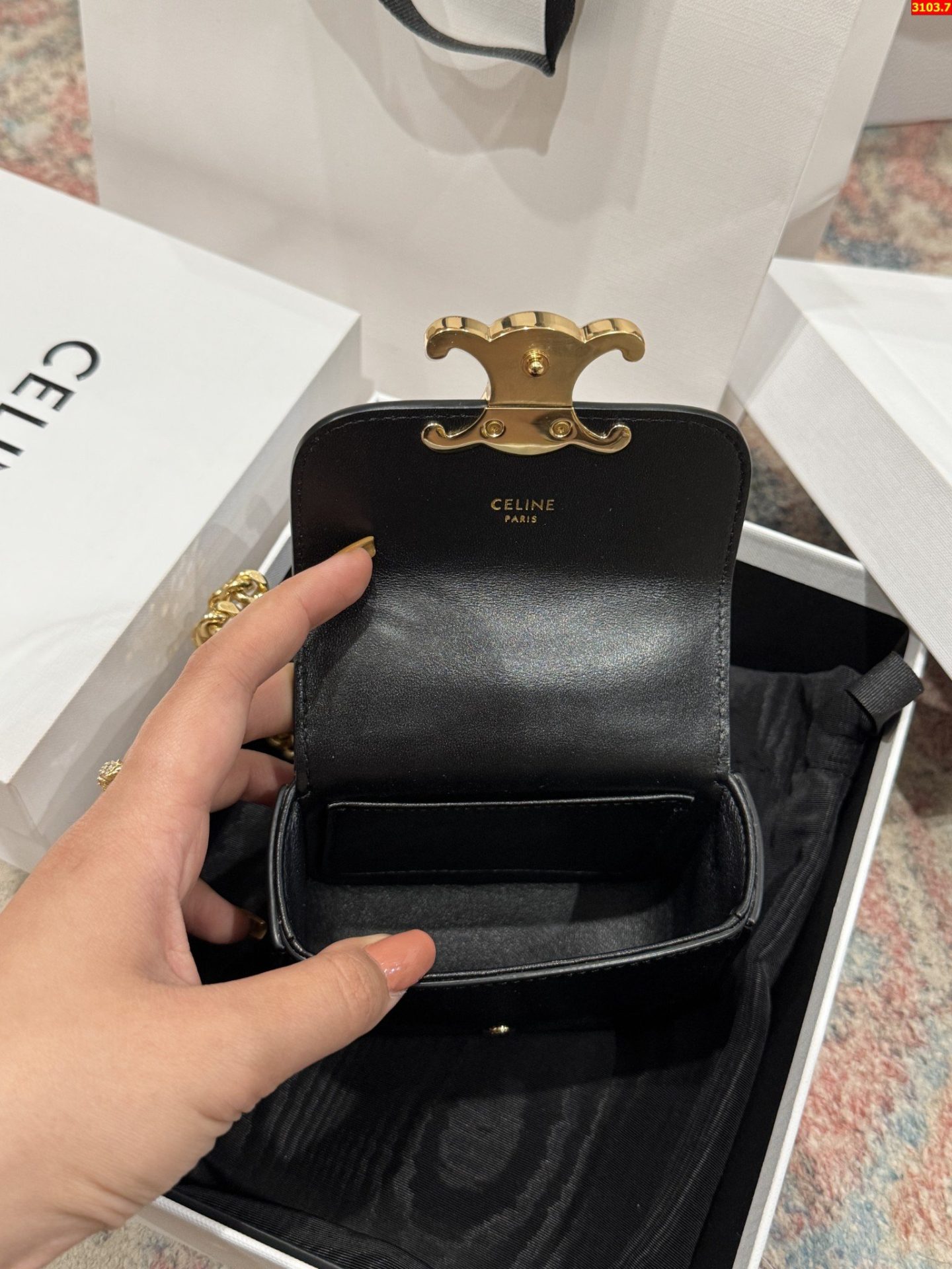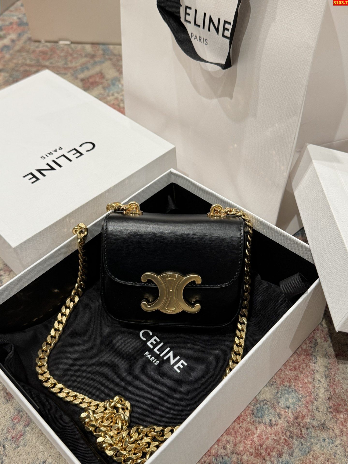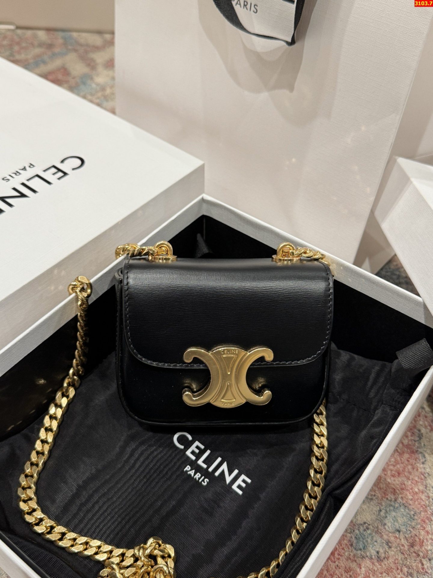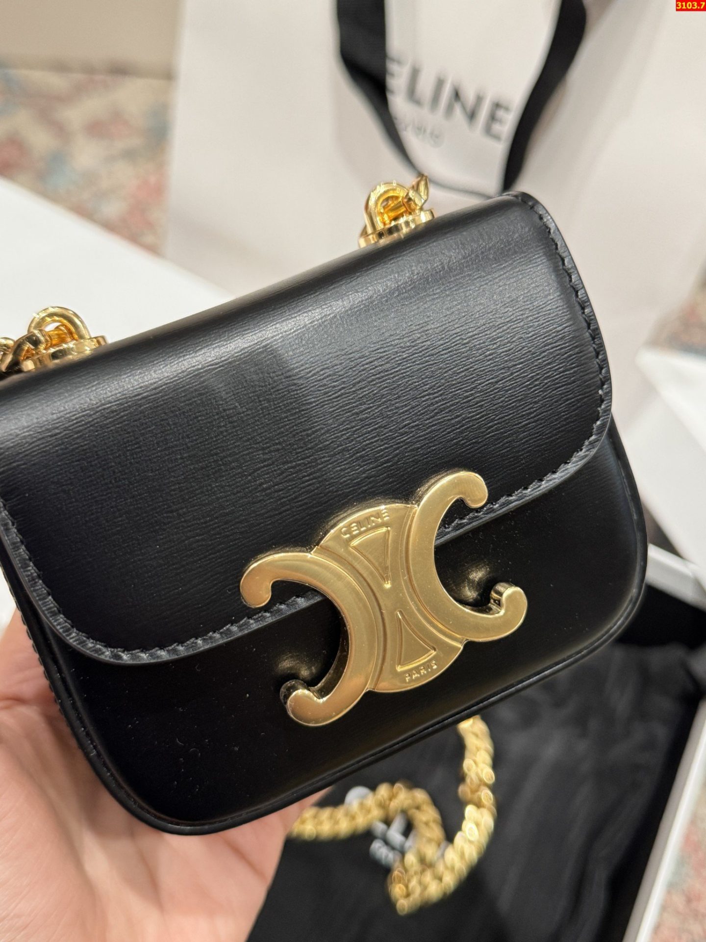 Túi Celine Mini Chain Claude Siêu Cấp Màu Đen Khoá Vàng 11x8x4cm
