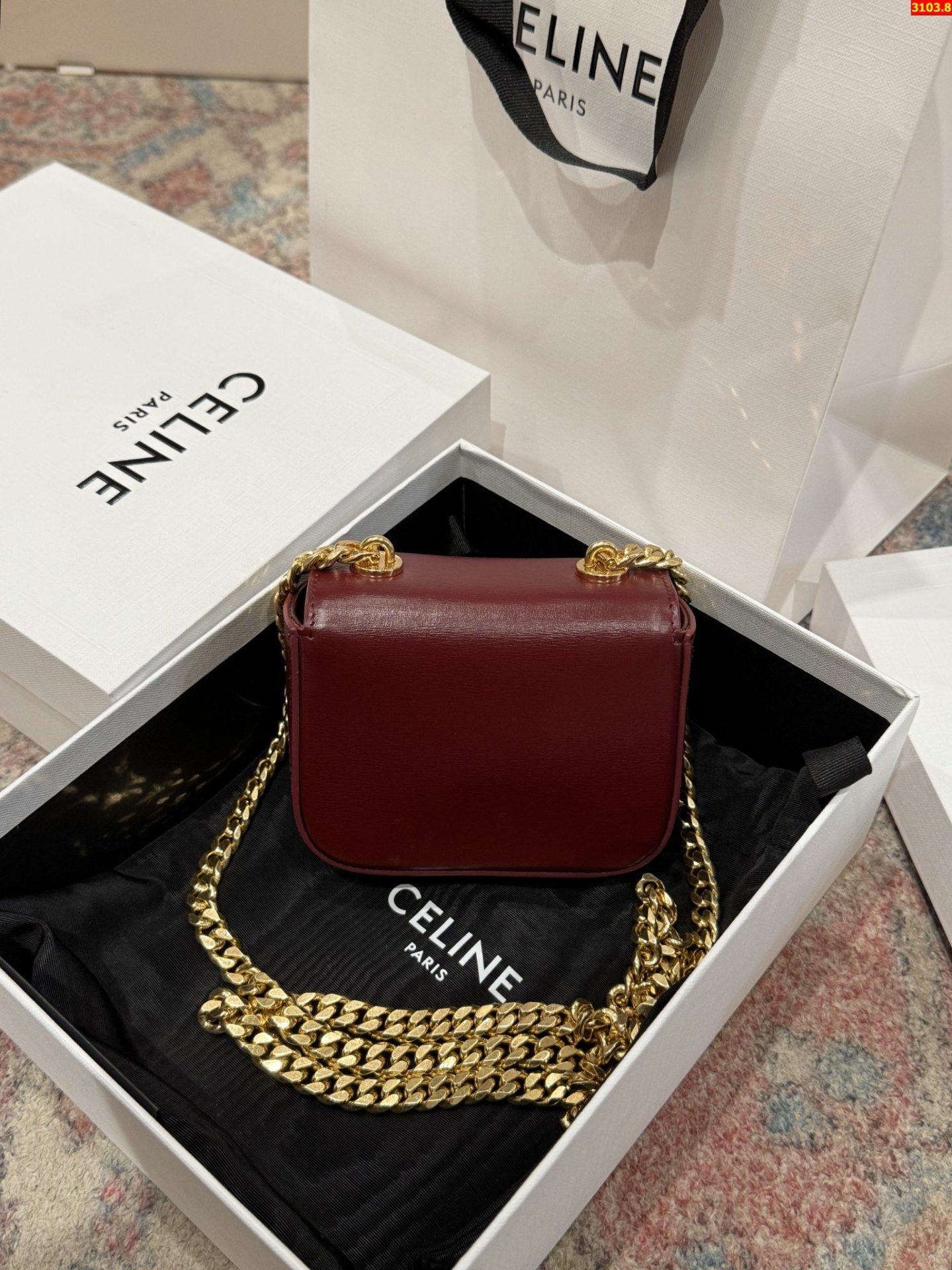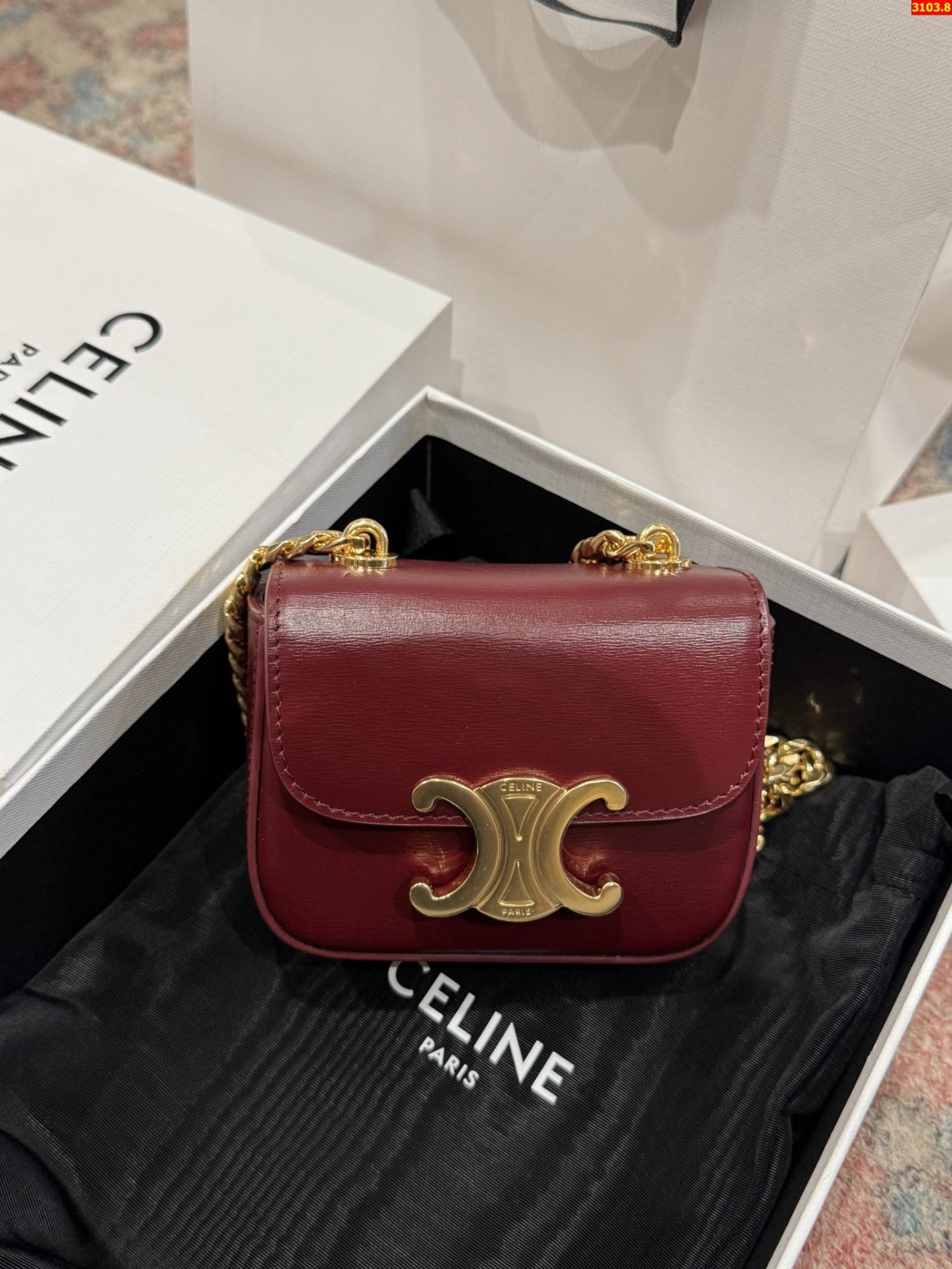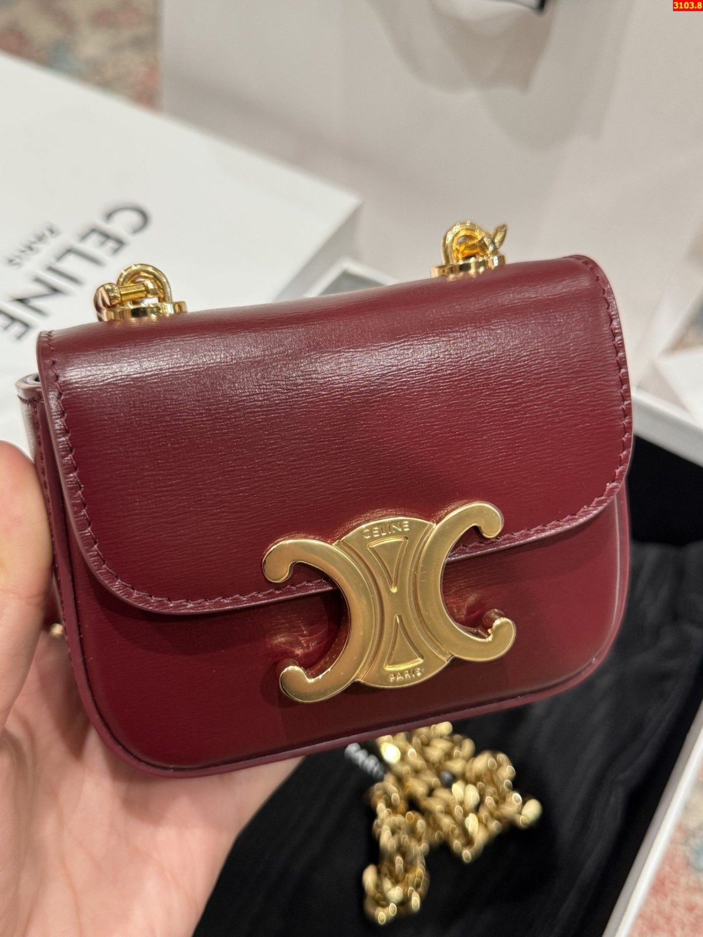 Túi Celine Mini Chain Claude Siêu Cấp Màu Đỏ Mận Khoá Vàng 11x8x4cm