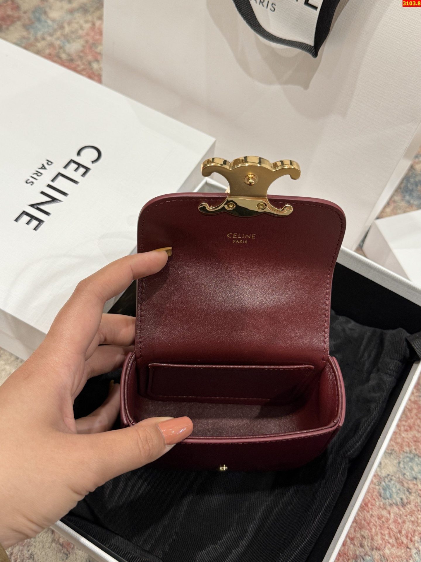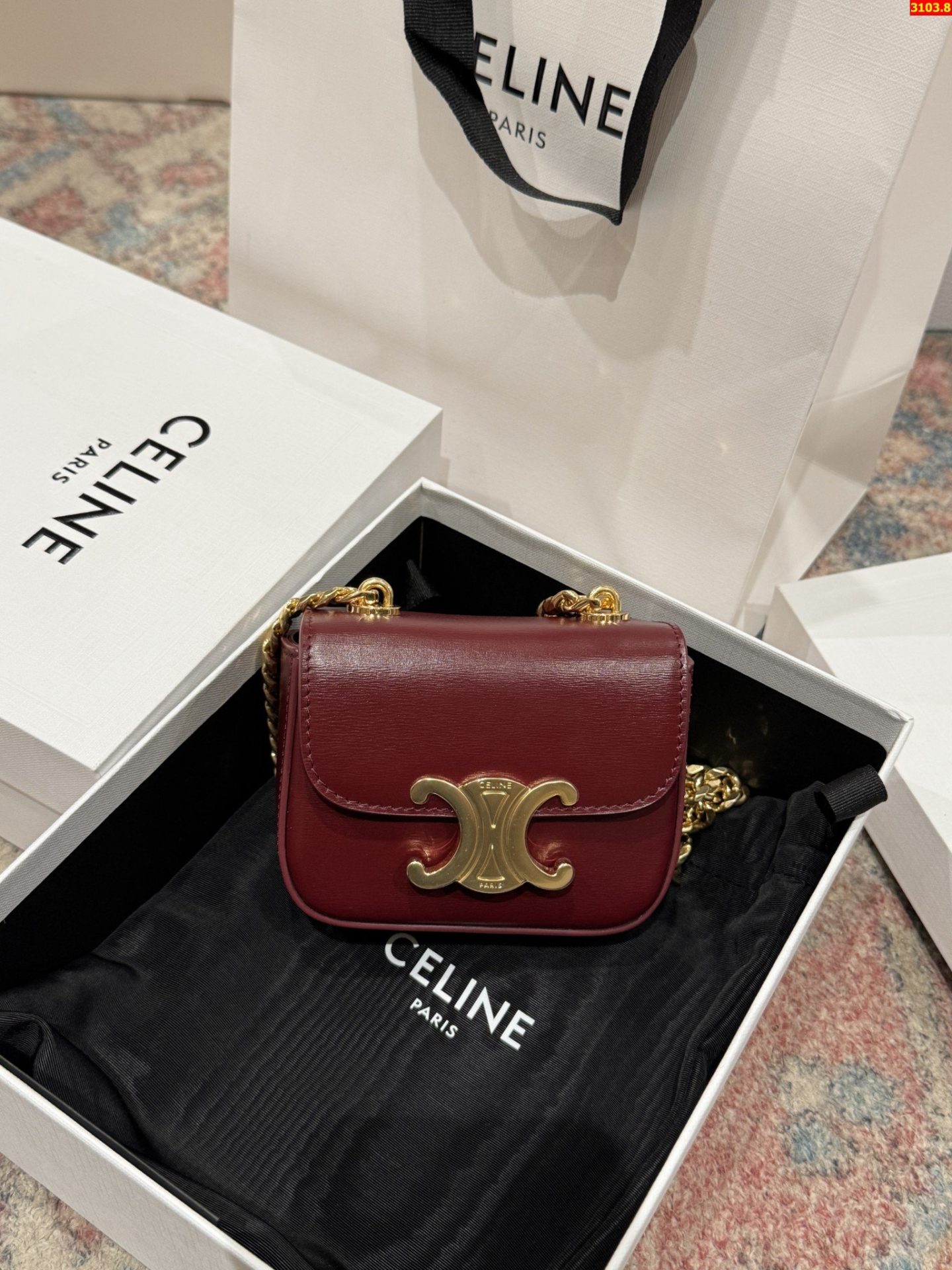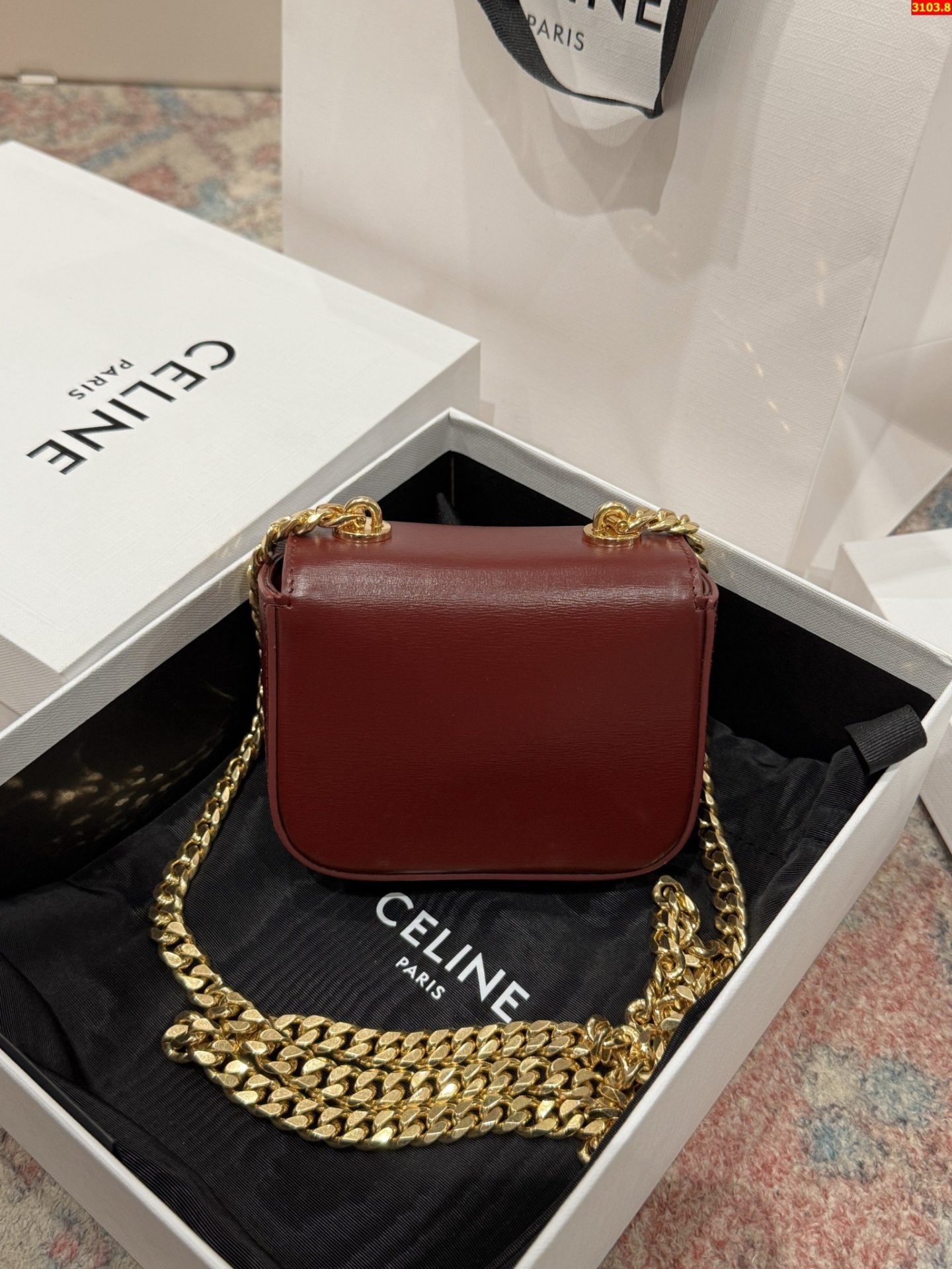 Túi Celine Mini Chain Claude Siêu Cấp Màu Đỏ Mận Khoá Vàng 11x8x4cm