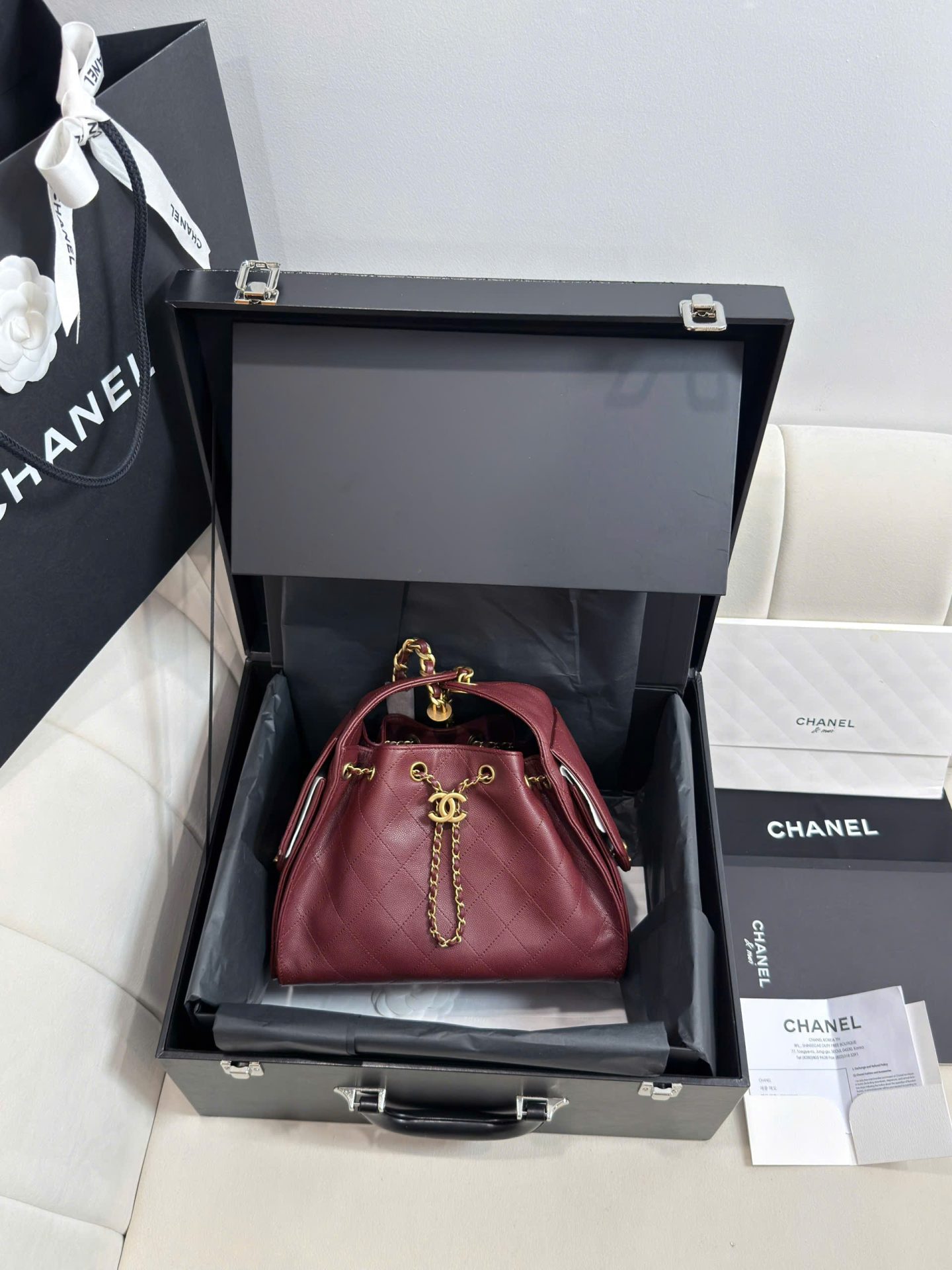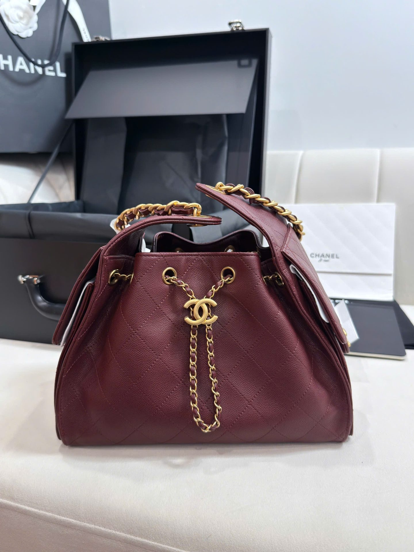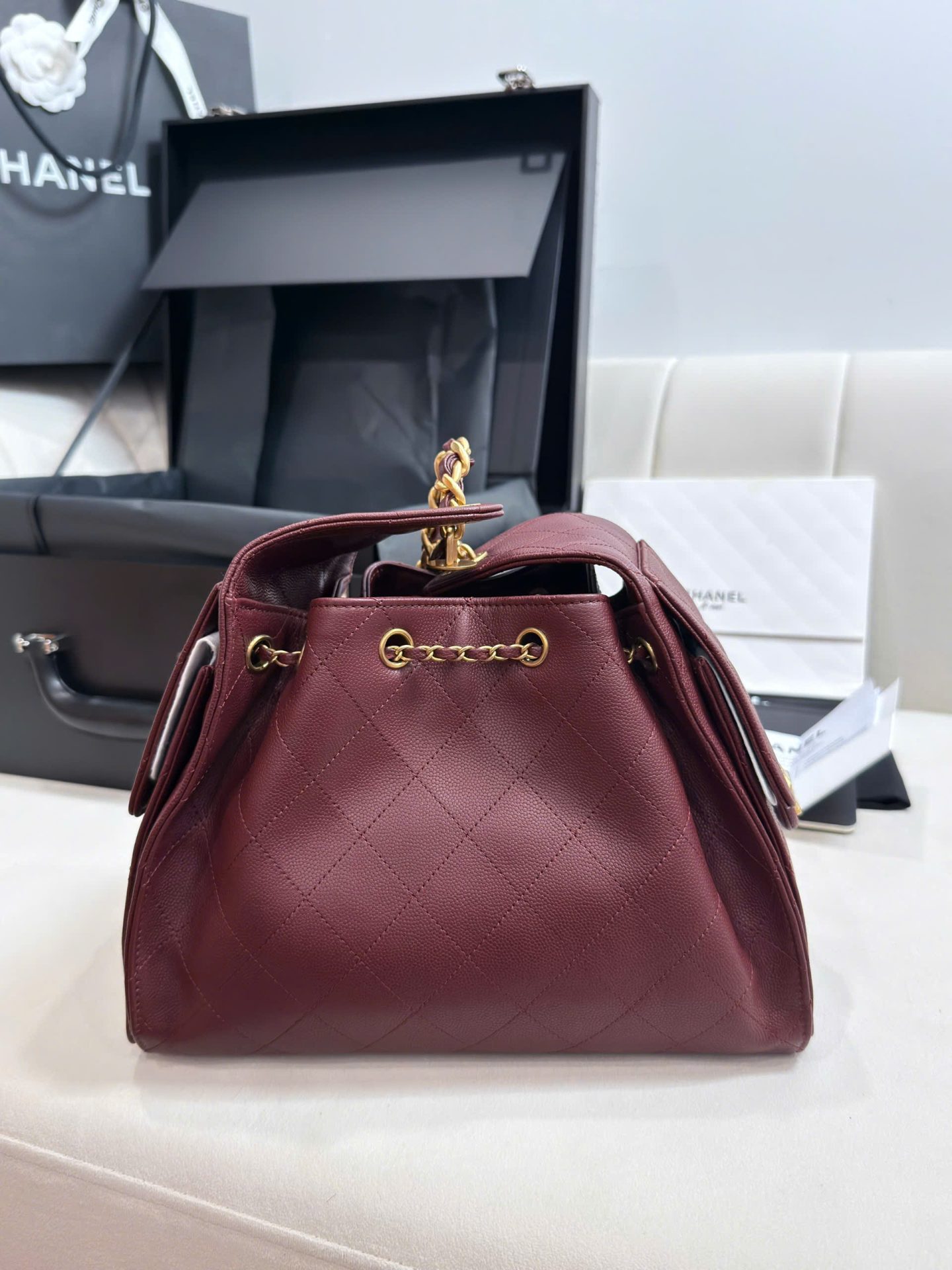 Túi Xách Chanel Jennie Like Auth Màu Đỏ Mận Dáng Hobo 26cm (2)